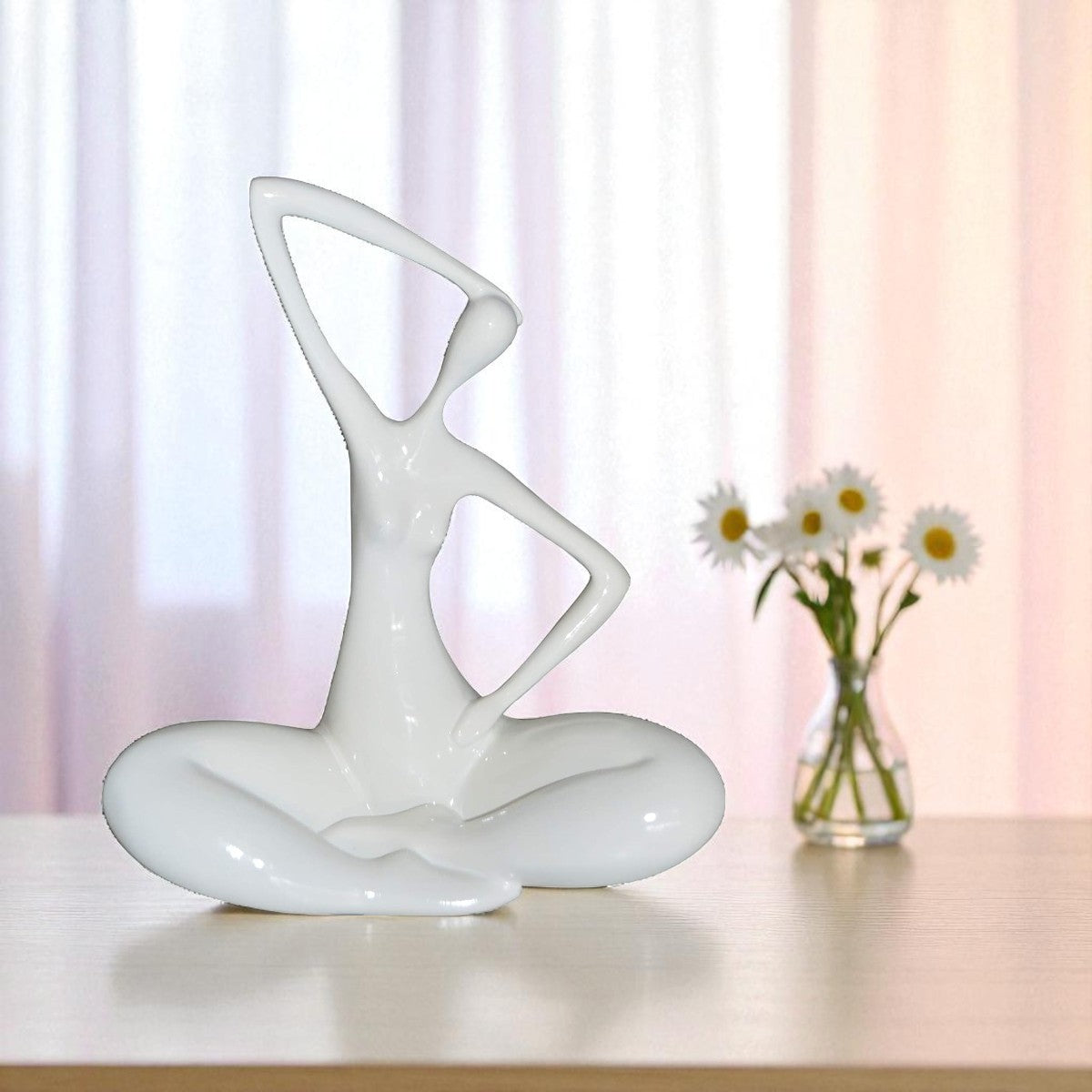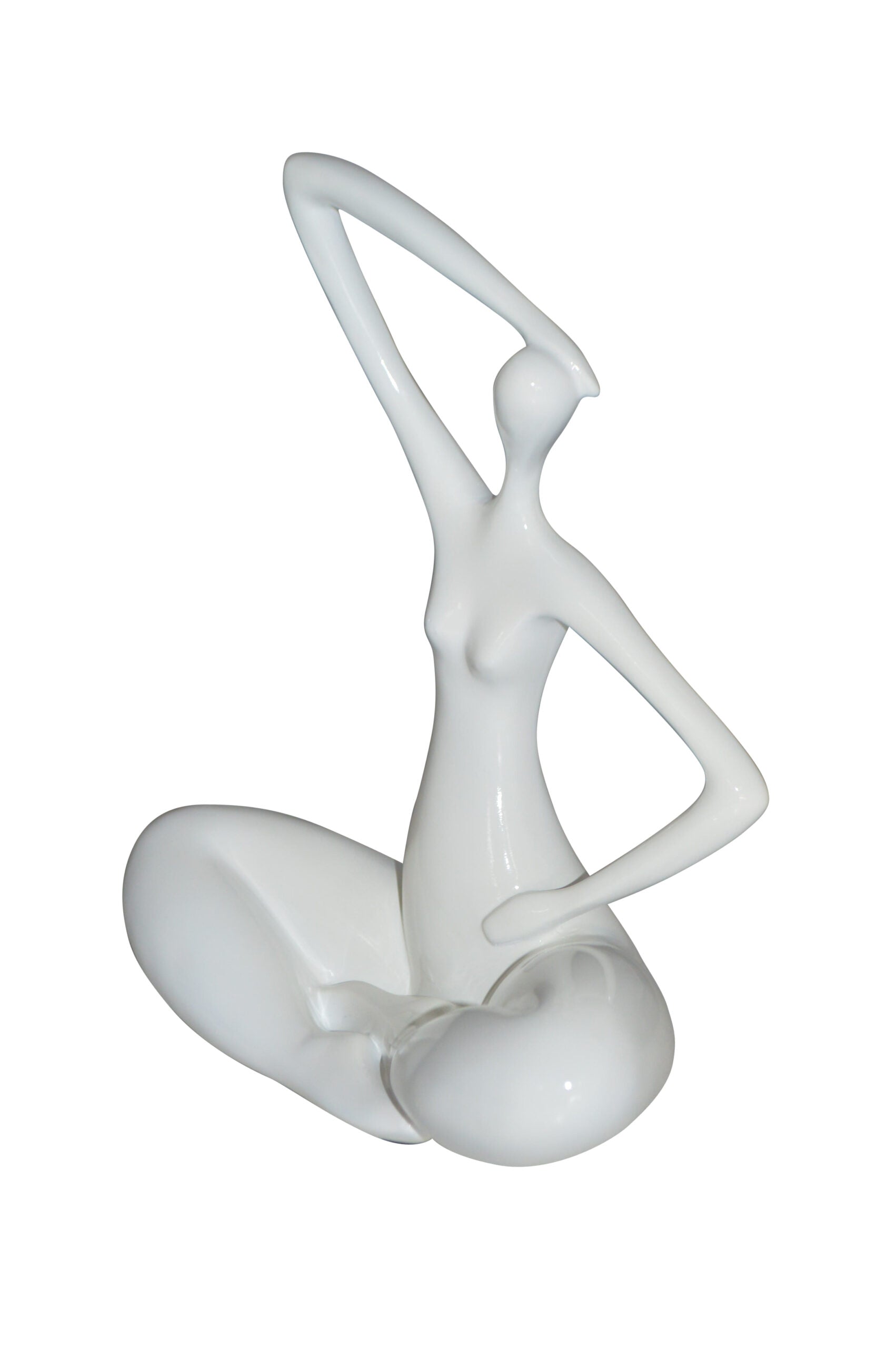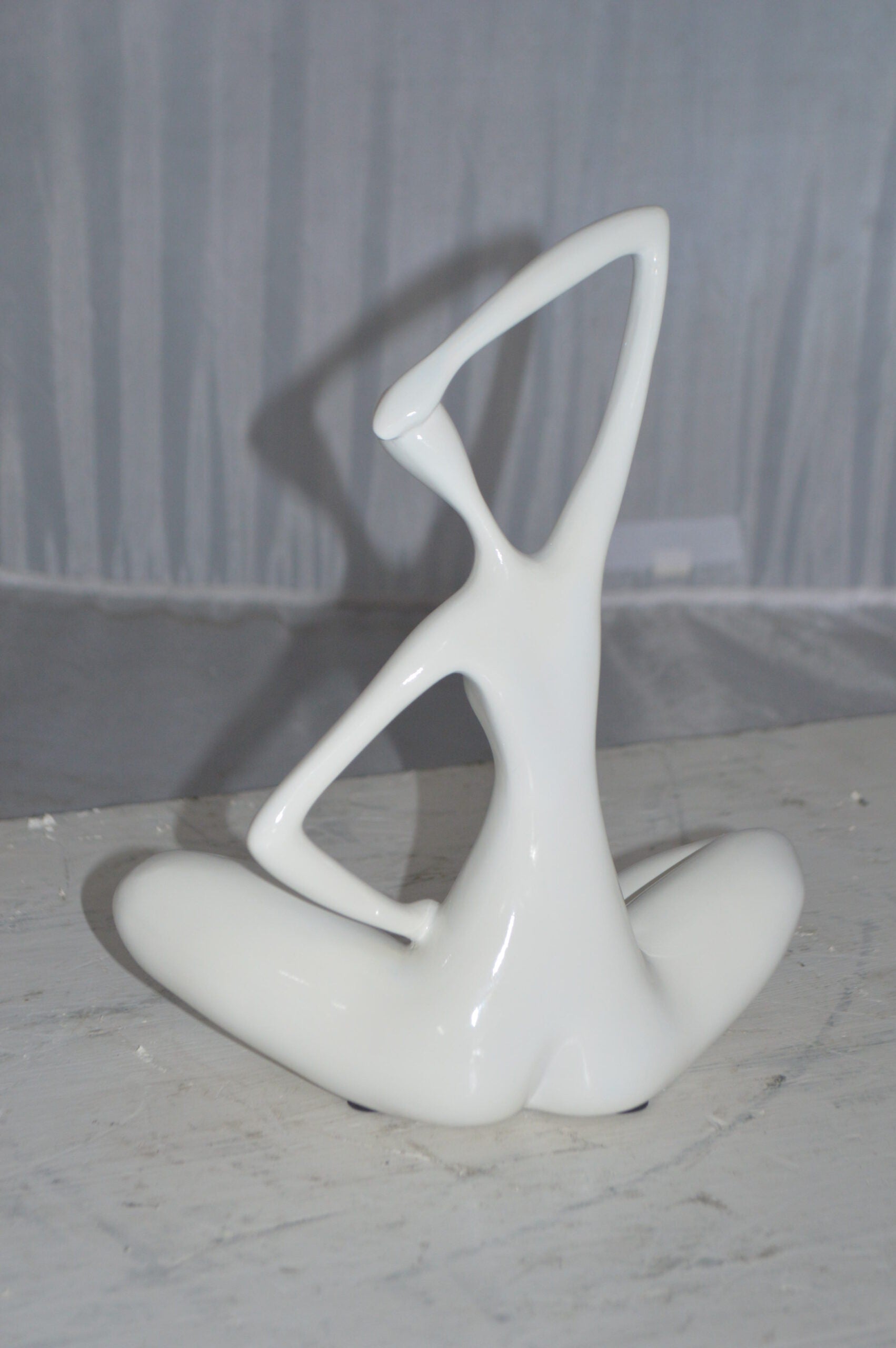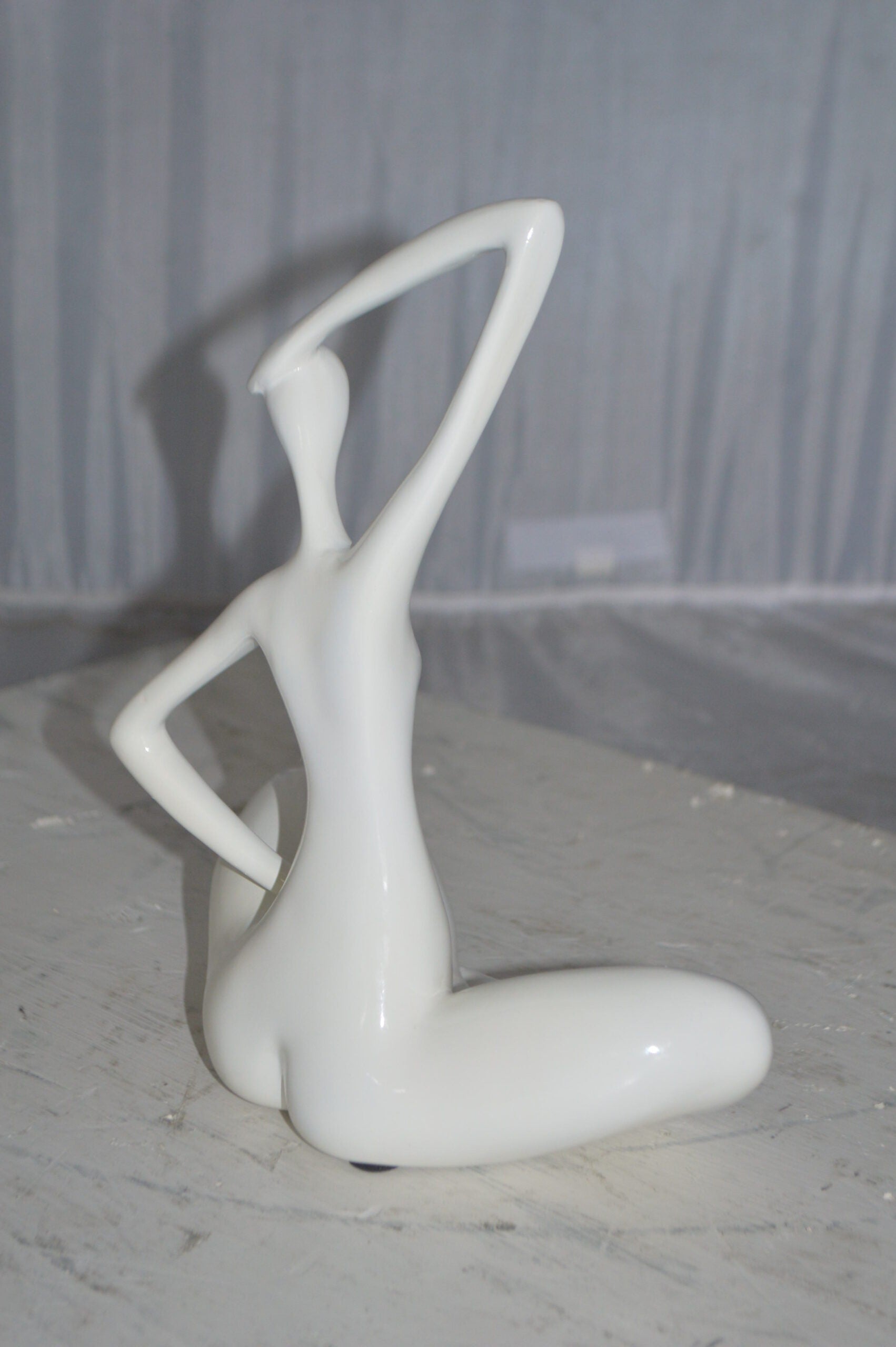Enjoy this happy looking modern art, resin statue of a White Ballet Dancer Sitting. This modern abstract would be a great addition to your home. Resin casting is a method of plastic casting where a mold is filled with a liquid synthetic resin, which then hardens. Size: 9"L x 5"W x 11"H. Weight is: 3Lb