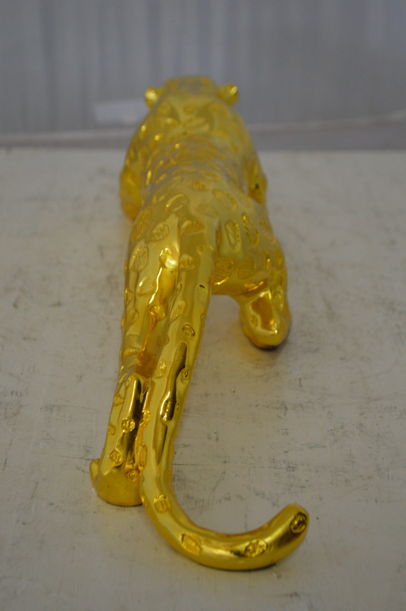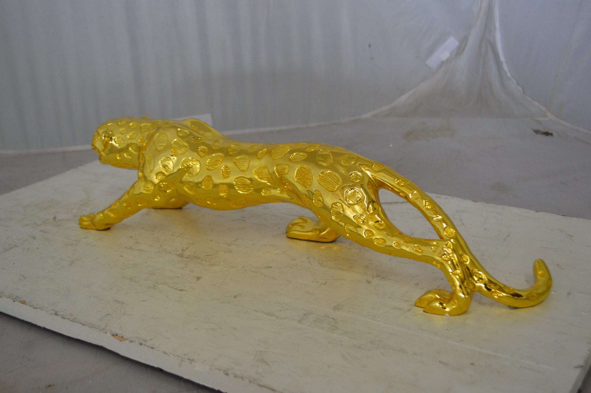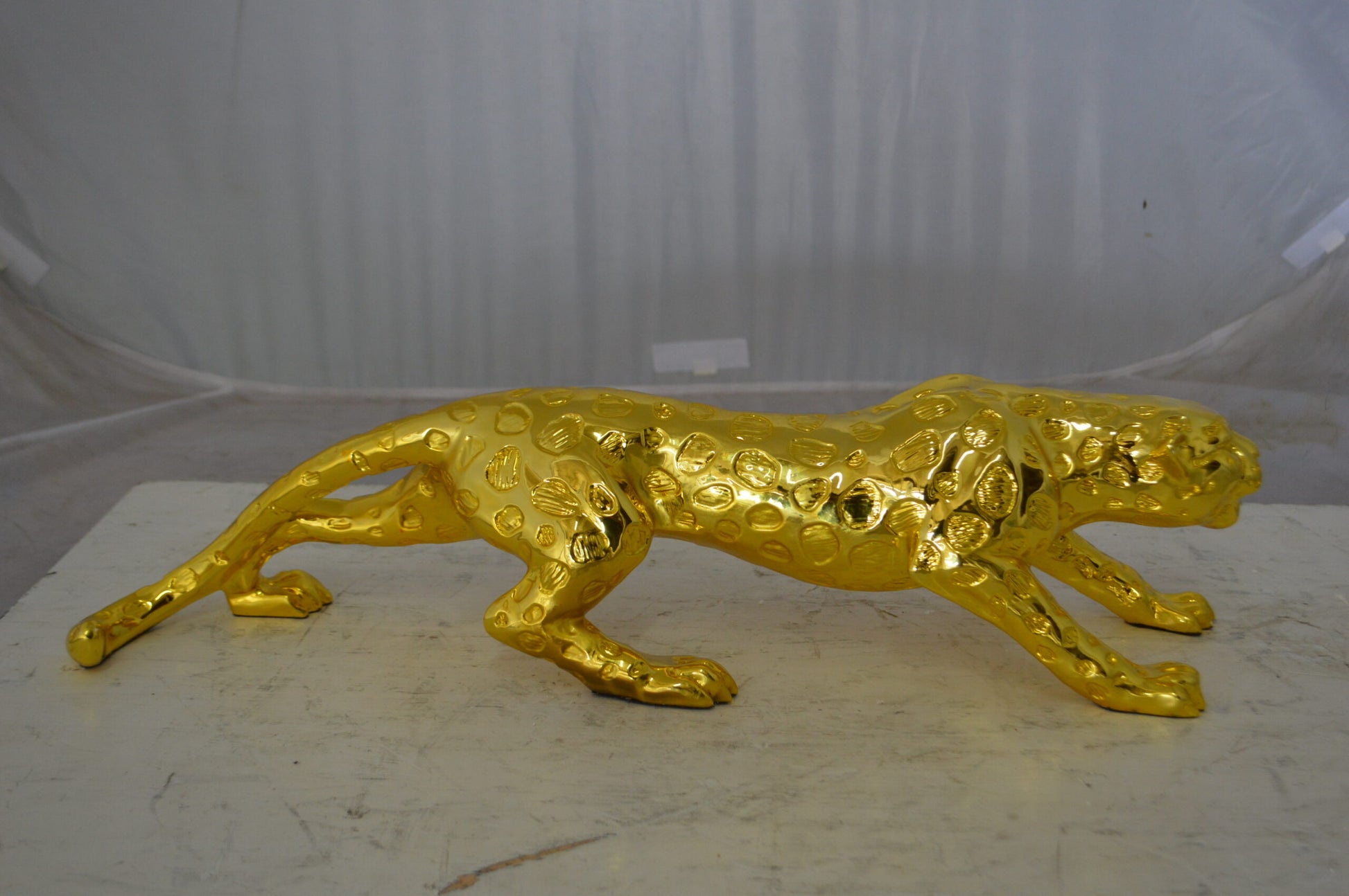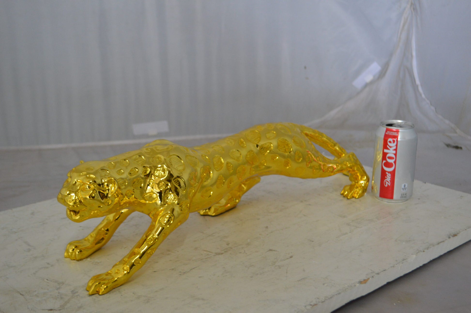 Modern Art Gold Jaguar Statue Made of Resin - Size: 23"L x 6"W x 7"H.
