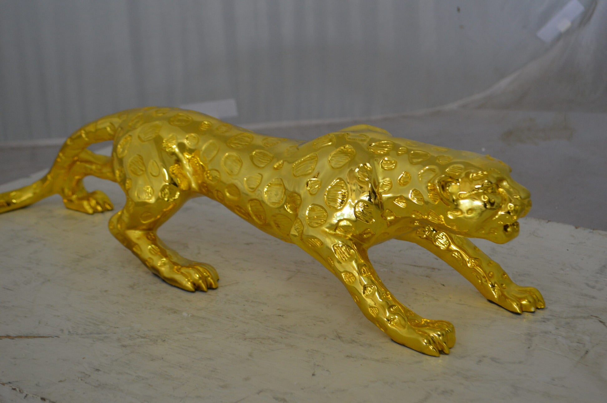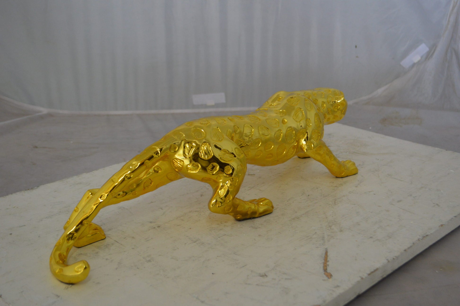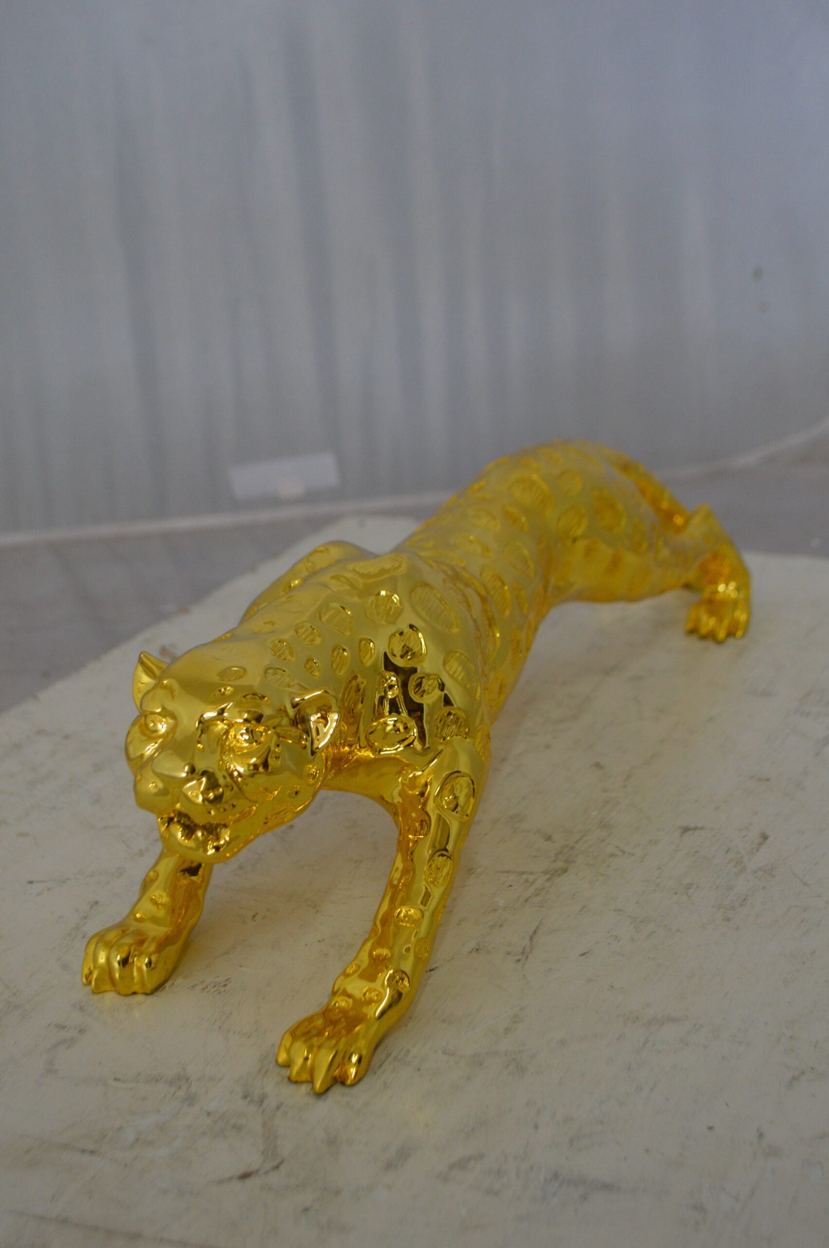 Modern Art Gold Jaguar Statue Made of Resin - Size: 23"L x 6"W x 7"H.