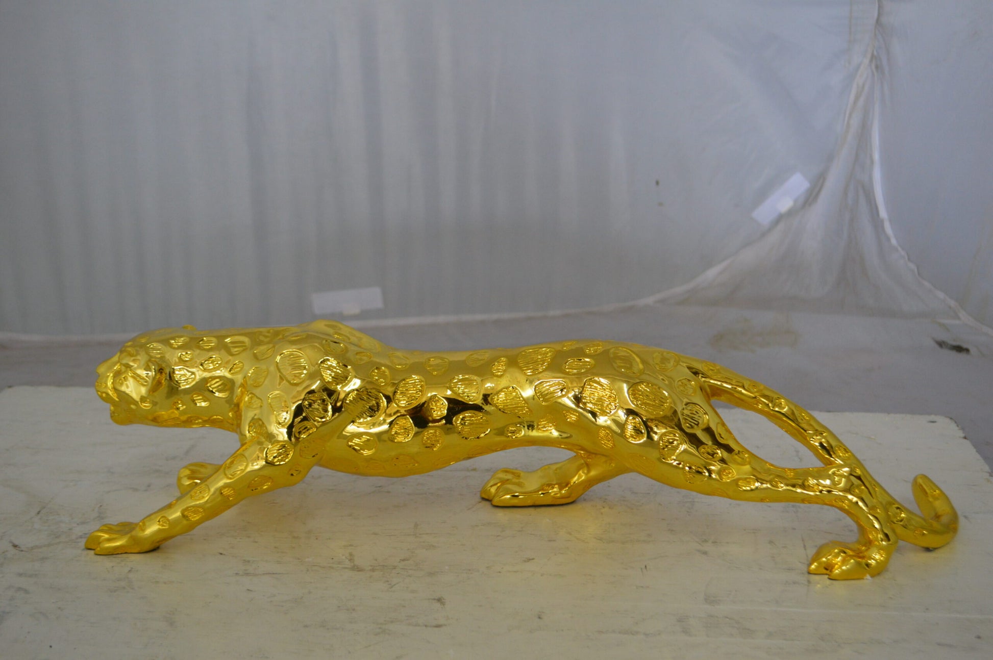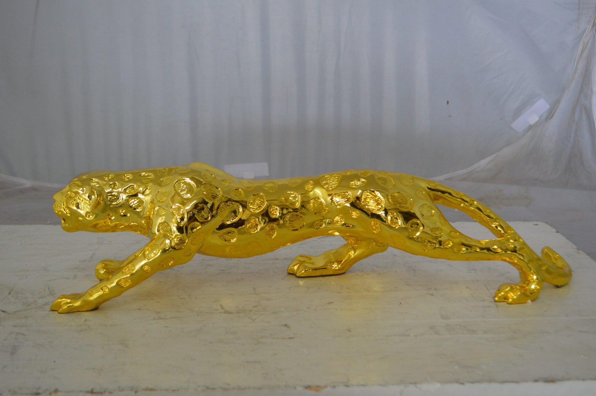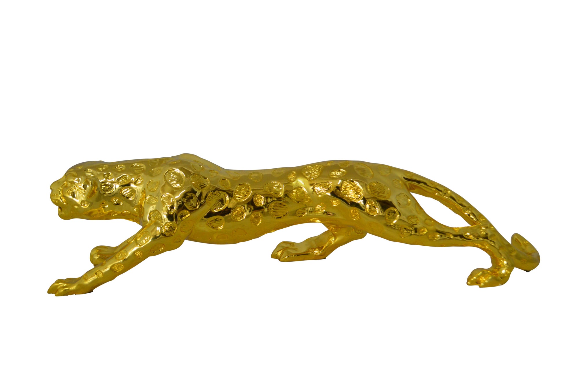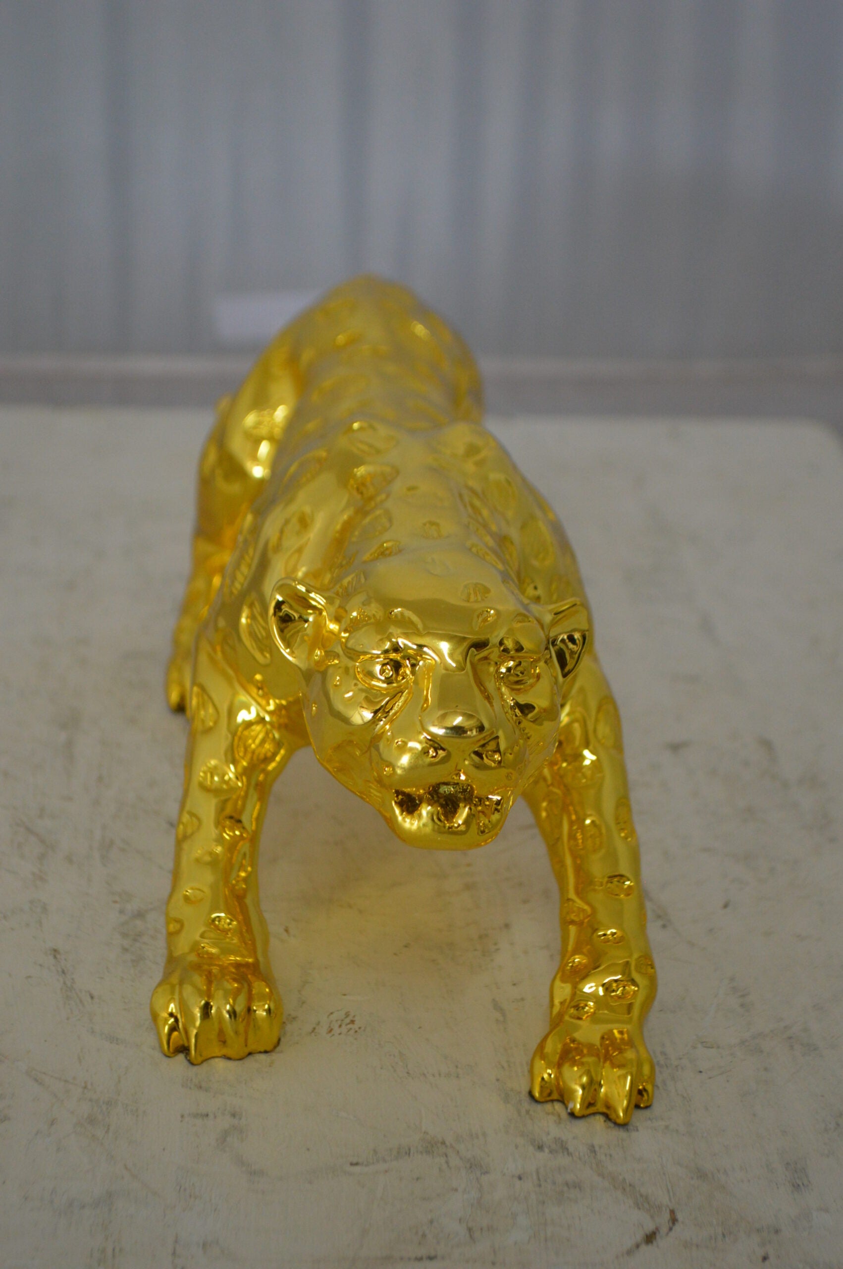 Modern Art Gold Jaguar Statue Made of Resin - Size: 23"L x 6"W x 7"H.