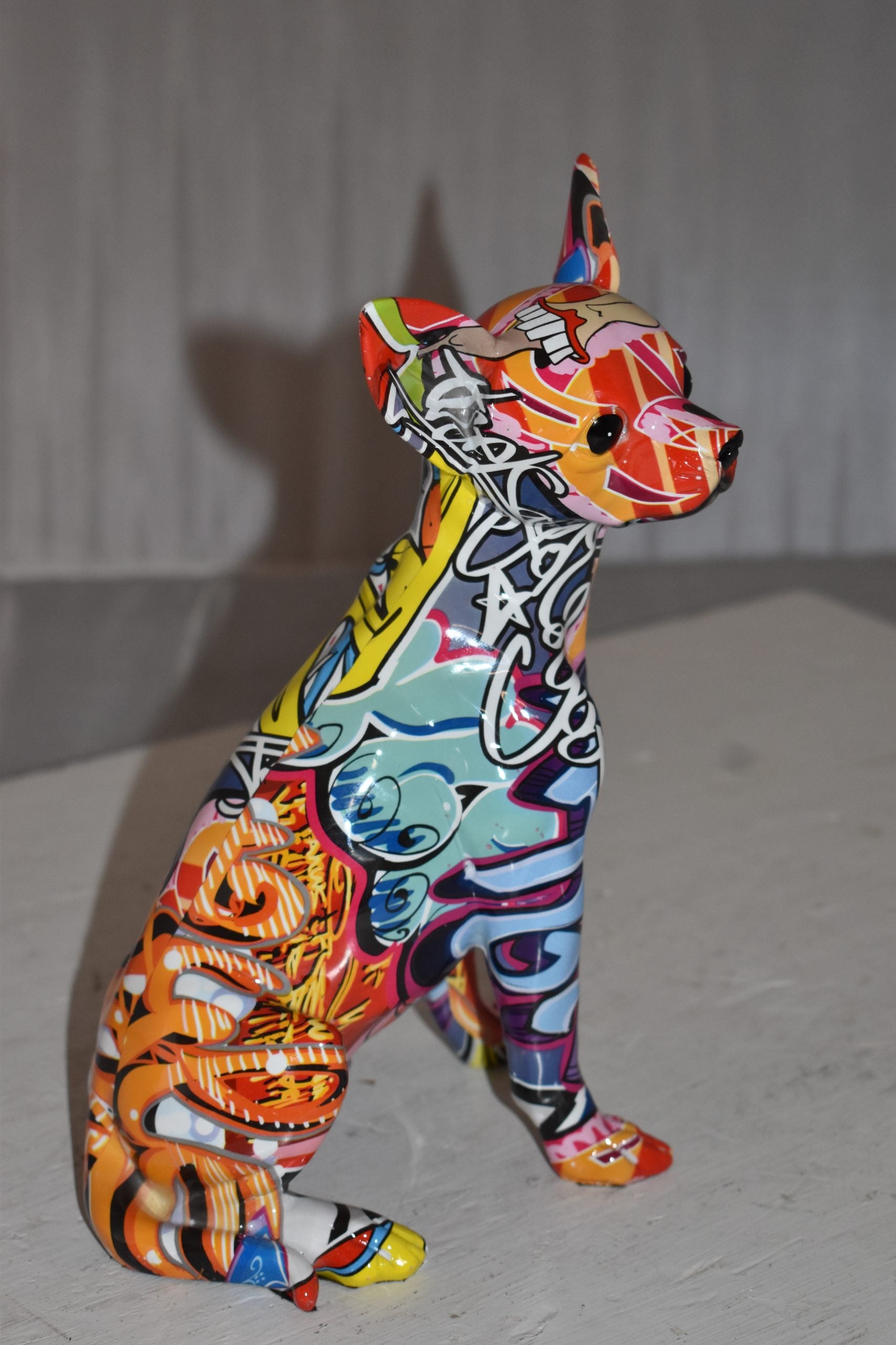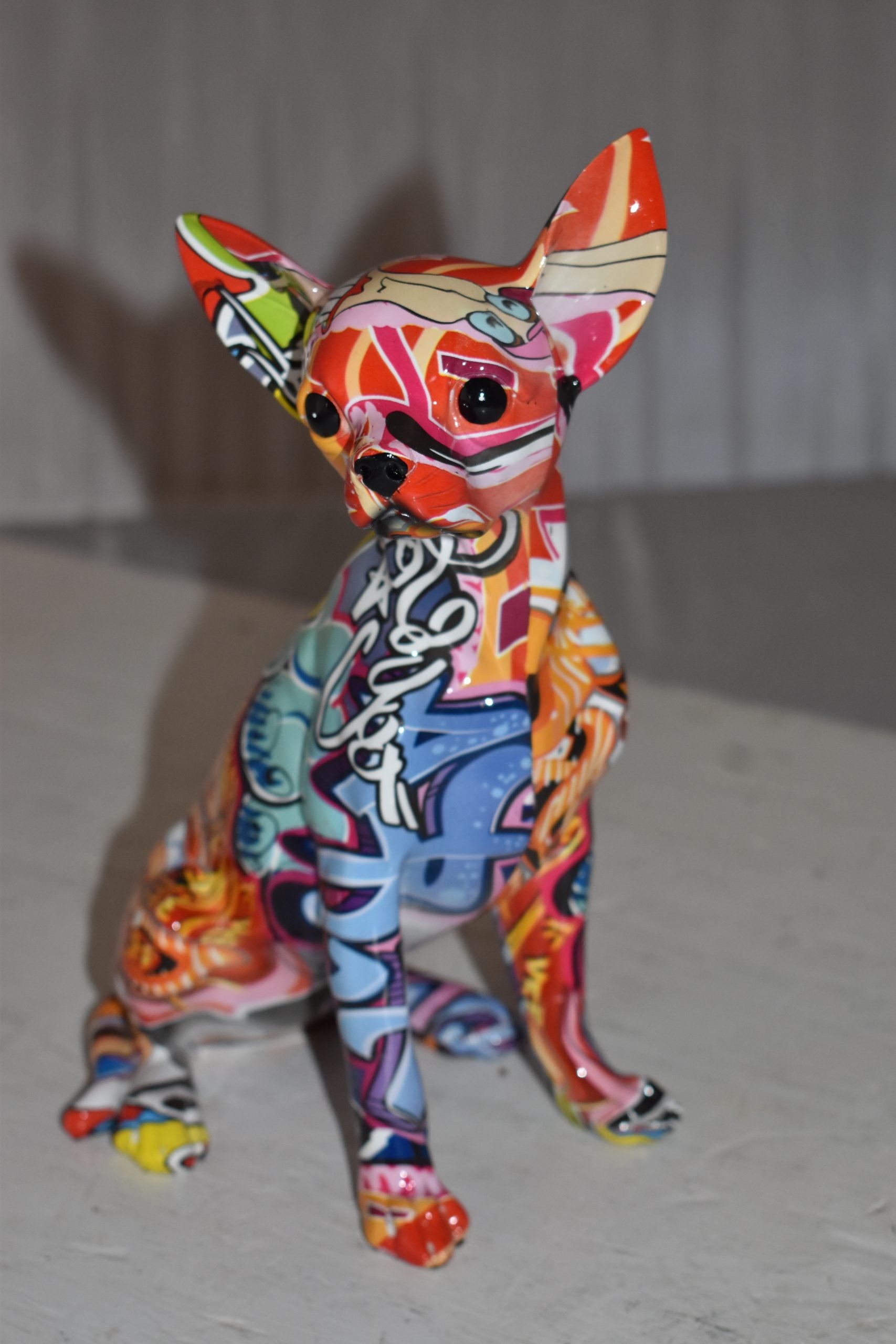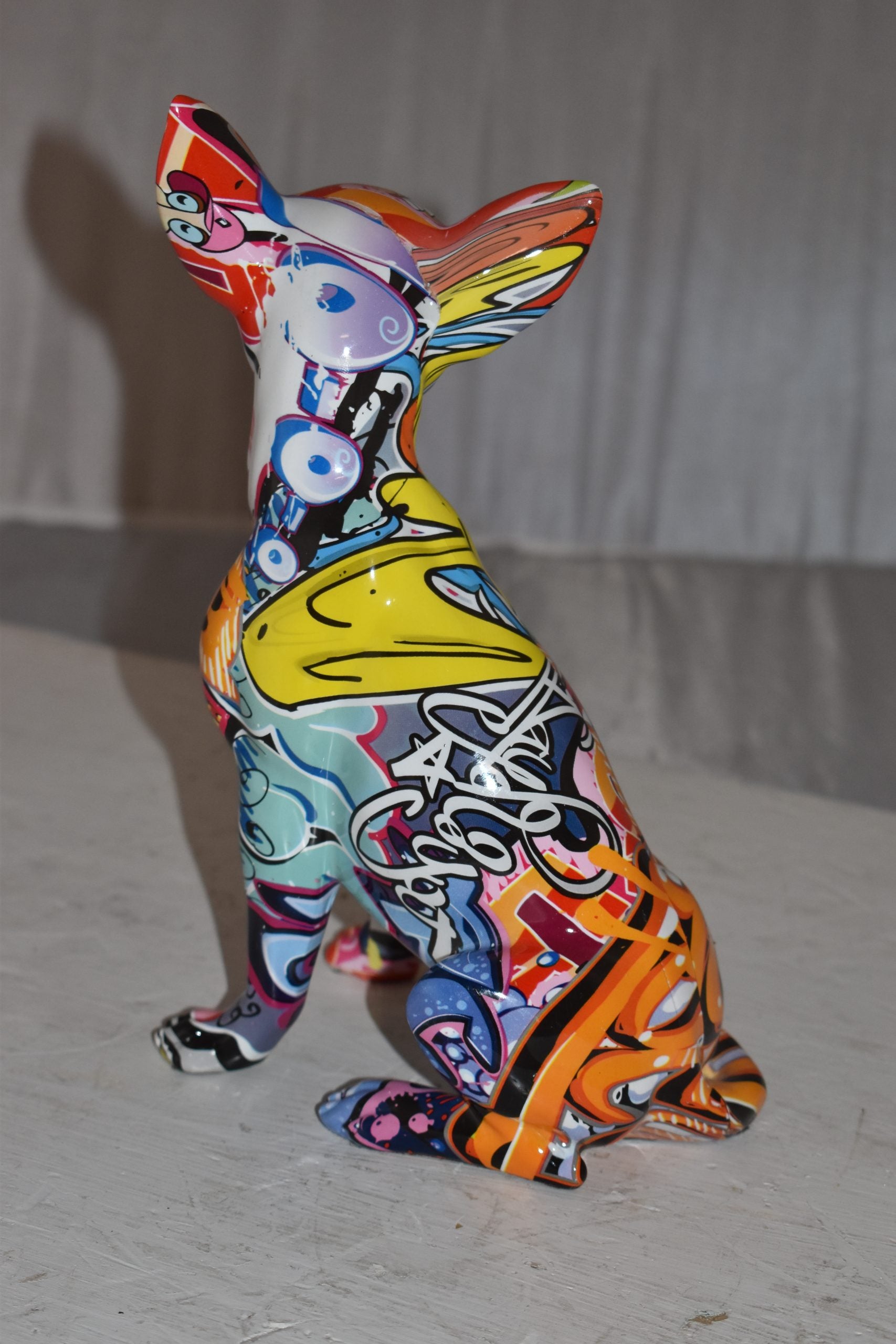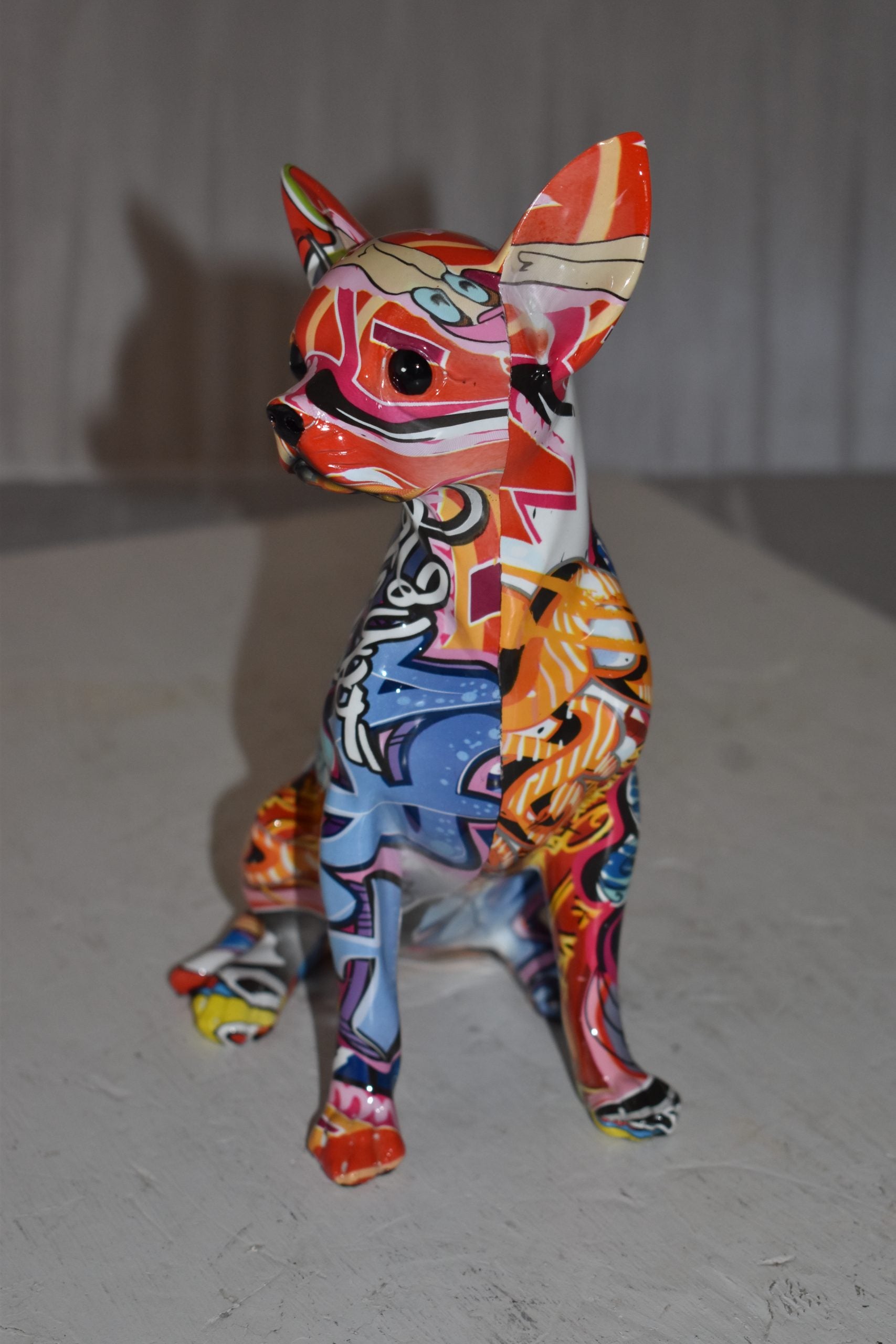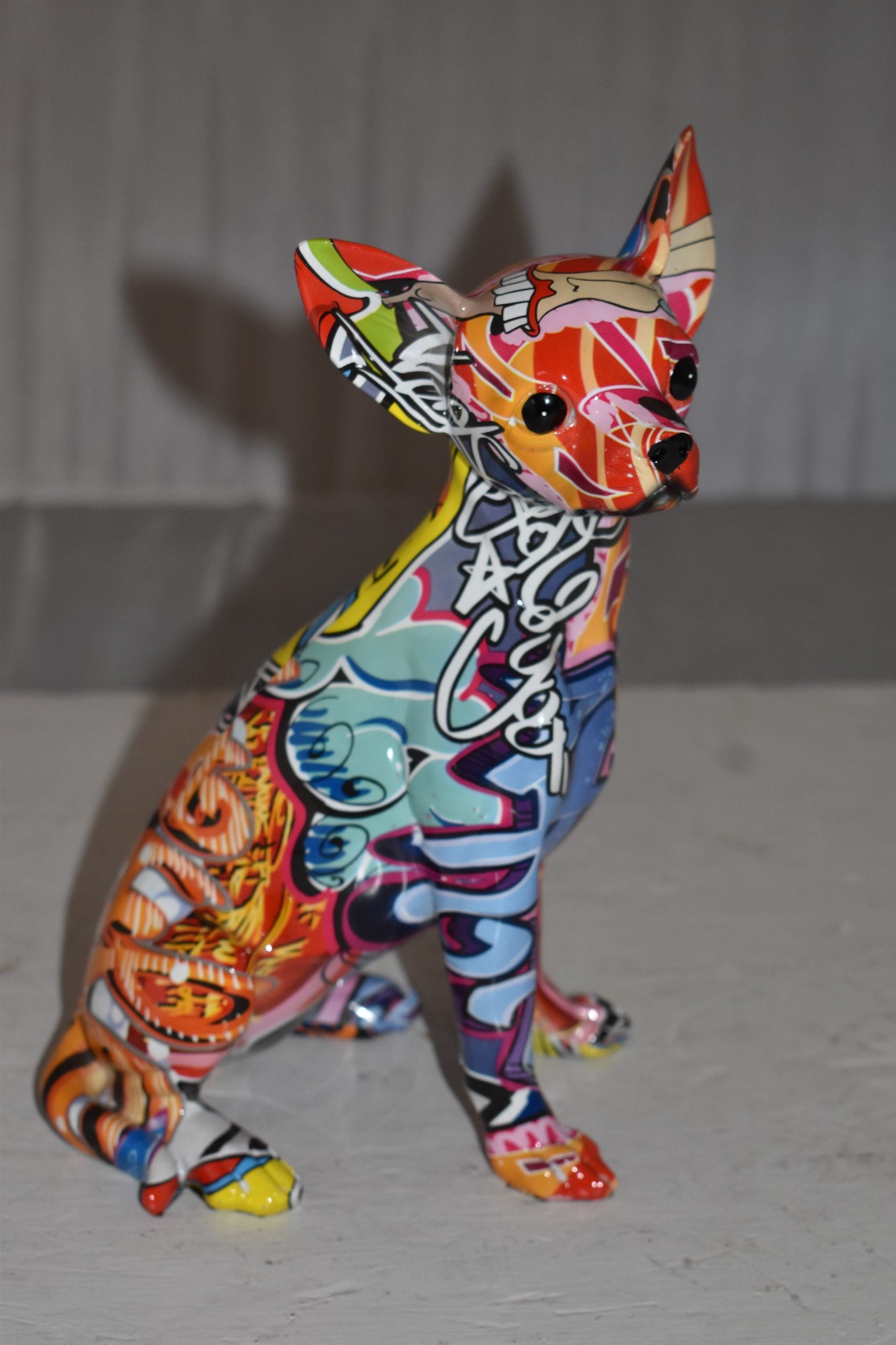 Modern Art Graffiti Sitting Chihuahua Statue Made of Resin Size: 8" x 5" x 10"H