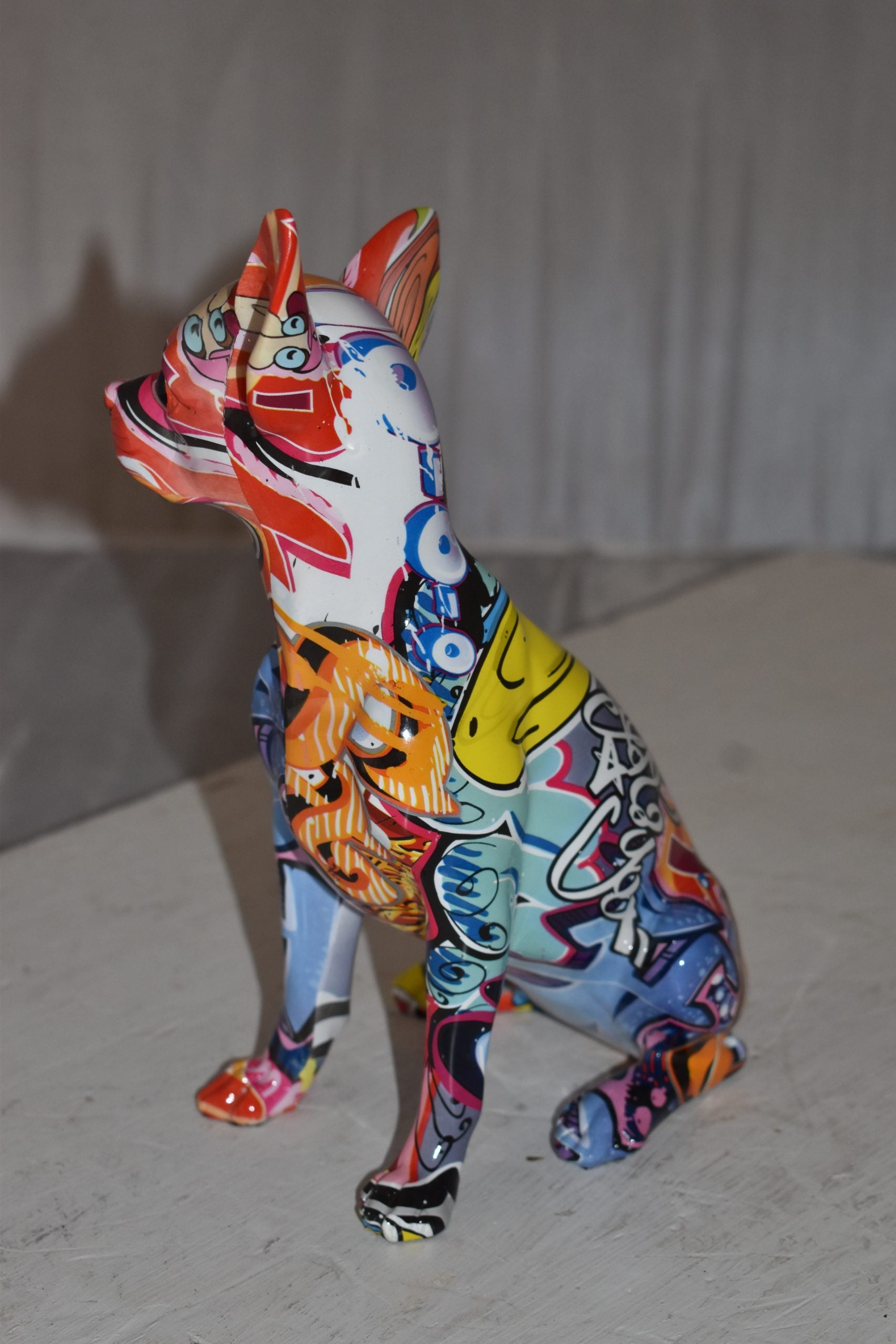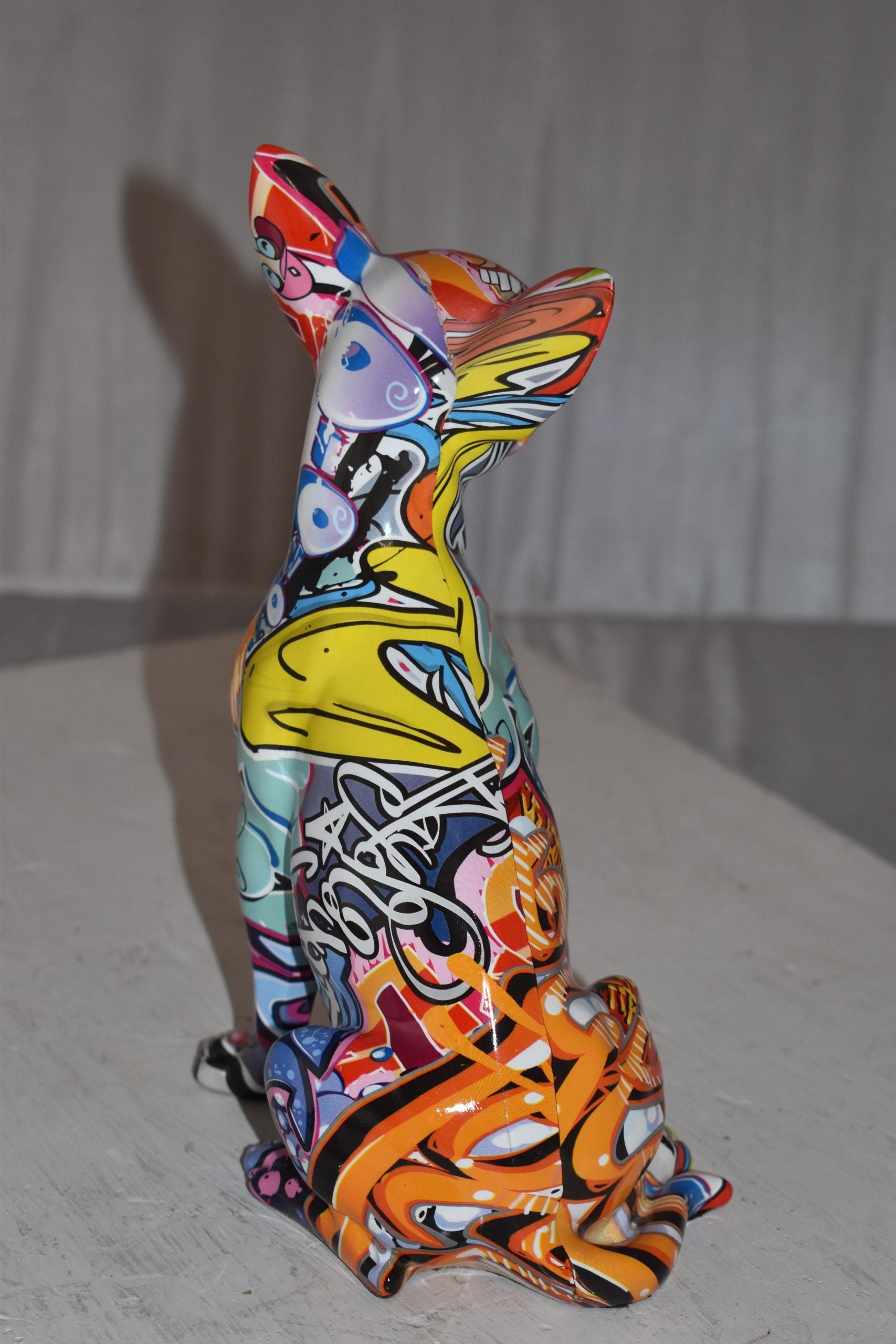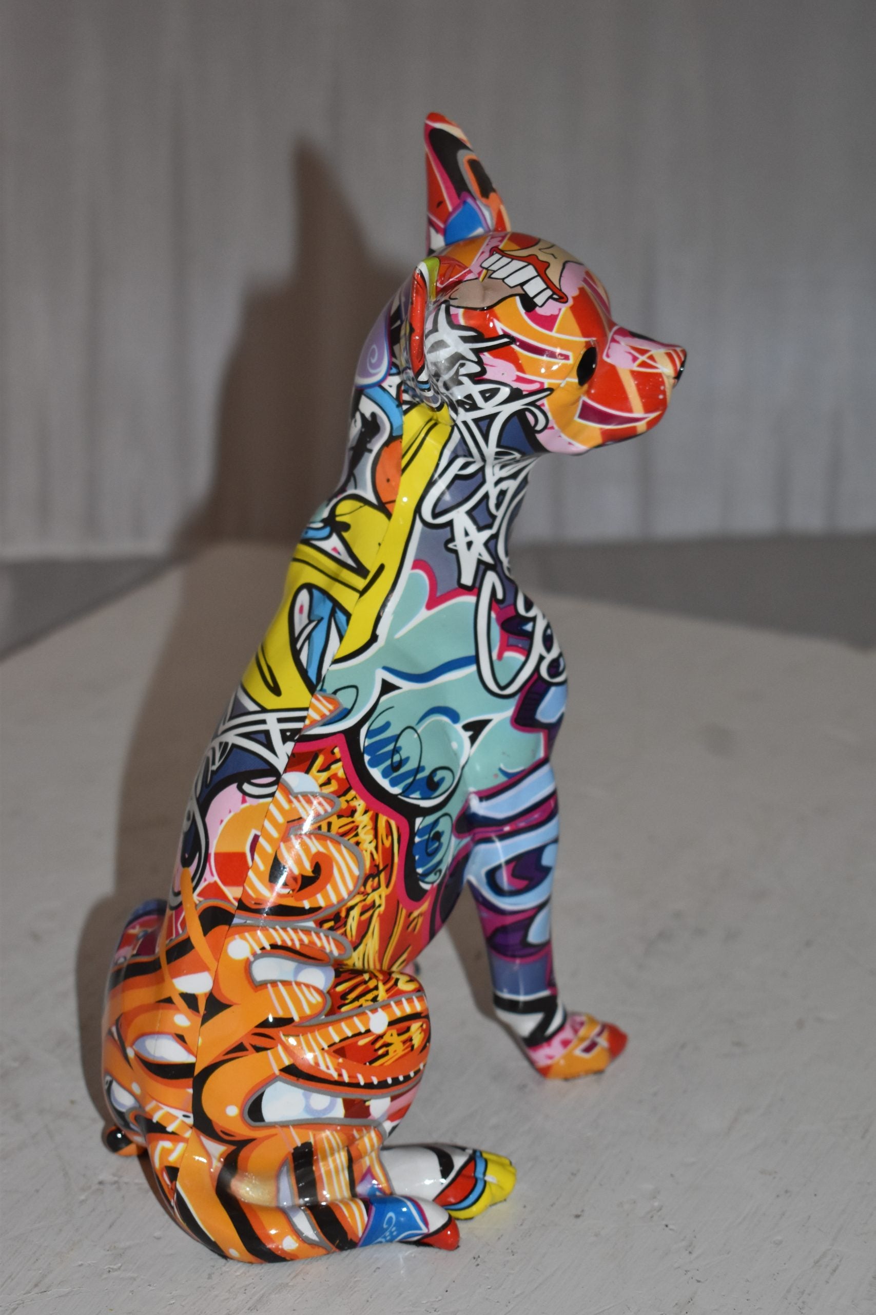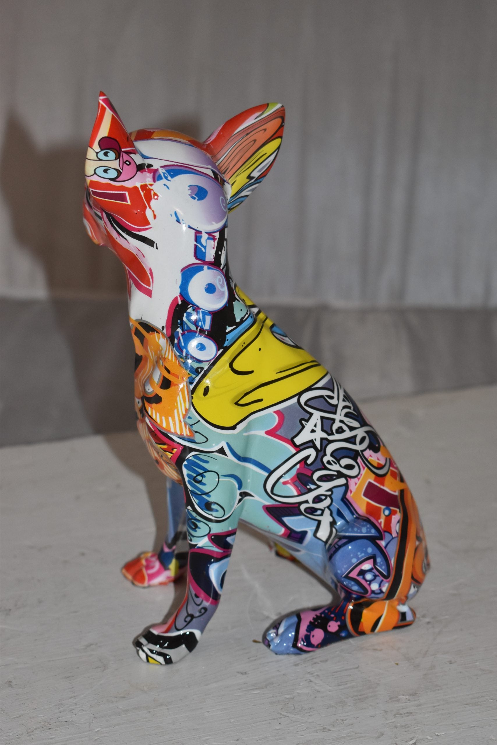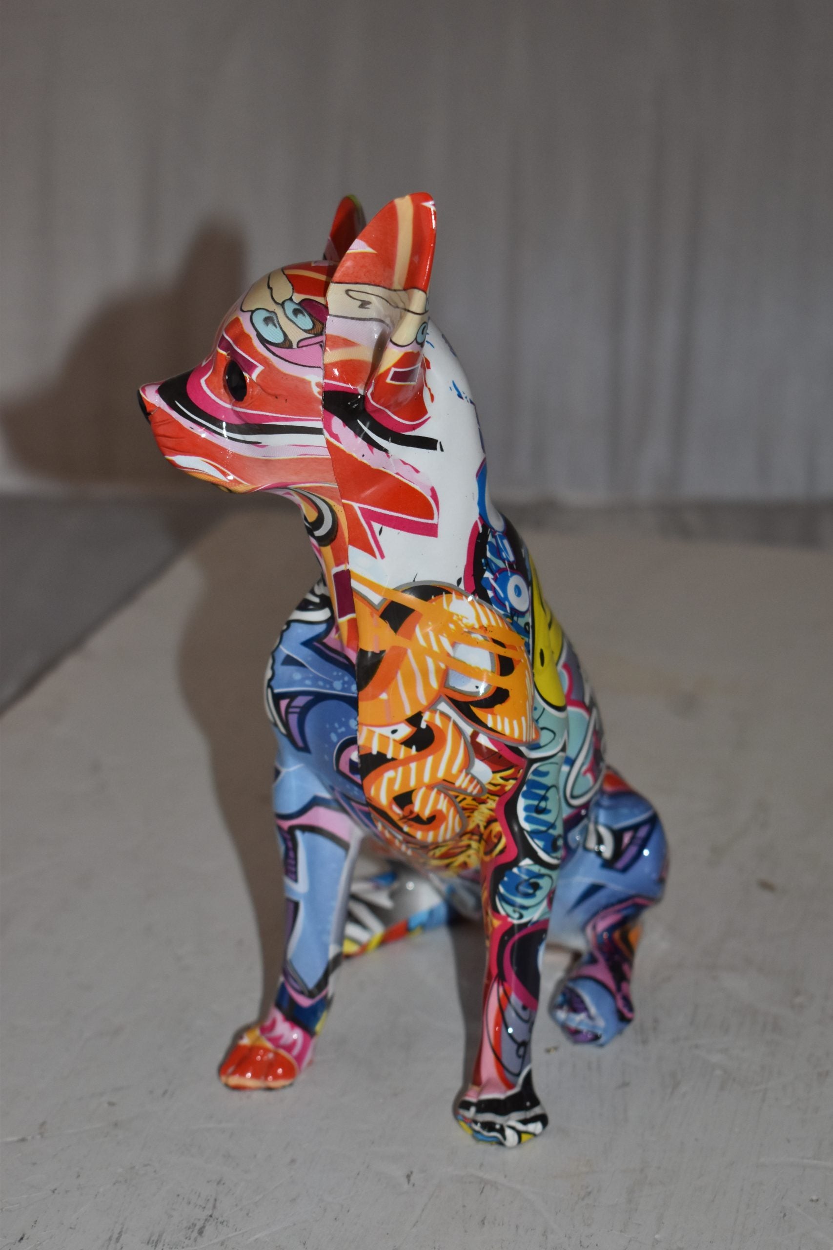 Modern Art Graffiti Sitting Chihuahua Statue Made of Resin Size: 8" x 5" x 10"H