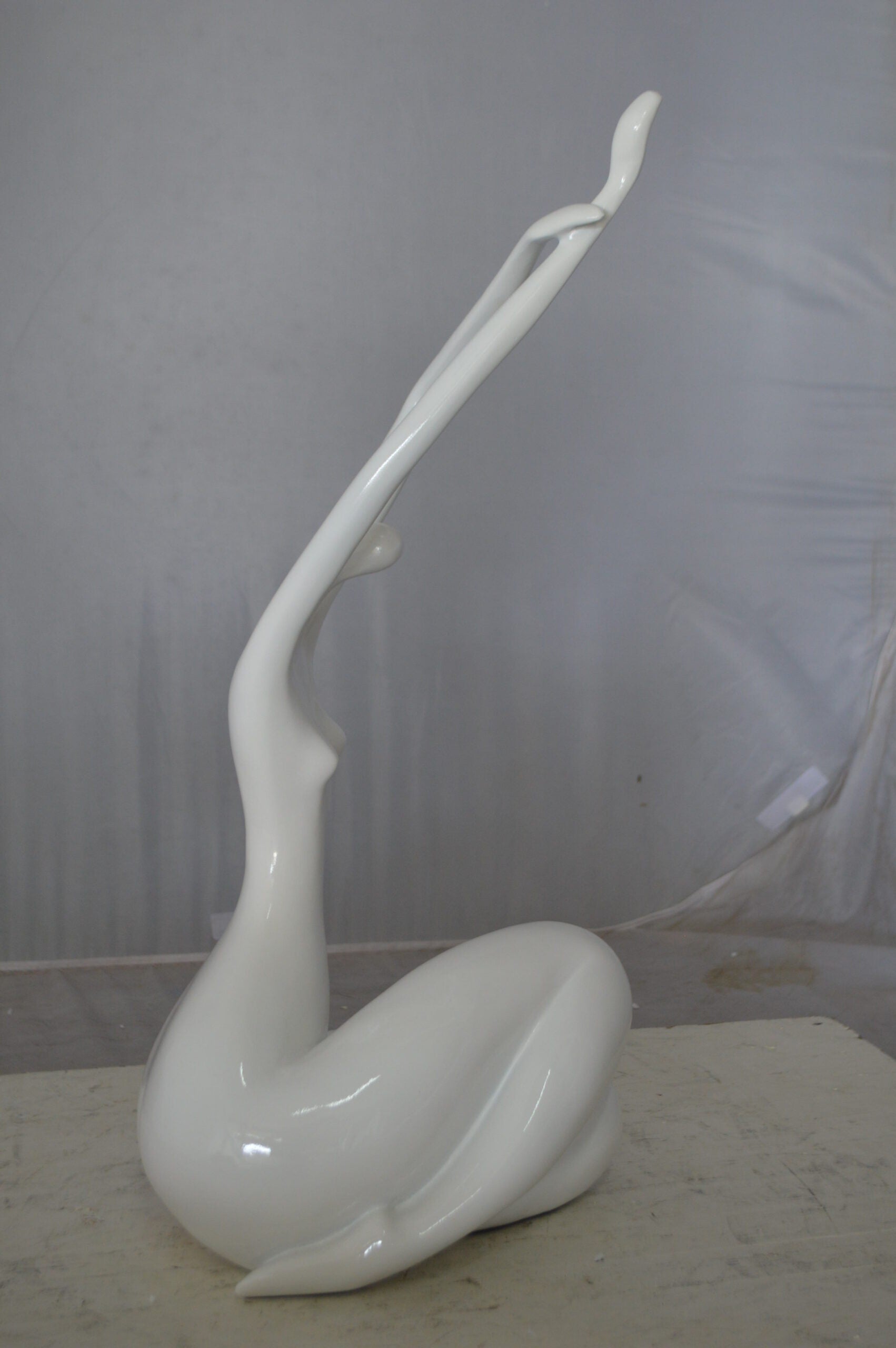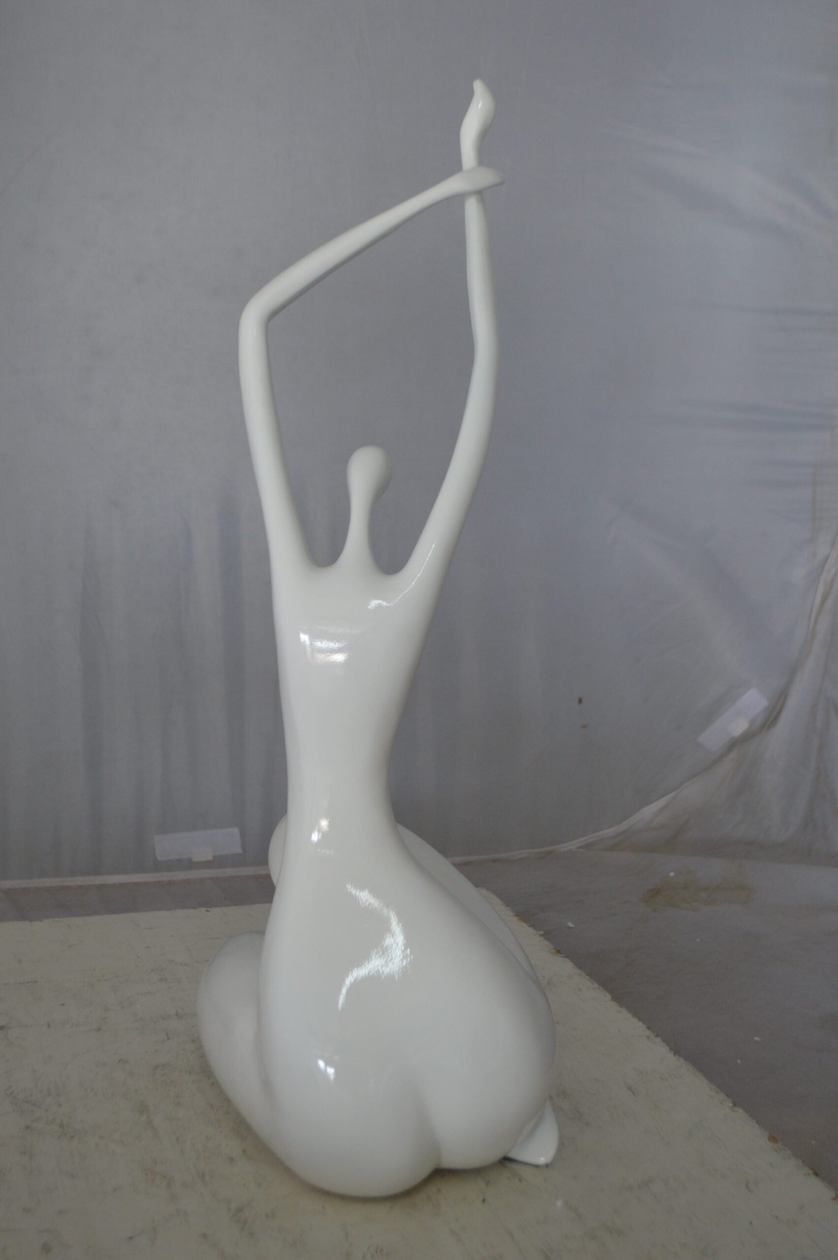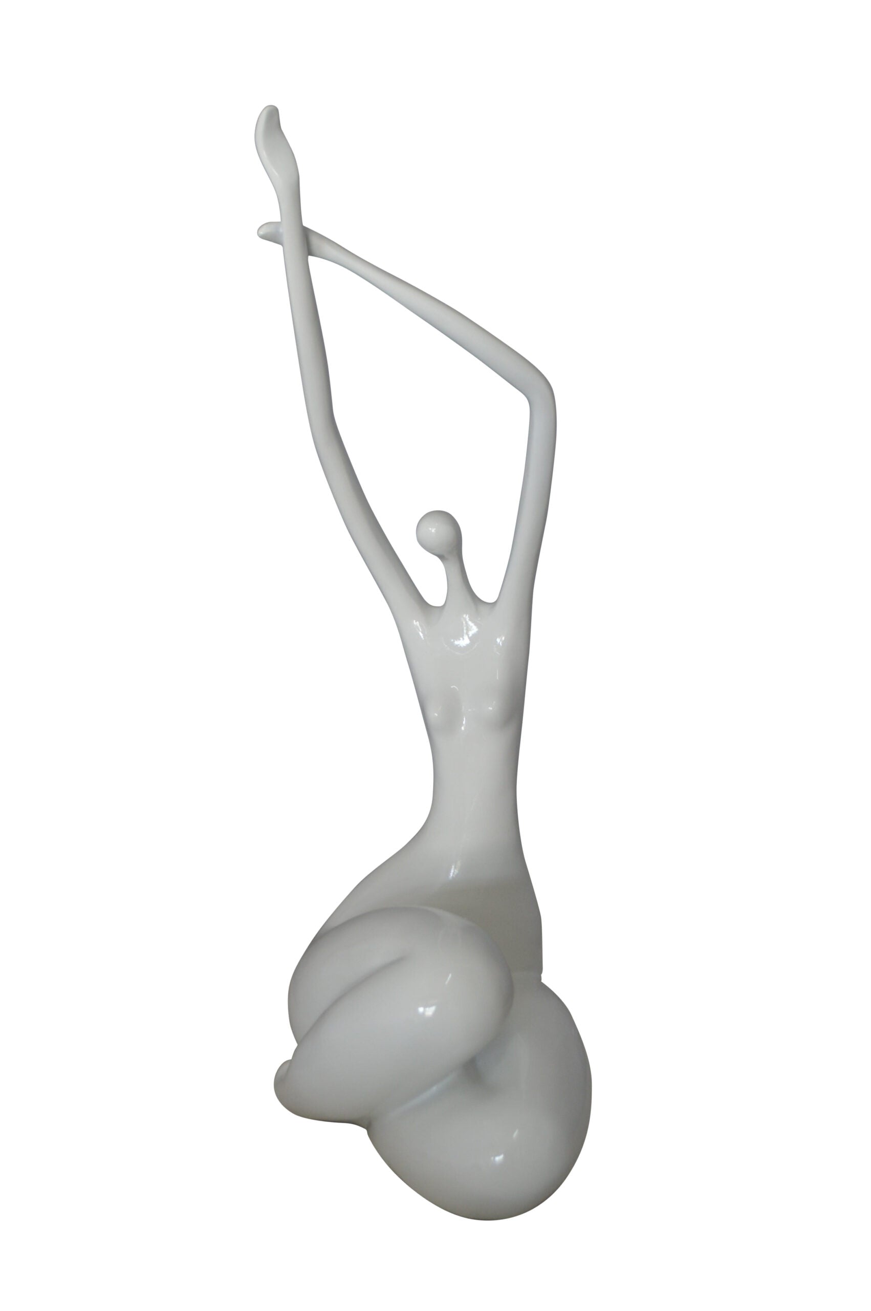 Enjoy this happy looking modern art, resin statue of a White dancer in action. This modern abstract would be a great addition to your home. Resin casting is a method of plastic casting where a mold is filled with a liquid synthetic resin, which then hardens. Size: 12"L x 8"W x 25"H. Weight is: 6Lb