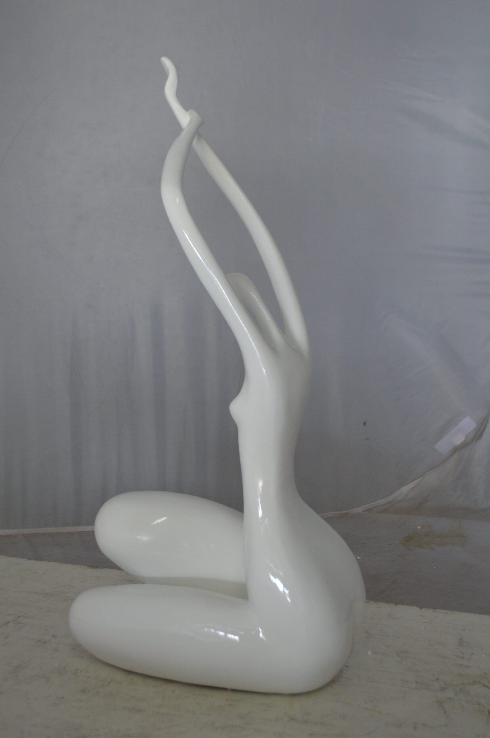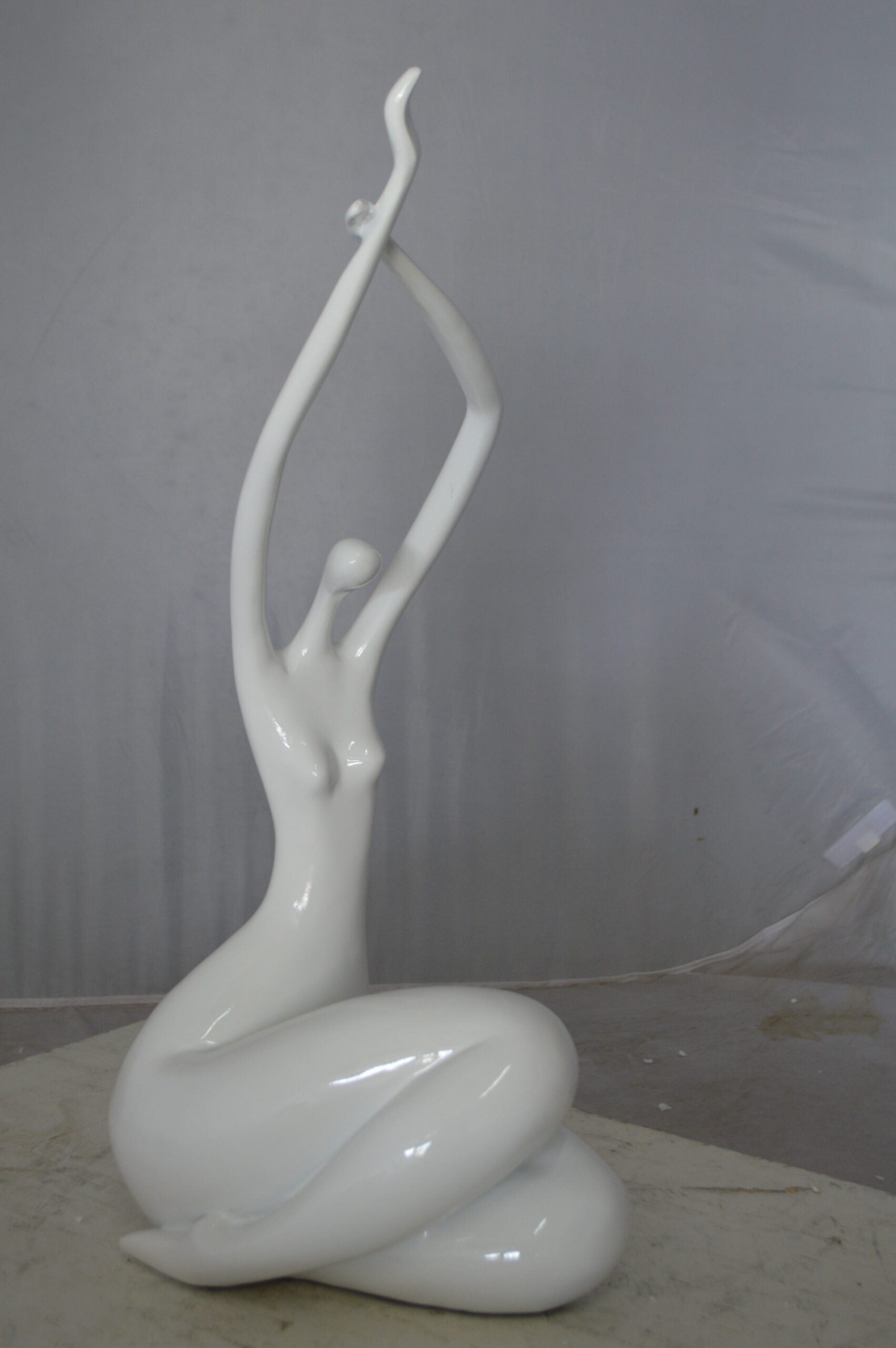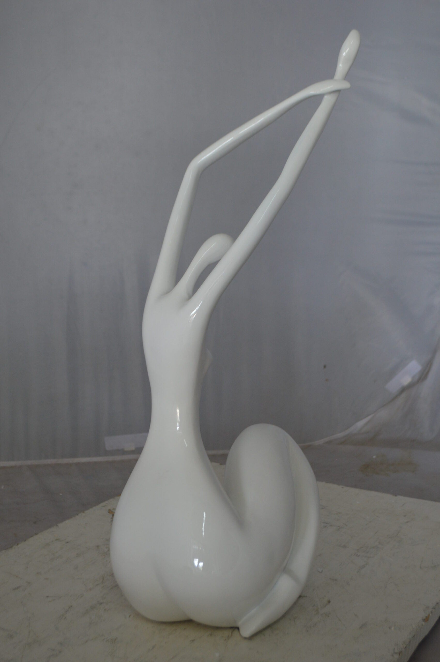 Enjoy this happy looking modern art, resin statue of a White dancer in action. This modern abstract would be a great addition to your home. Resin casting is a method of plastic casting where a mold is filled with a liquid synthetic resin, which then hardens. Size: 12"L x 8"W x 25"H. Weight is: 6Lb