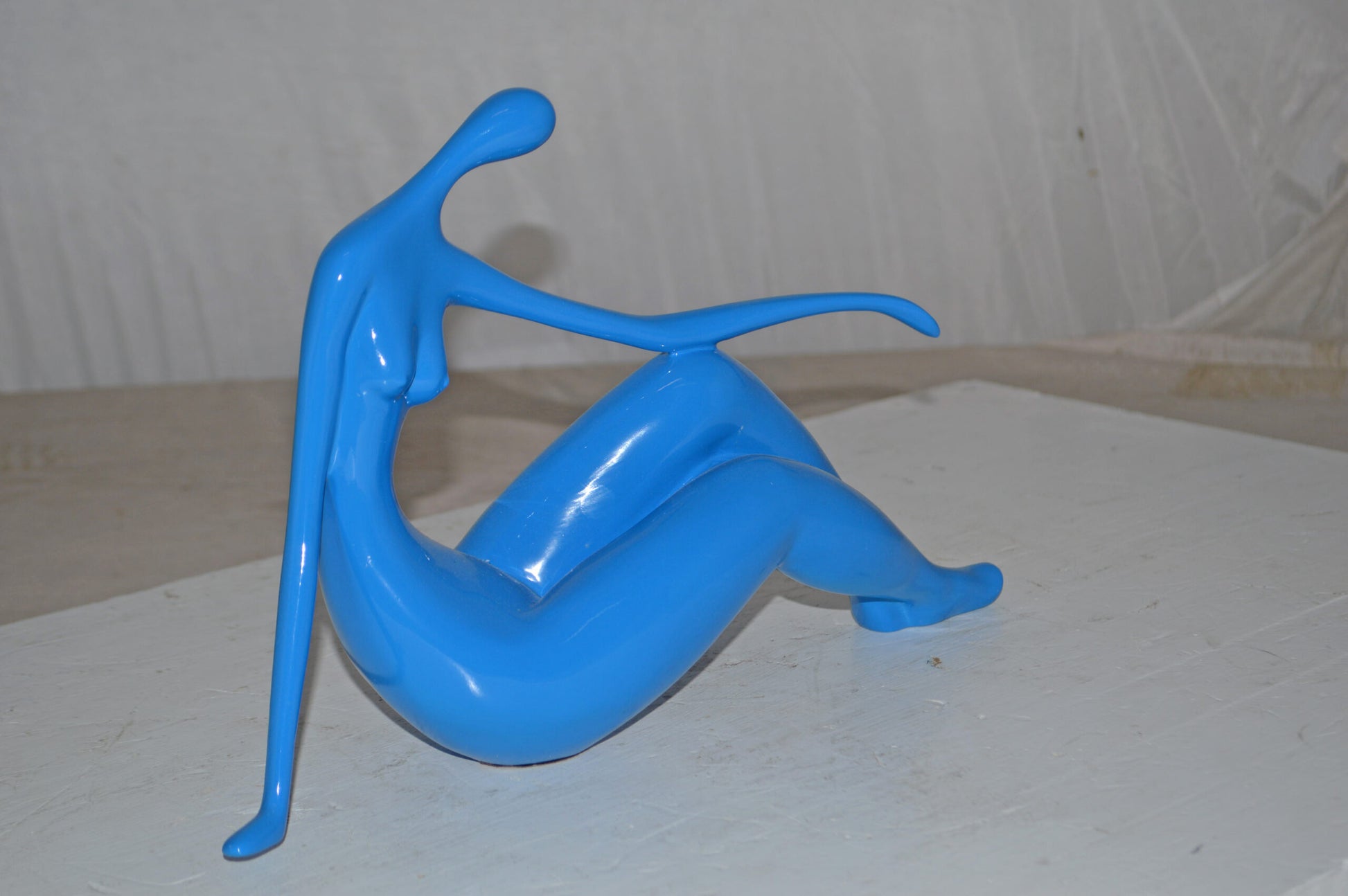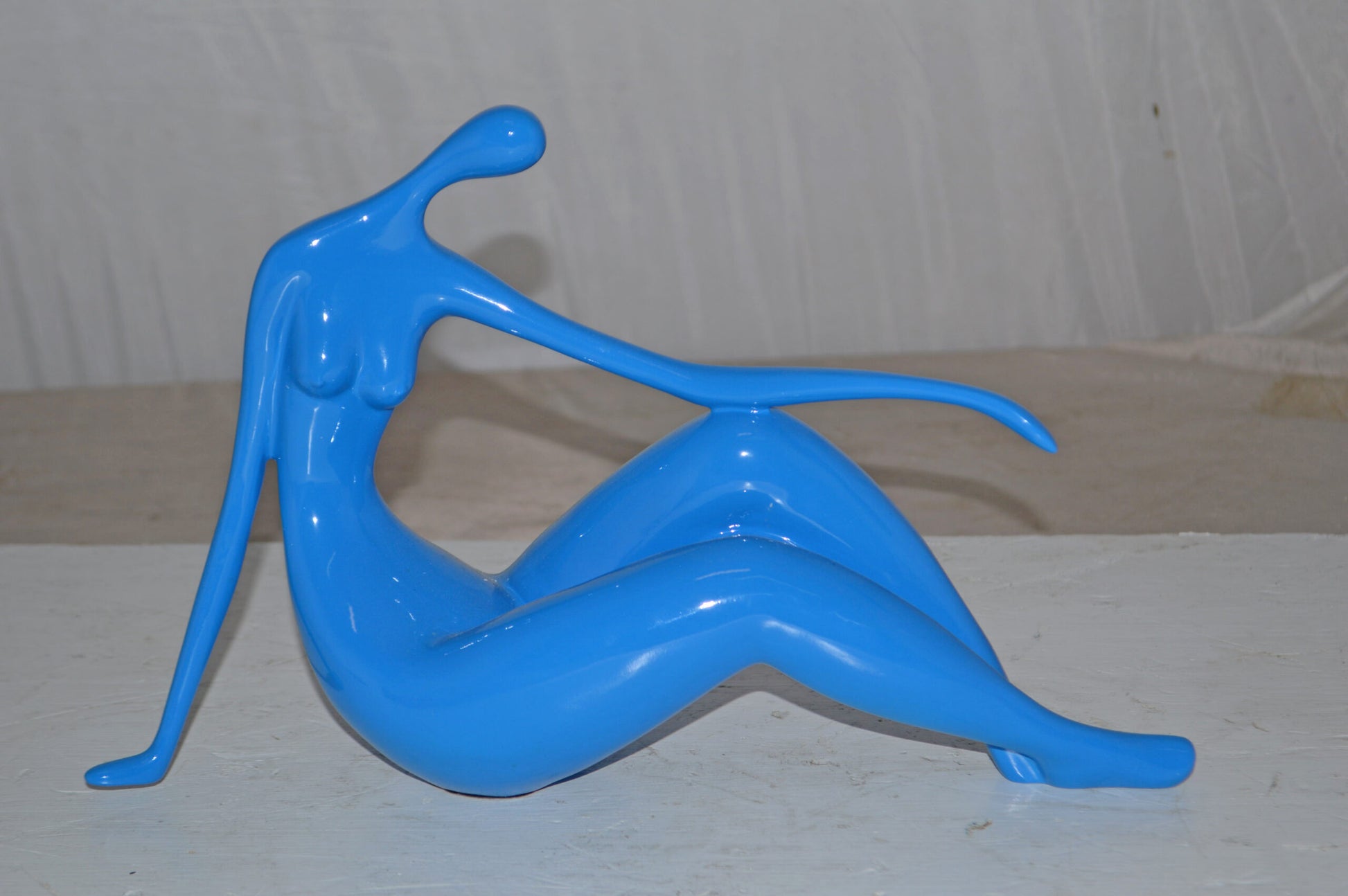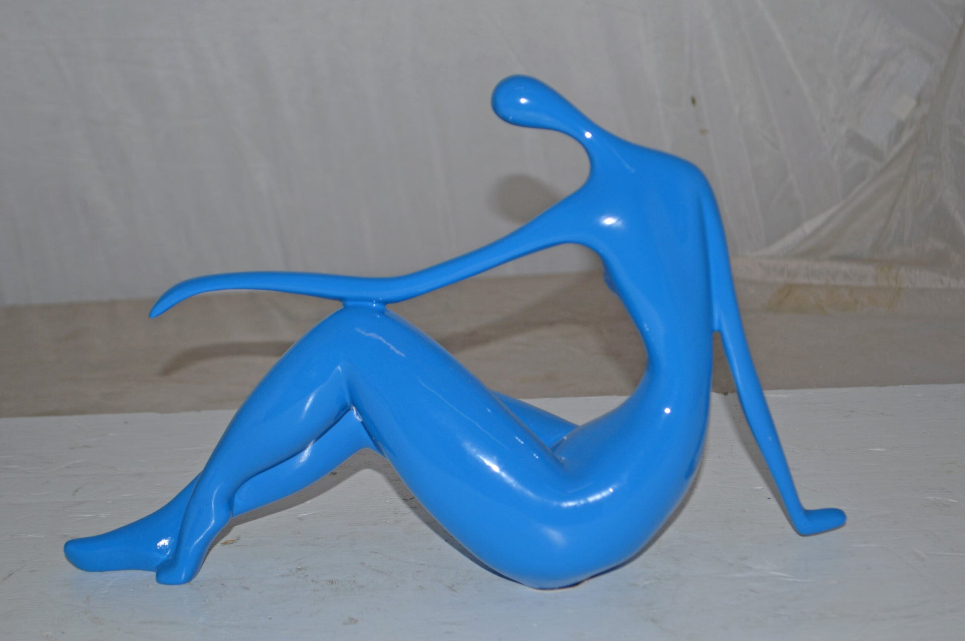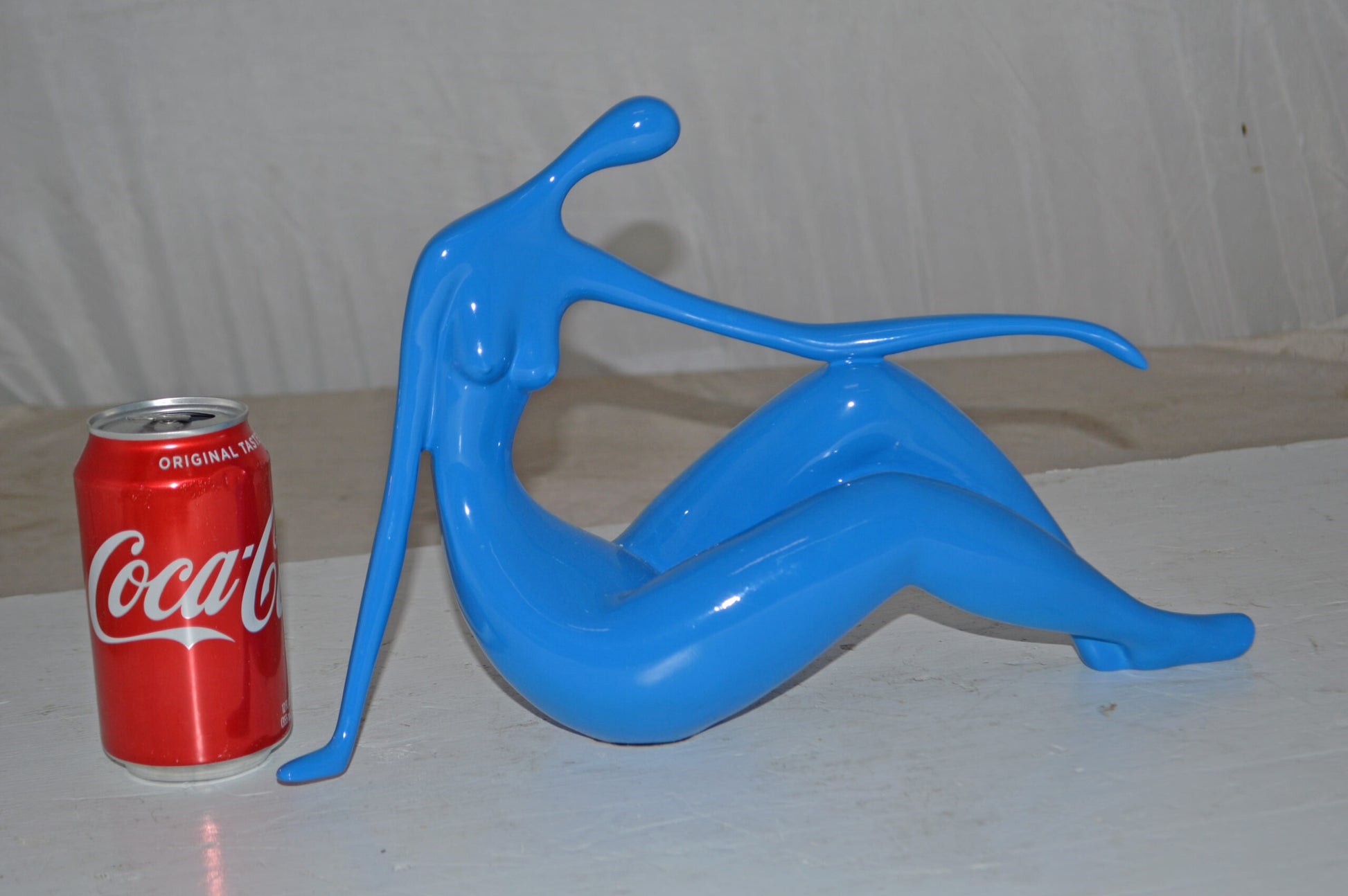 Enjoy this happy looking modern art, resin statue of a Blue Women on the Beach. This modern abstract would be a great addition to your home. Resin casting is a method of plastic casting where a mold is filled with a liquid synthetic resin, which then hardens. Size: 14"L x 4"W x 9"H. Weight is: 3Lb