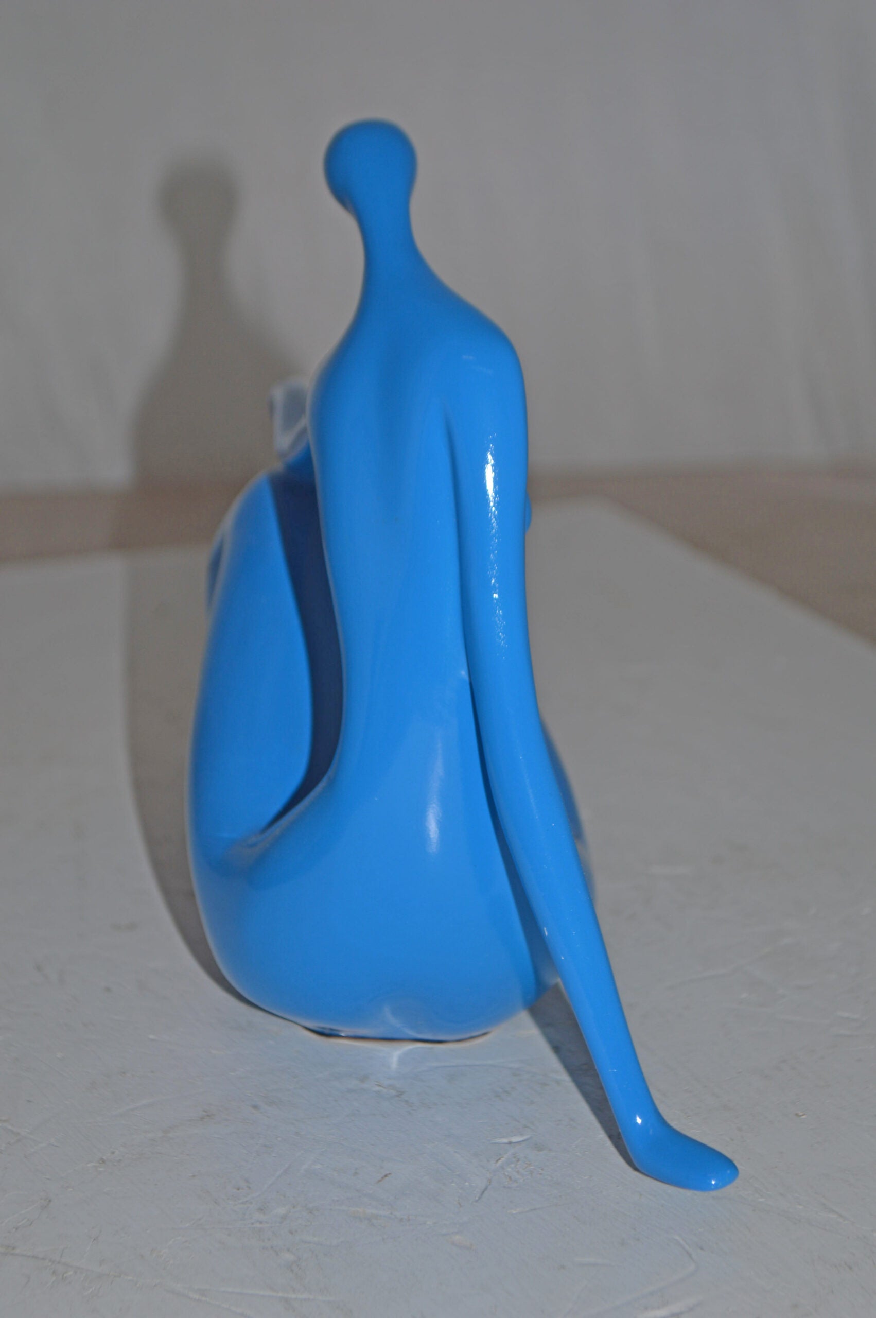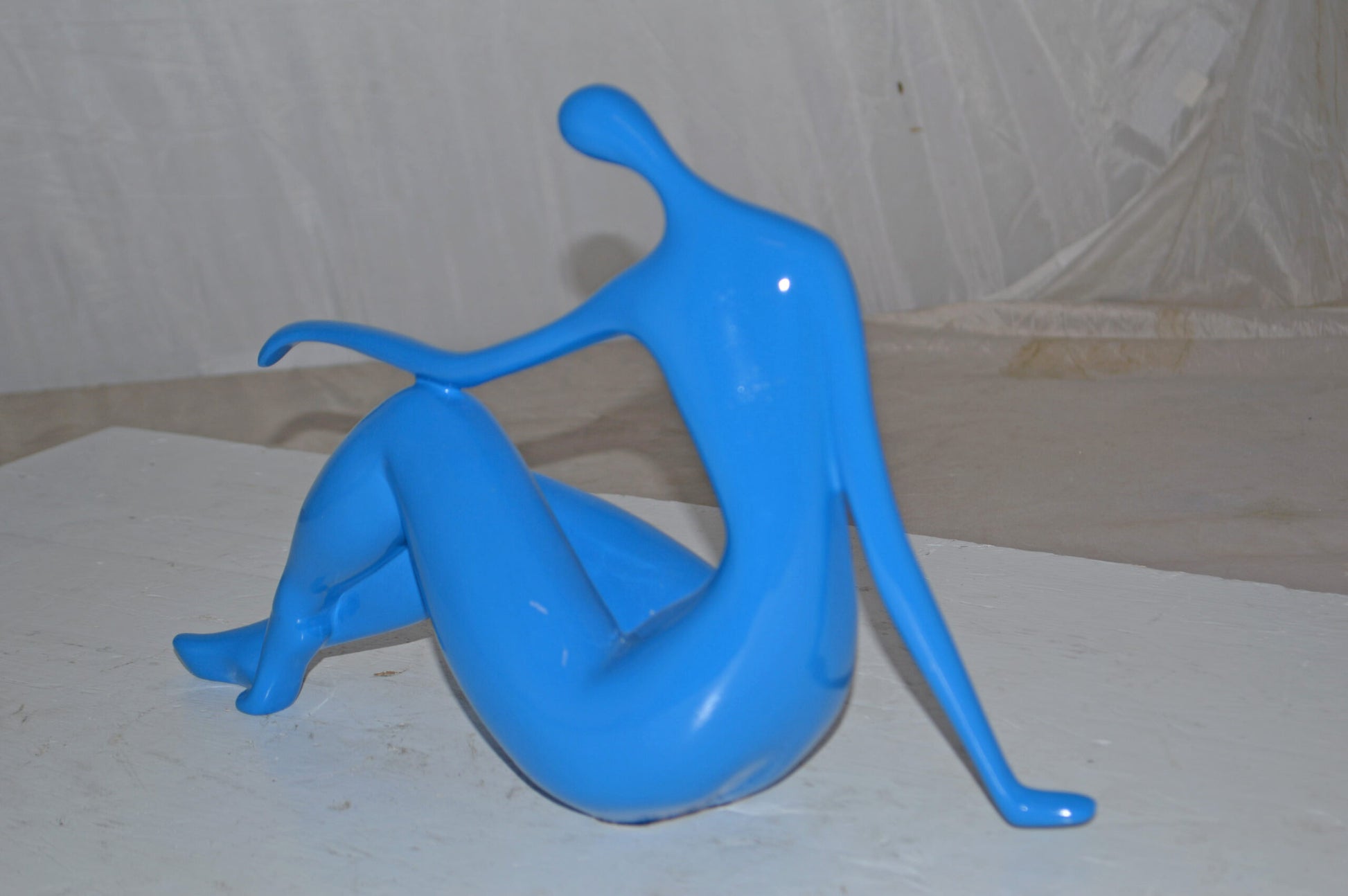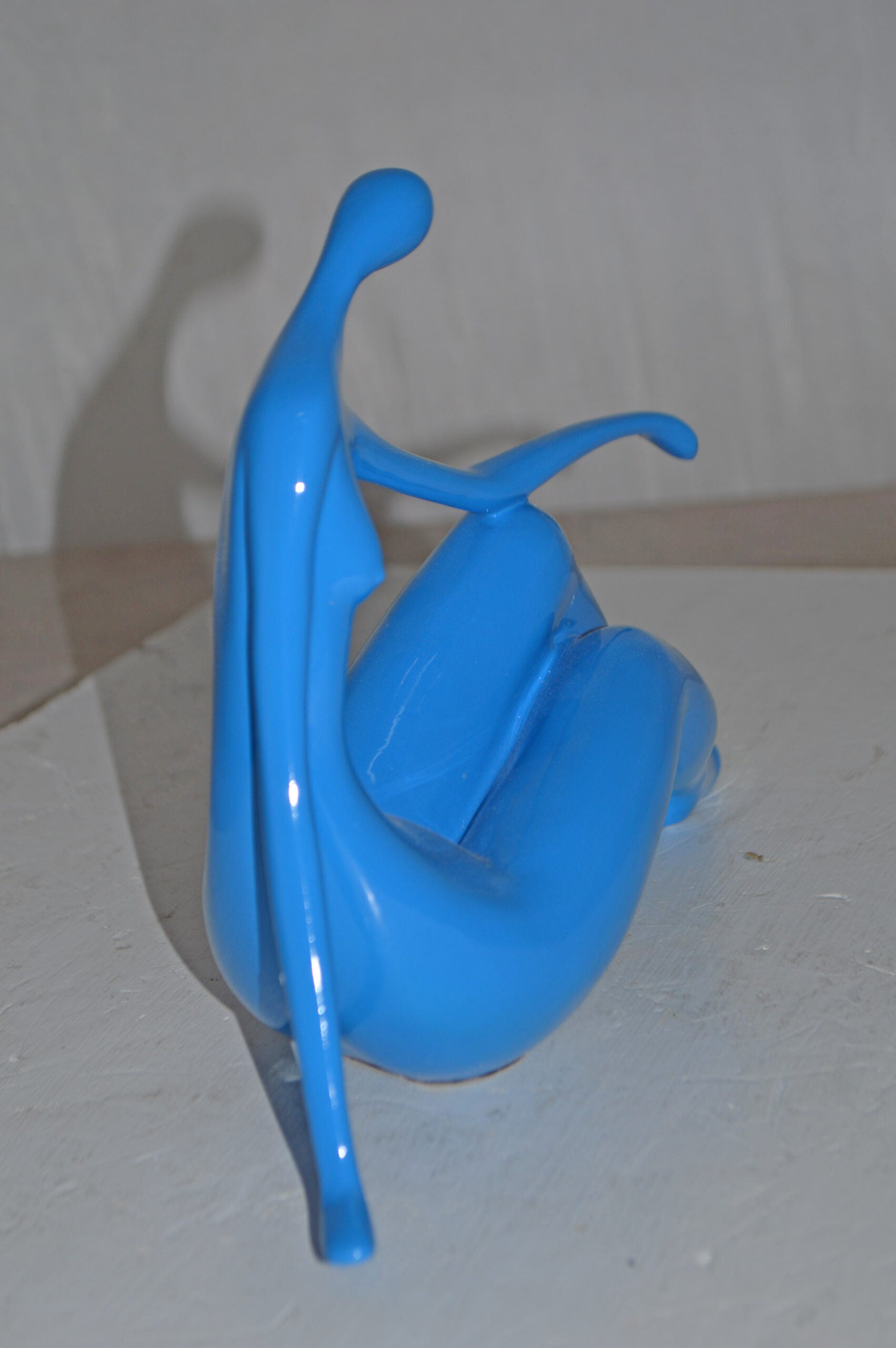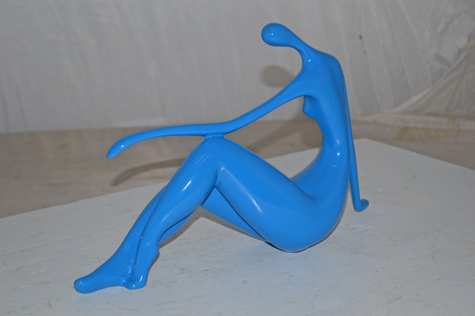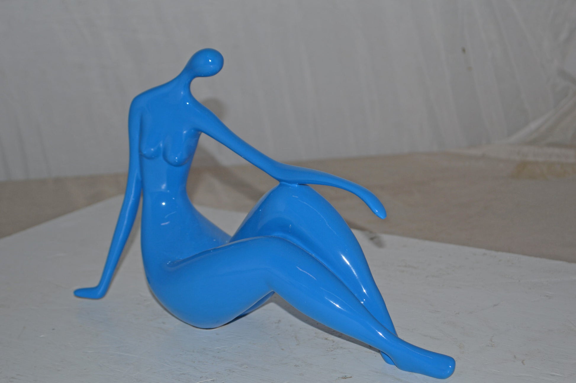 Enjoy this happy looking modern art, resin statue of a Blue Women on the Beach. This modern abstract would be a great addition to your home. Resin casting is a method of plastic casting where a mold is filled with a liquid synthetic resin, which then hardens. Size: 14"L x 4"W x 9"H. Weight is: 3Lb
