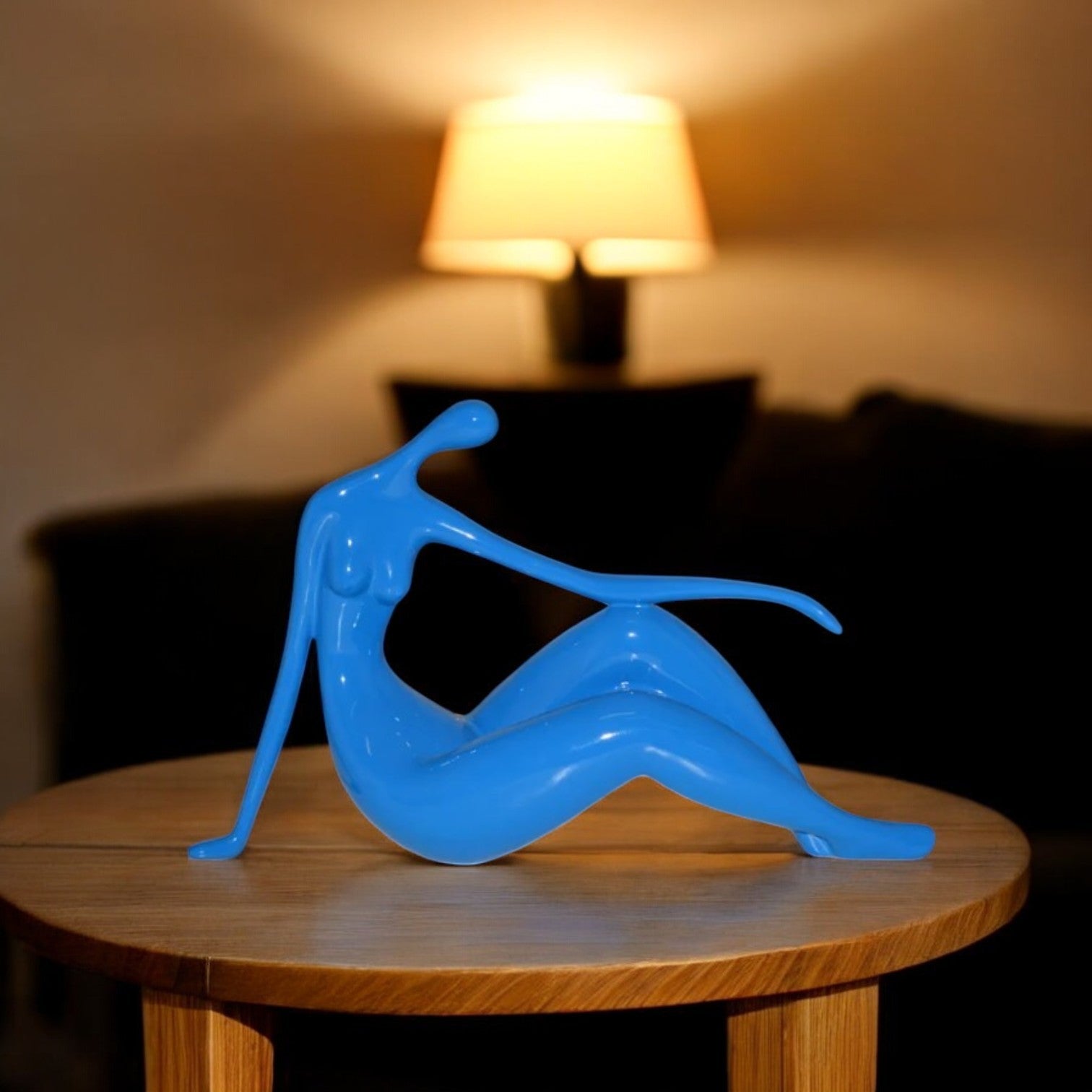 Modern Art Medium Blue Women on the Beach Resin Statue - Size: 14" x 4" x 9"H