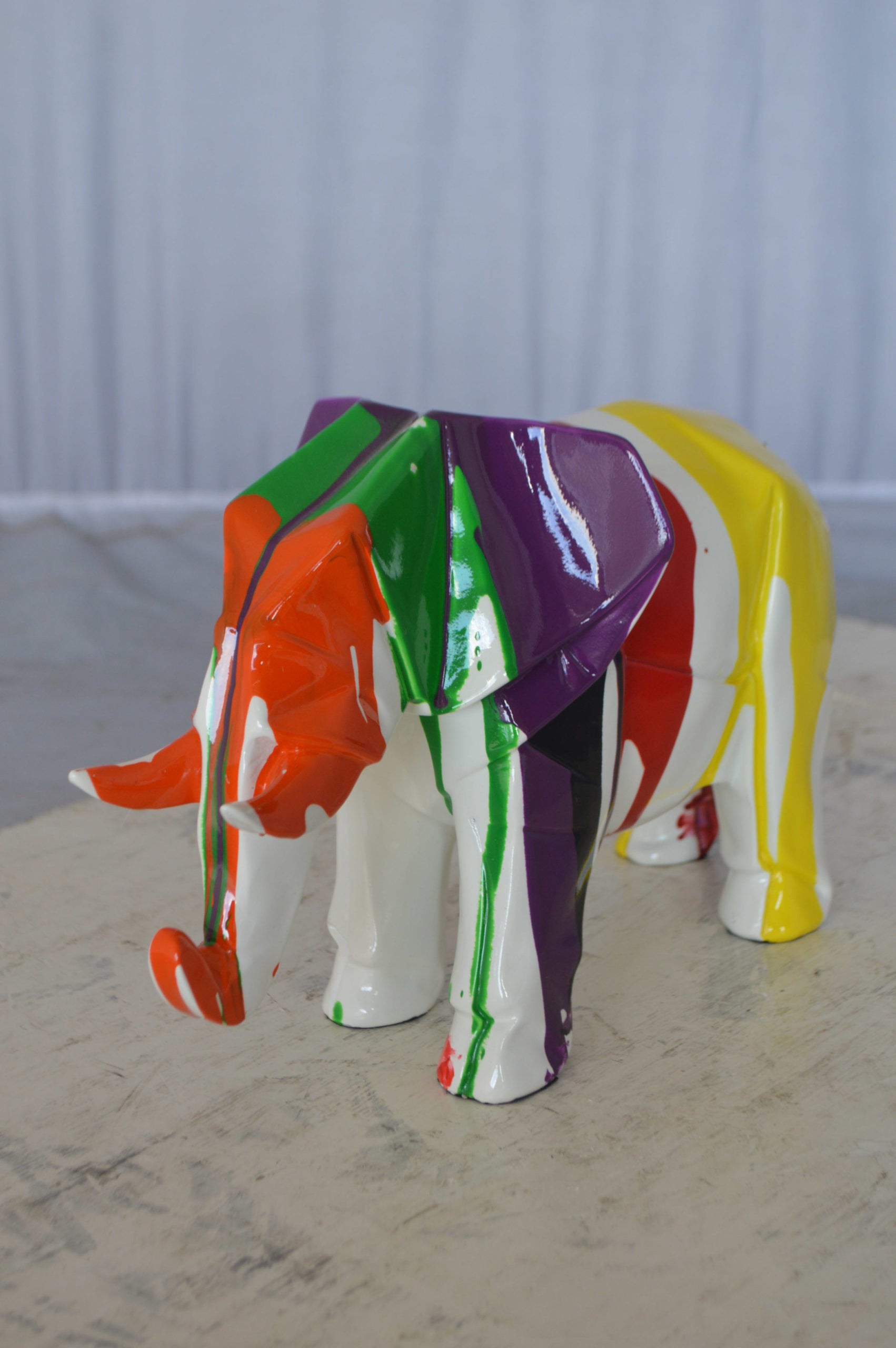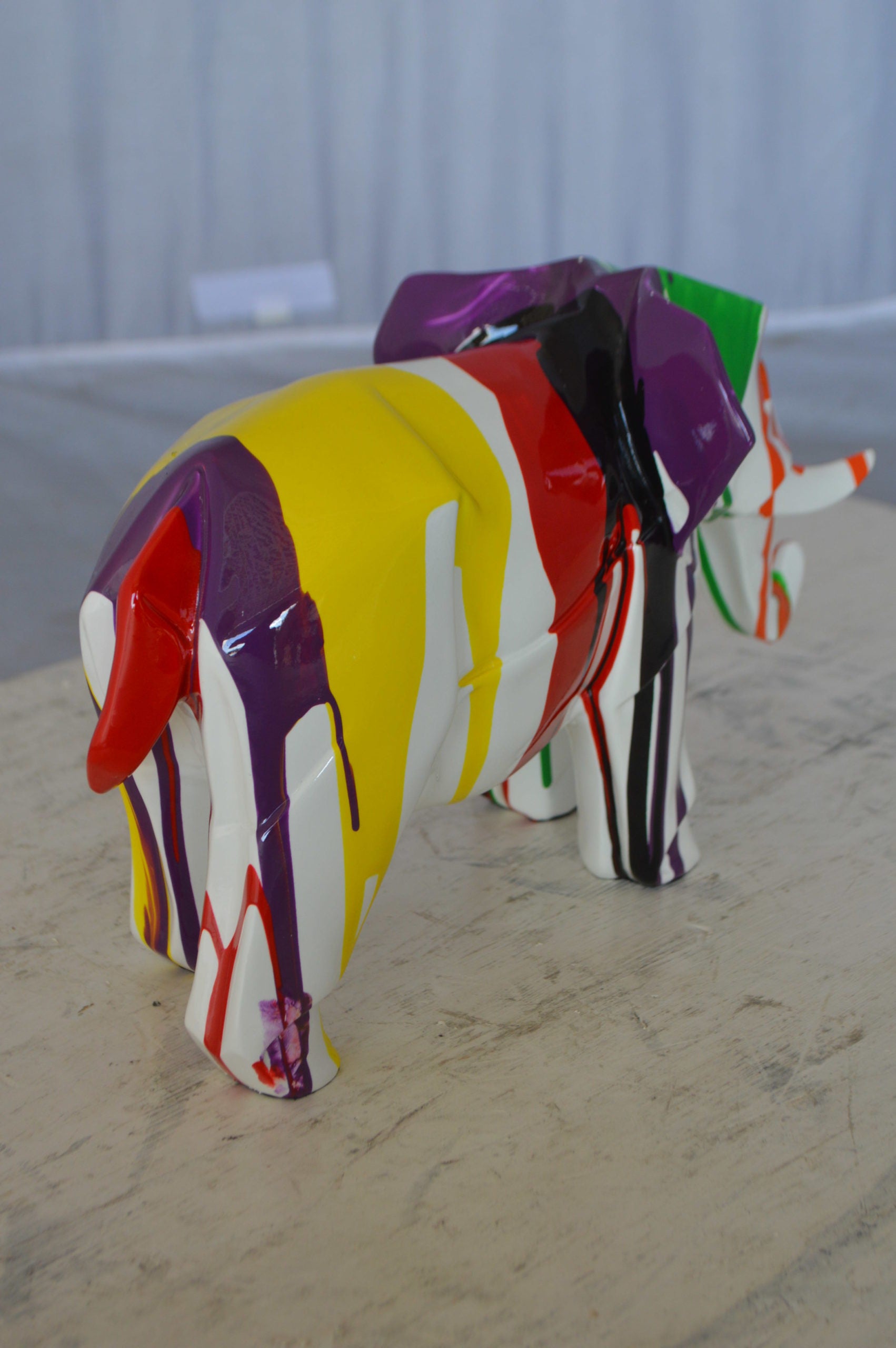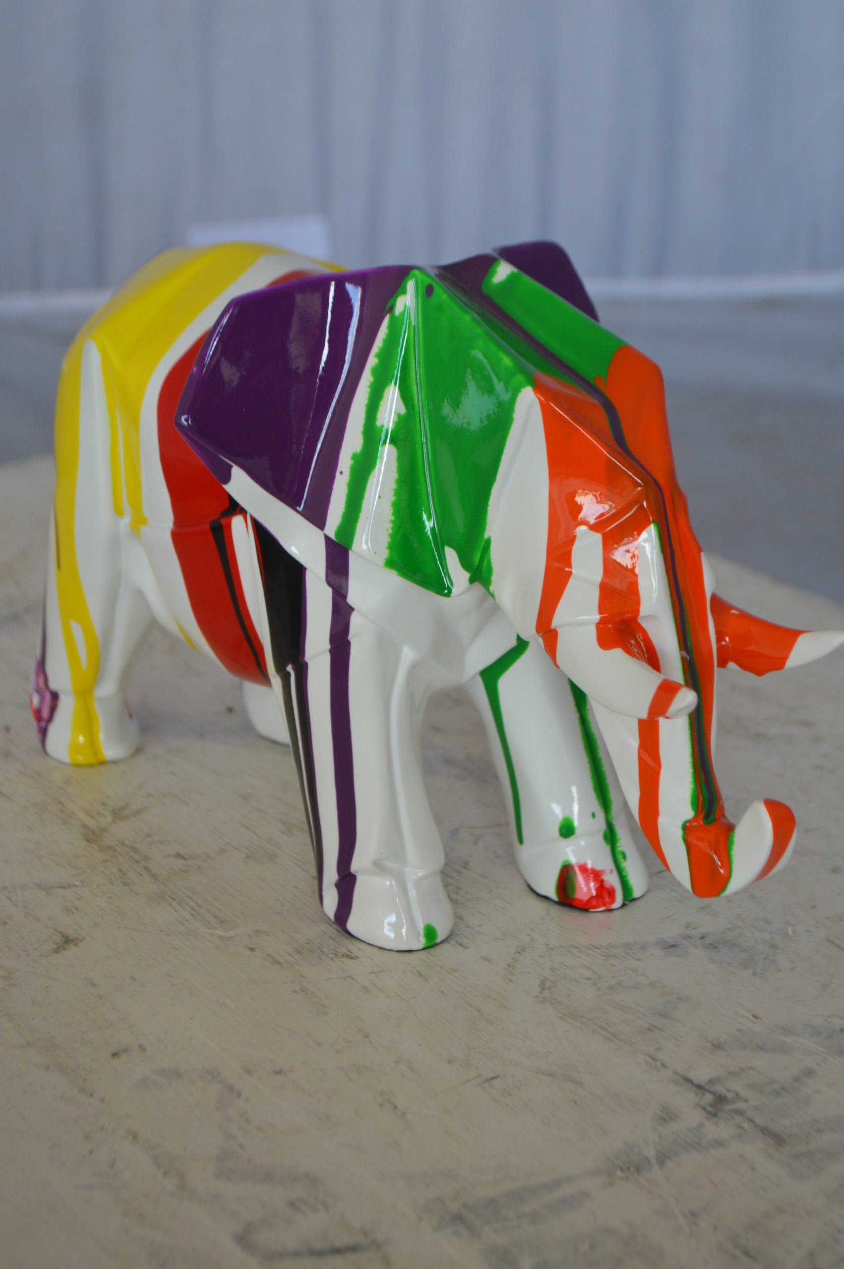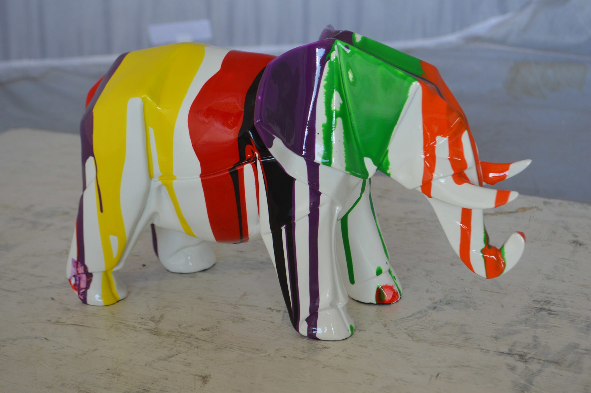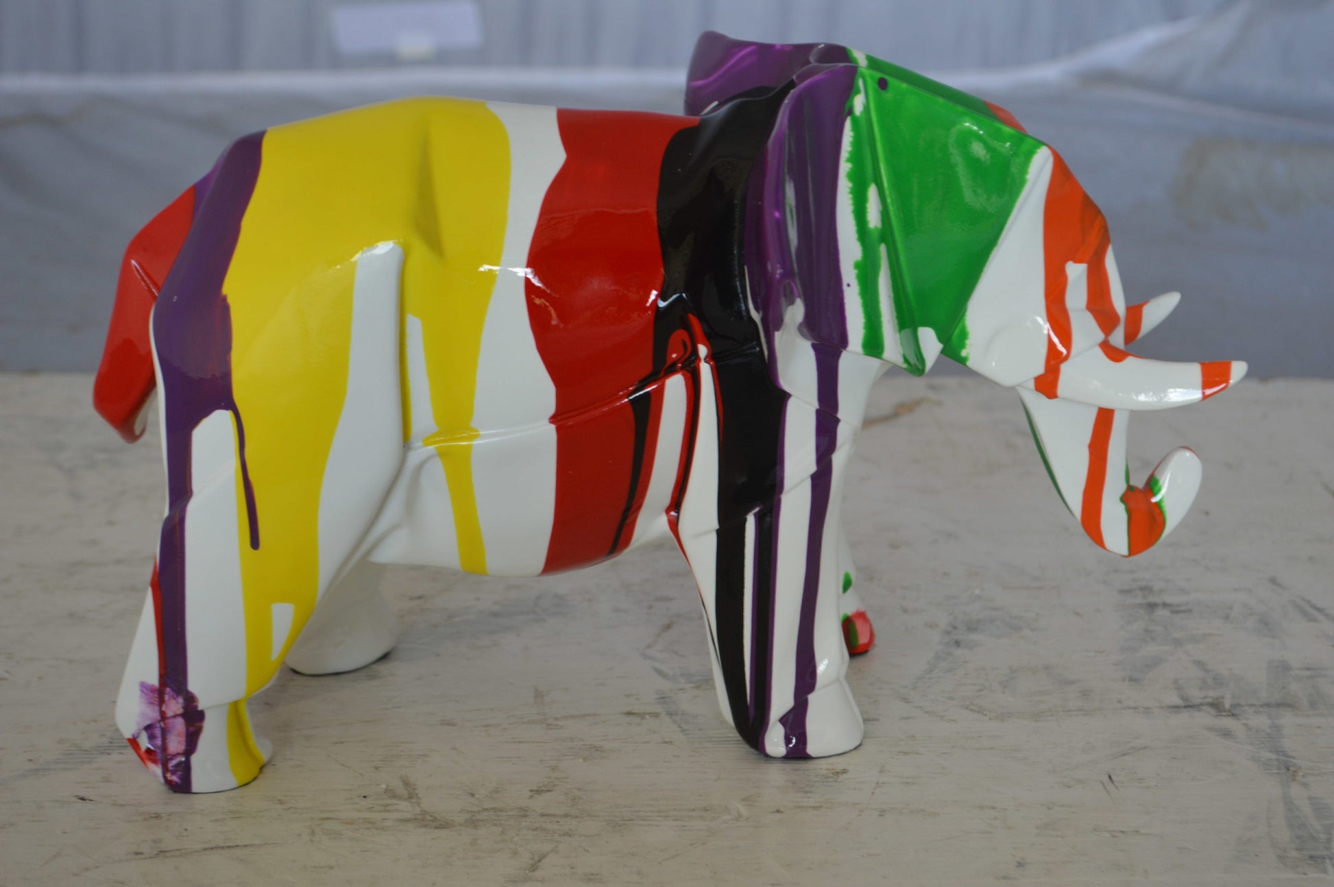 Modern art multicolored elephant resin statue - Size: 12"L x 6"W x 8"H.