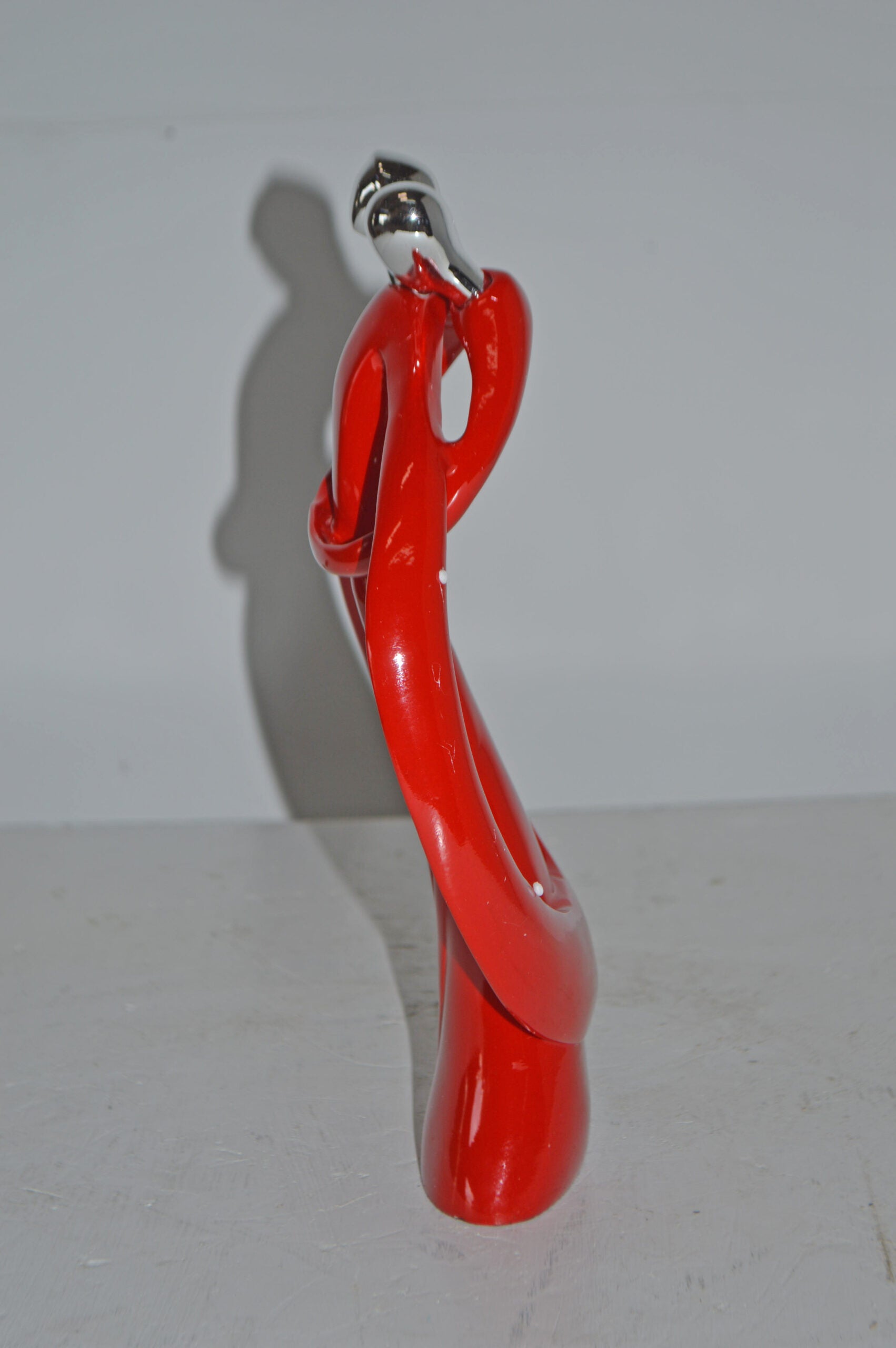 Modern Art of a Couple Hugging Red Chrome Resin Statue - Size: 8"L x 2"W x 12"H