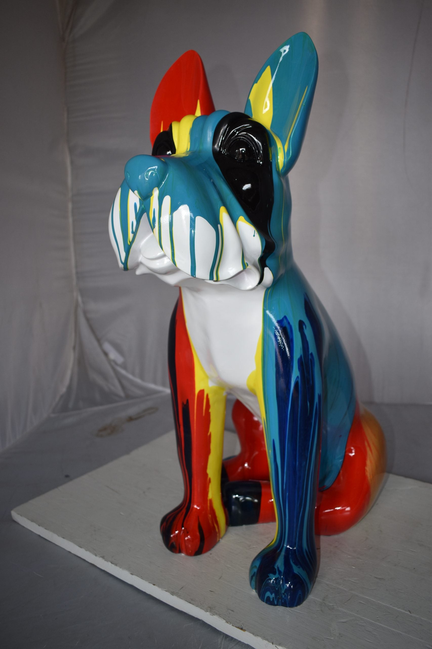 Enjoy this Modern Art of a Graffiti Great Dane Dog Made of Resin. This modern abstract would be a great addition to your home. Resin casting is a method of plastic casting where a mold is filled with a liquid synthetic resin, which then hardens. Get one for yourself or surprise a friend with an unforgettable gift! Size: 20"L x 11"W x 28"H. Weight is: 21Lb