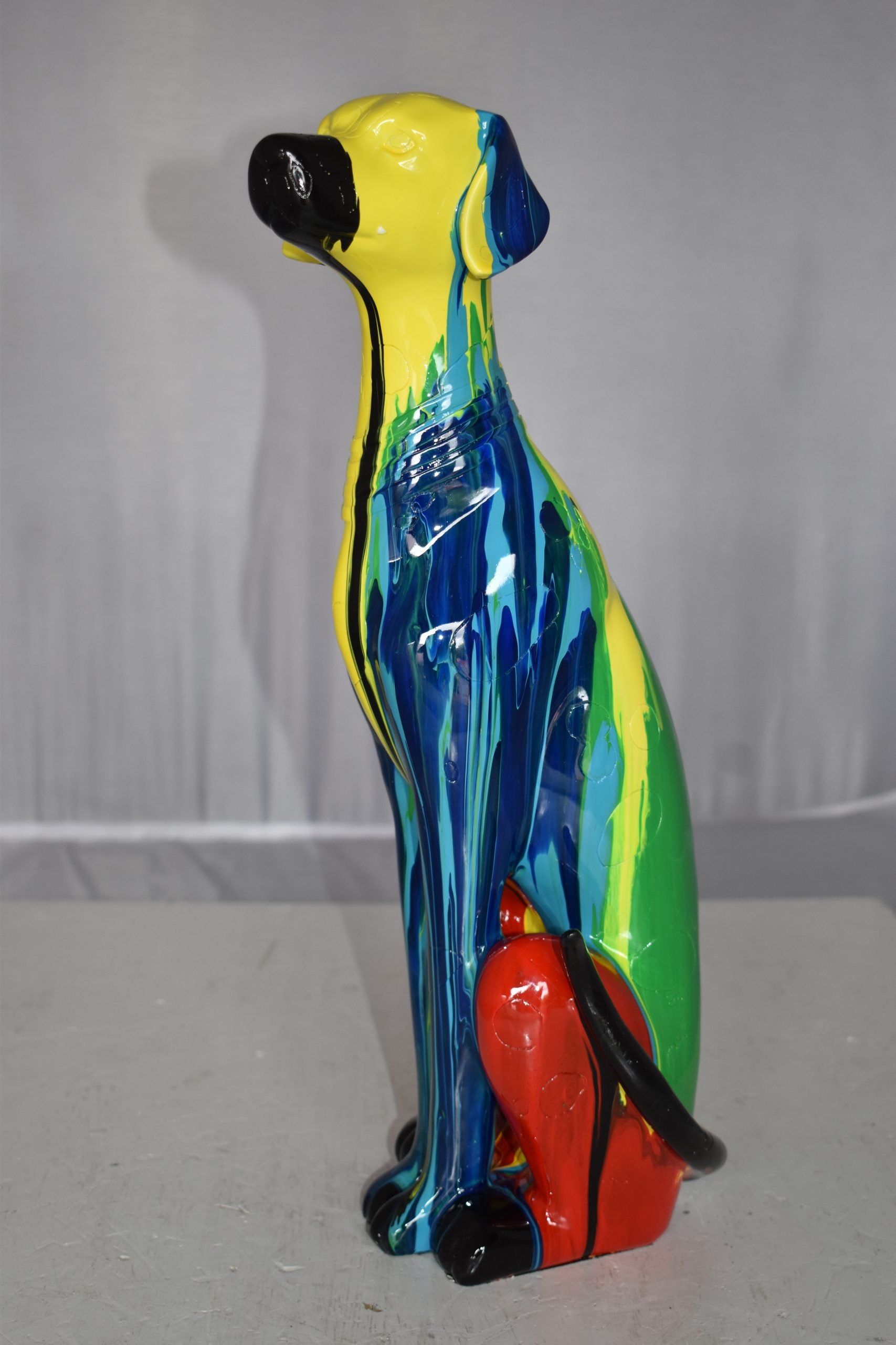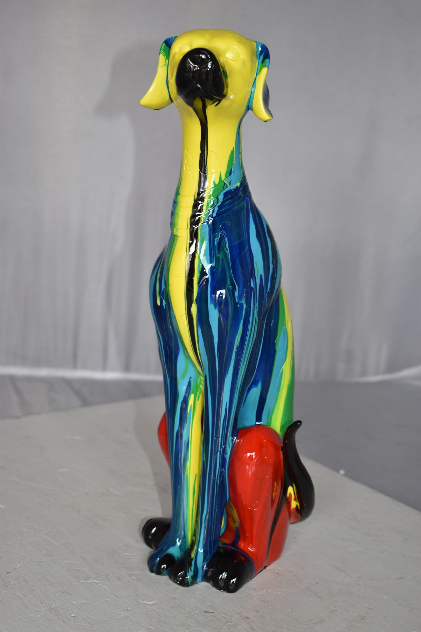 Modern Art of a Greyhound Dog Sitting Statue Made of Resin Size: 7" x 5" x 17"H
