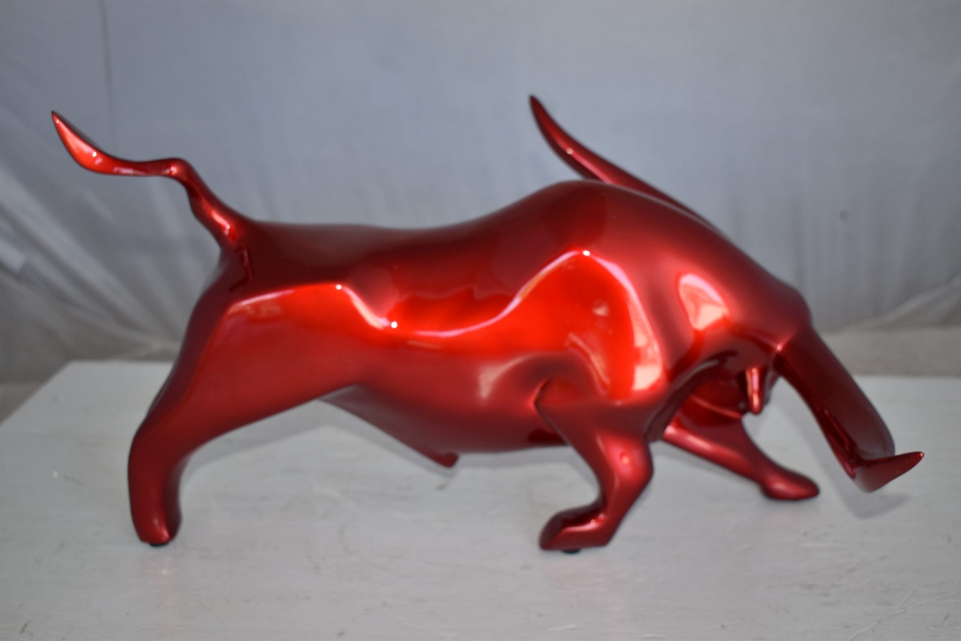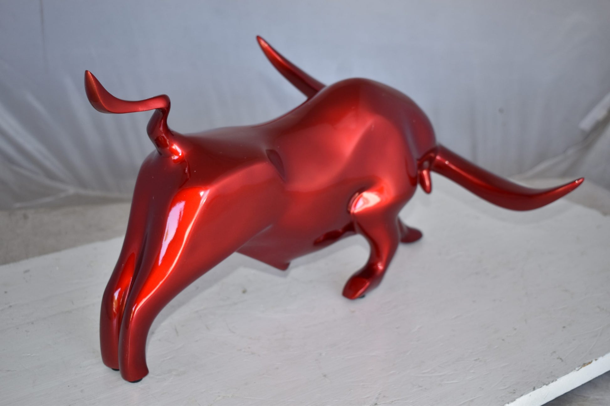 Modern Art of a Red Bull Made of Resin Statue Size: 17" x 14" x 10"H