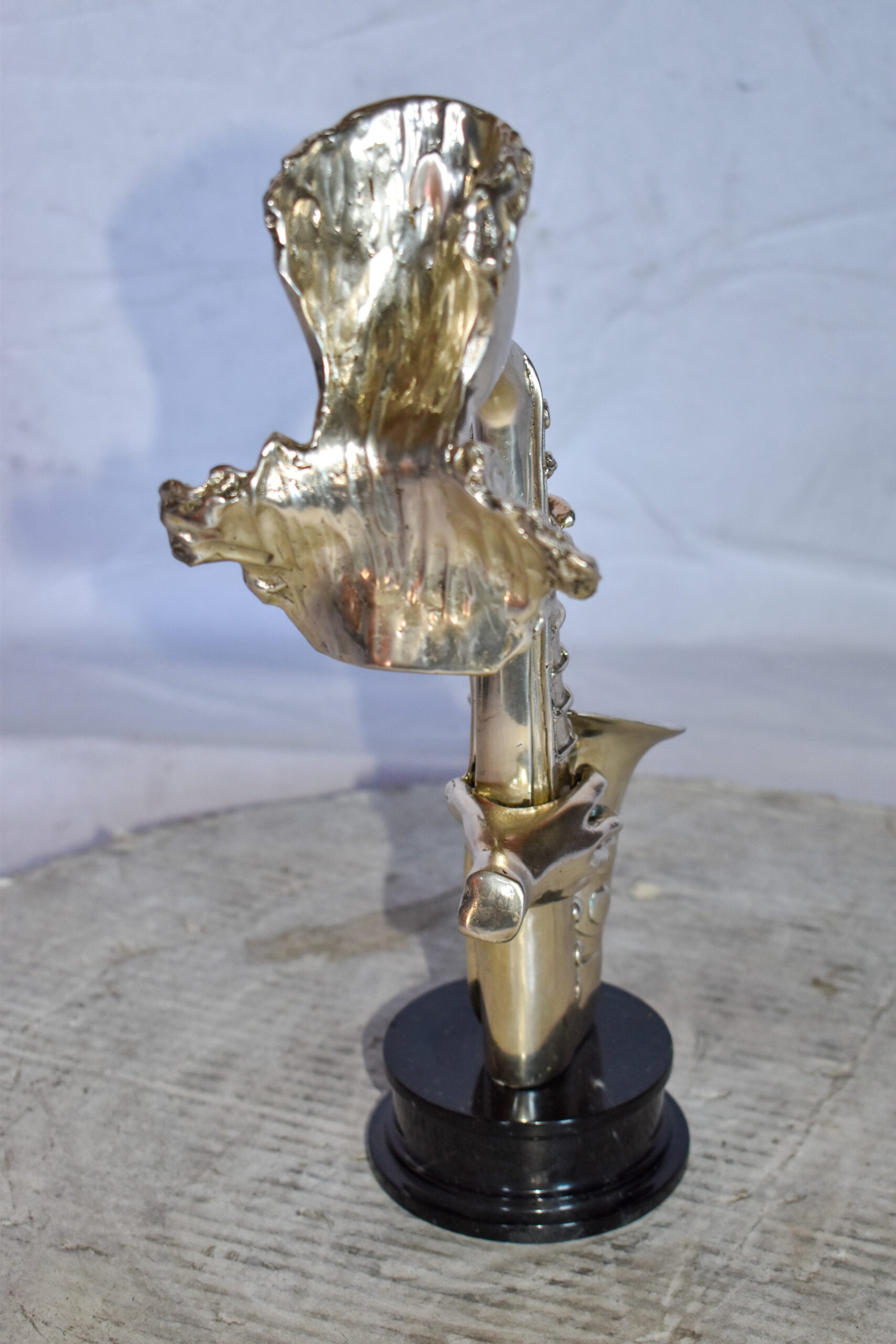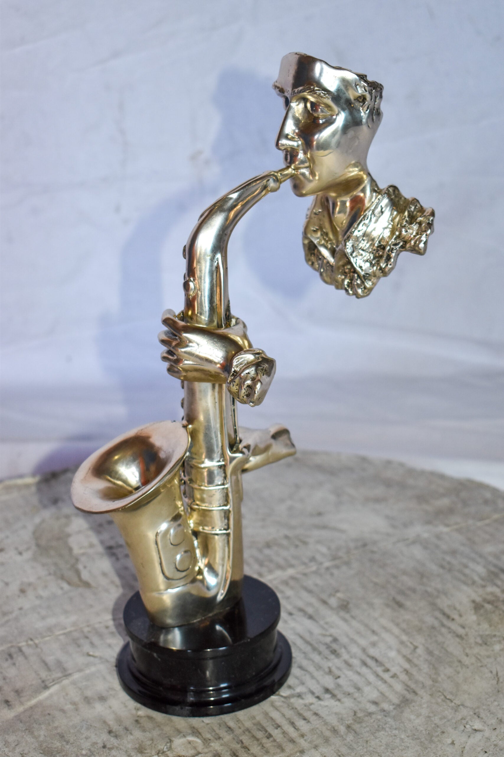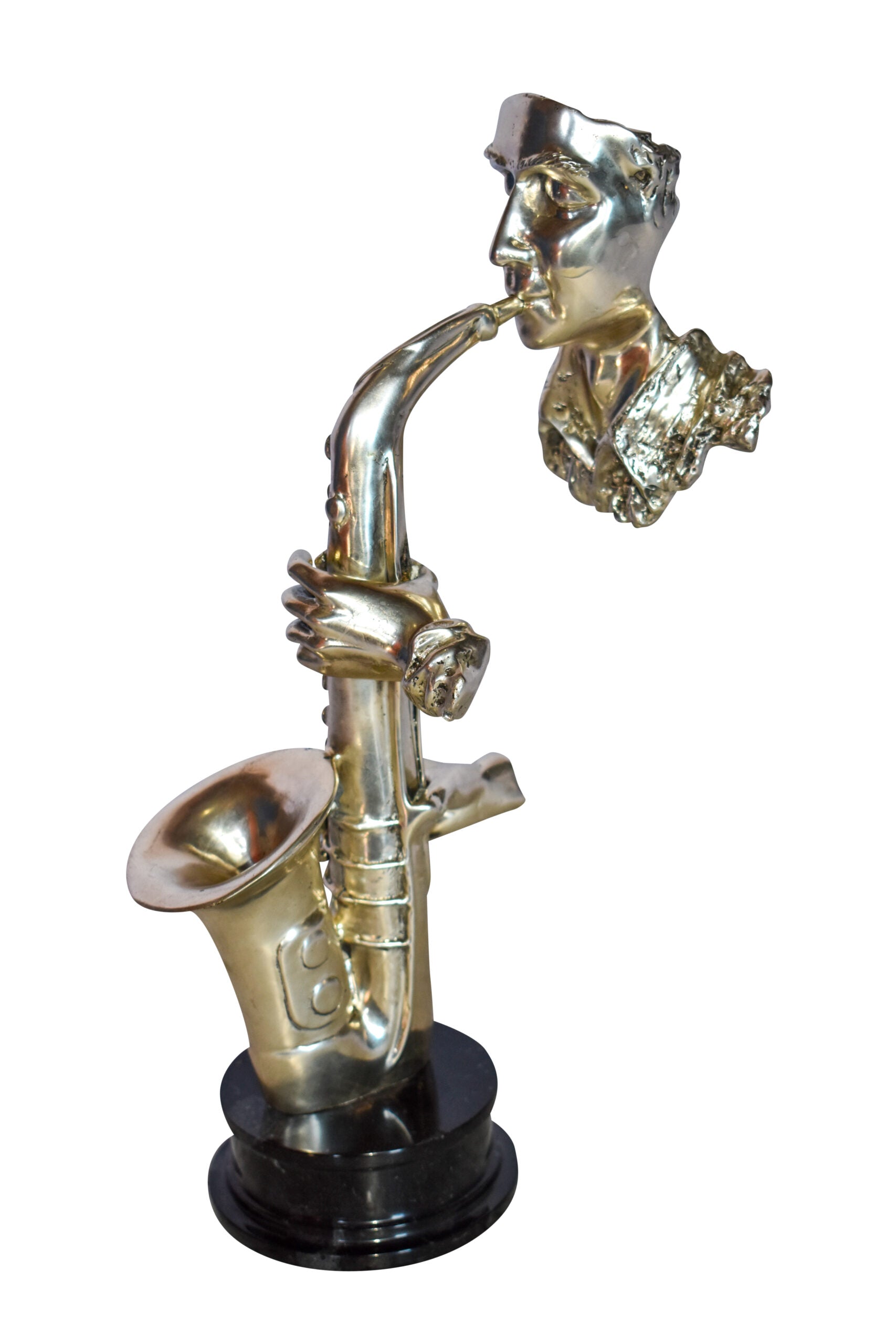 Modern Art of a Saxophone Player Bronze Statue on Marble Size: 7" x 5" x 15"H