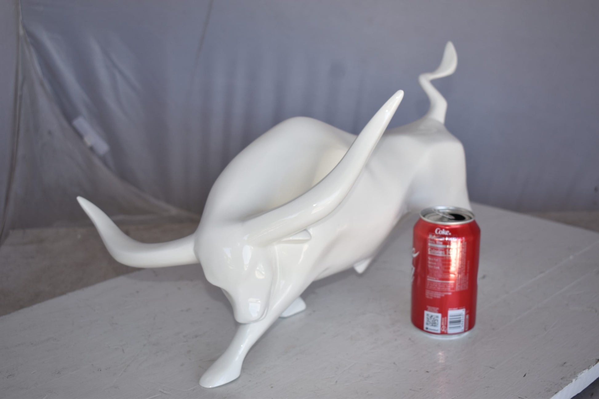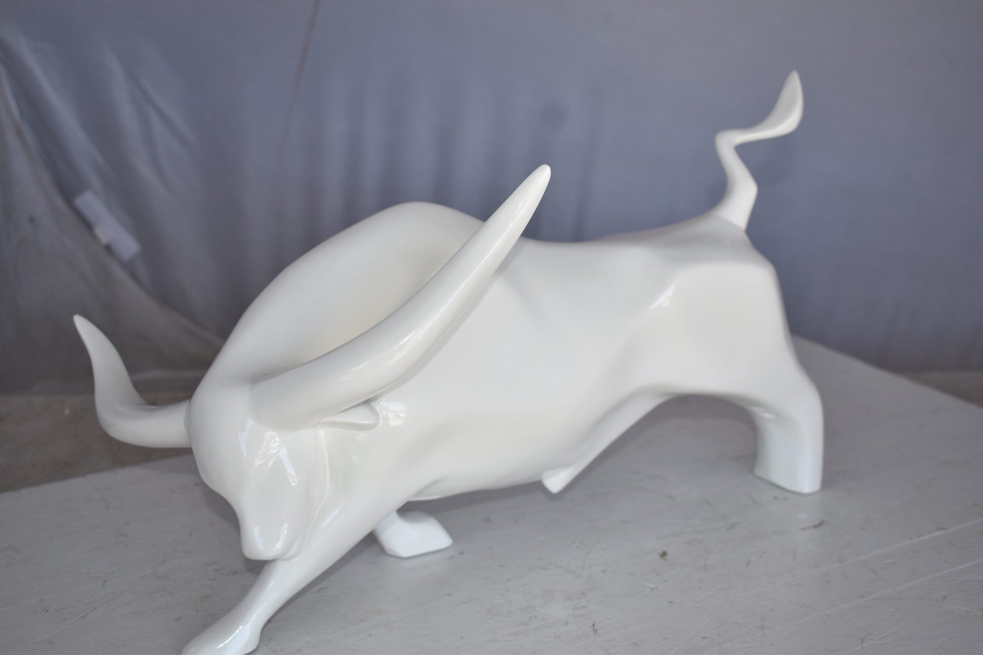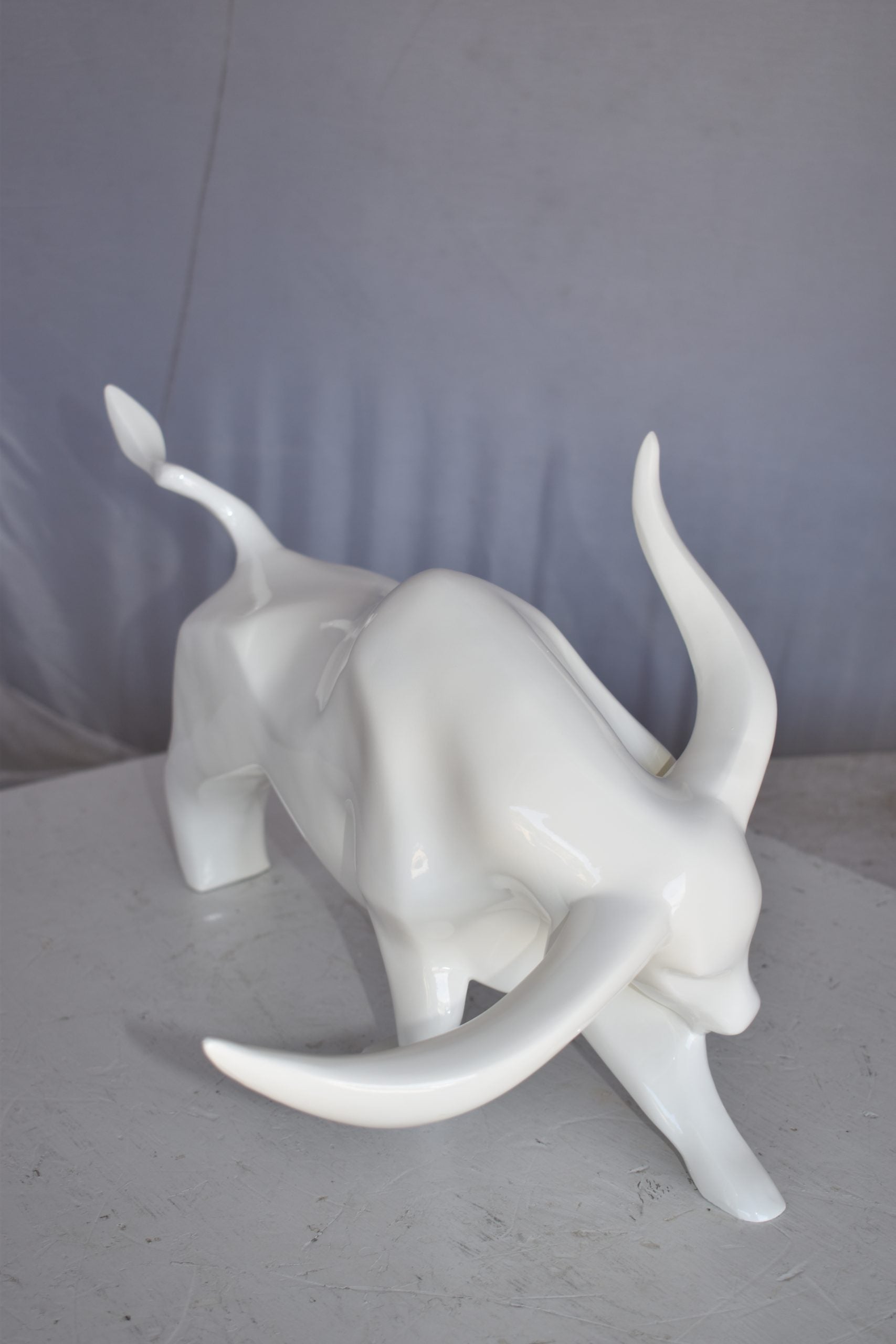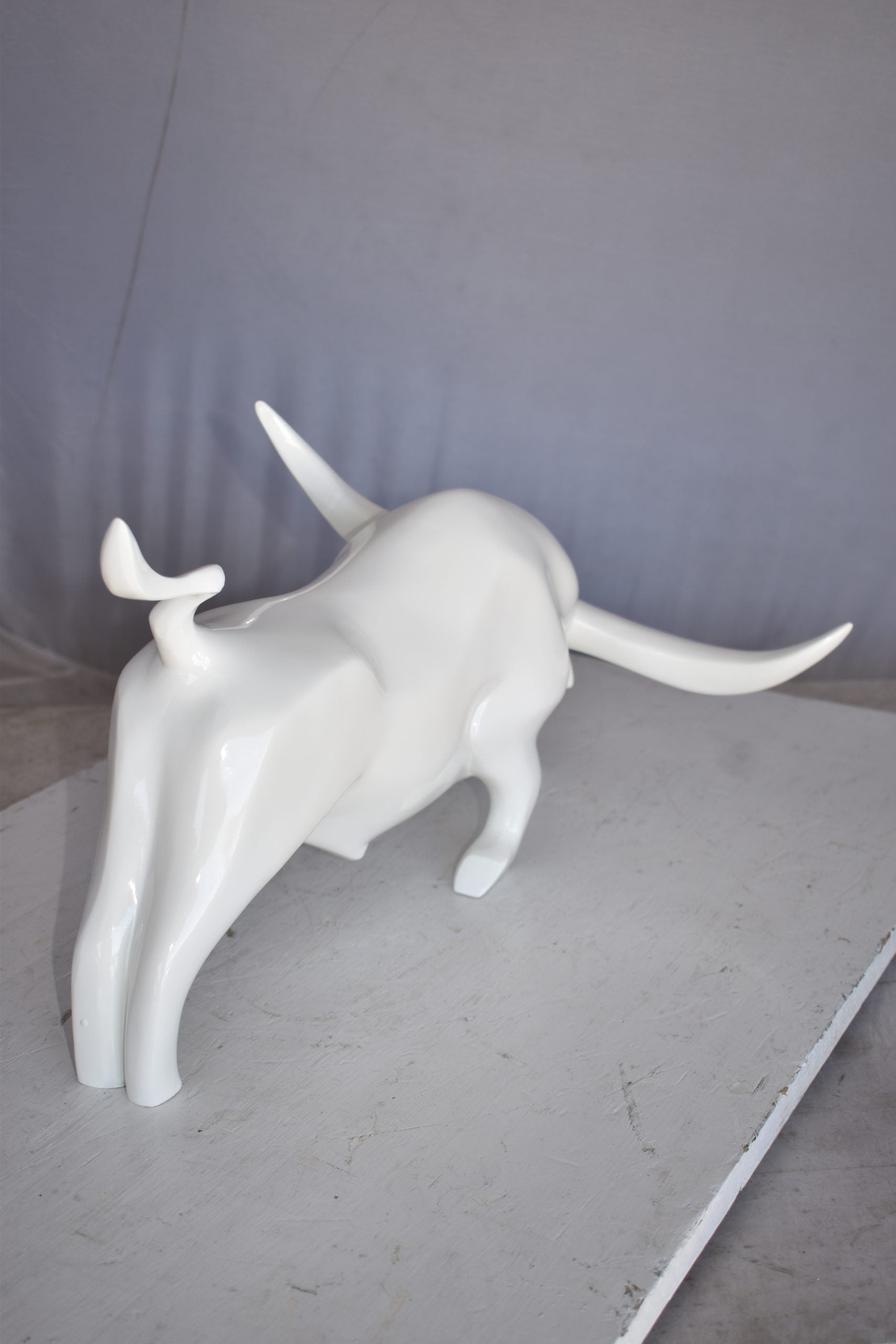Modern Art of a White Bull Made of Resin Statue Size: 17" x 14" x 10"H