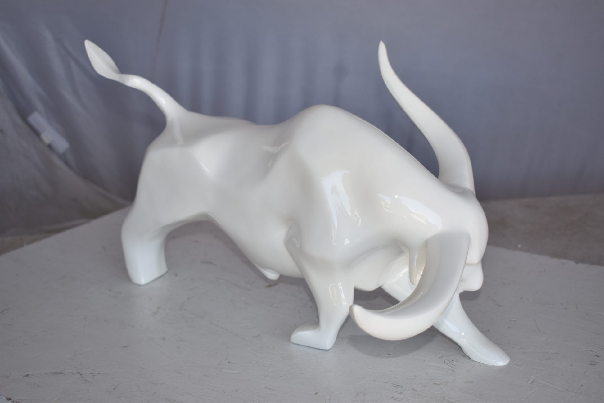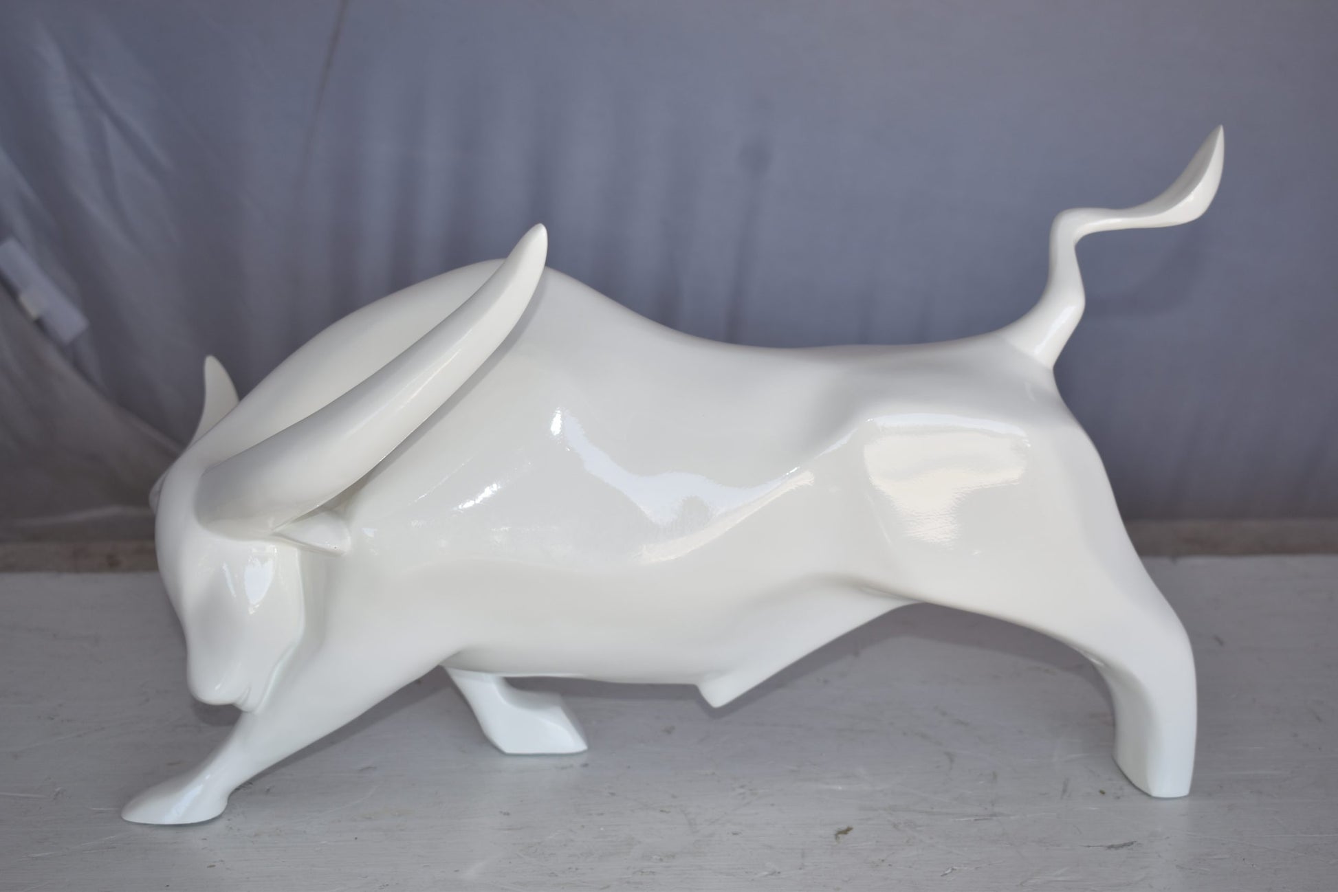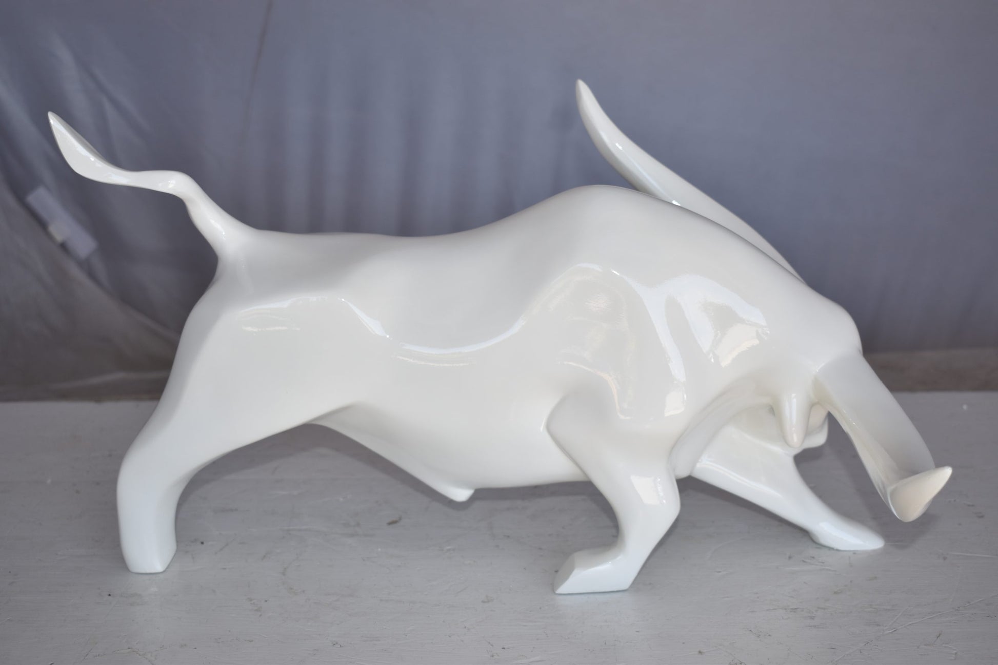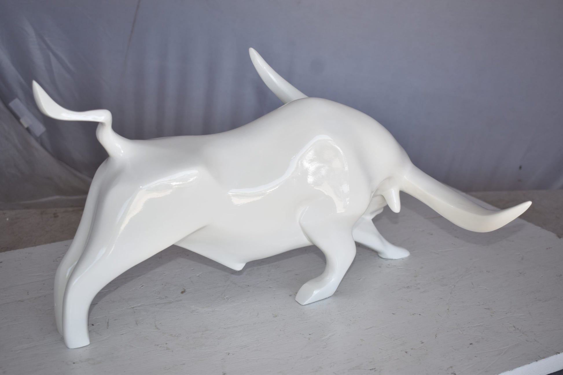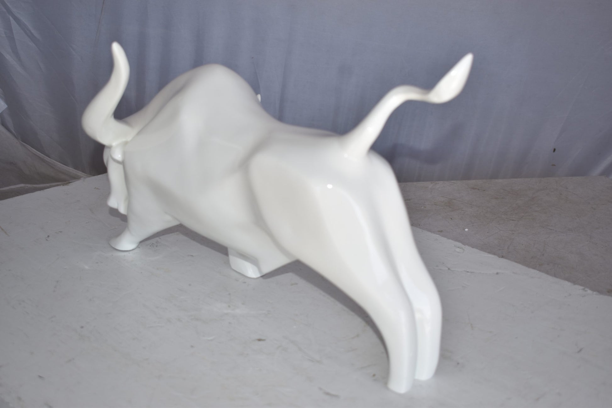 Modern Art of a White Bull Made of Resin Statue Size: 17" x 14" x 10"H