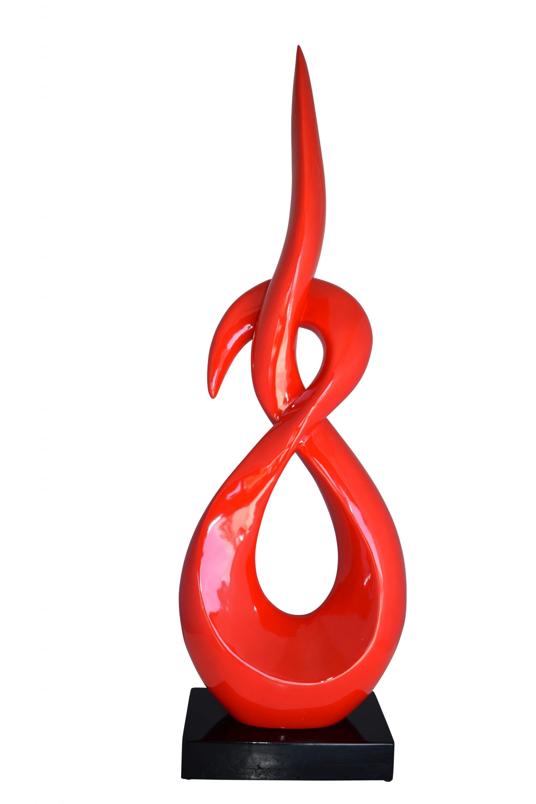 Enjoy this happy looking modern art, resin statue of a red eternity sculpture made of resin, mounted on a base. This modern abstract would be a great addition to your home. Resin casting is a method of plastic casting where a mold is filled with a liquid synthetic resin, which then hardens. Get one for yourself or surprise a friend with an unforgettable gift! Size: 13"L x 7"W x 42"H. Weight is: 14Lb