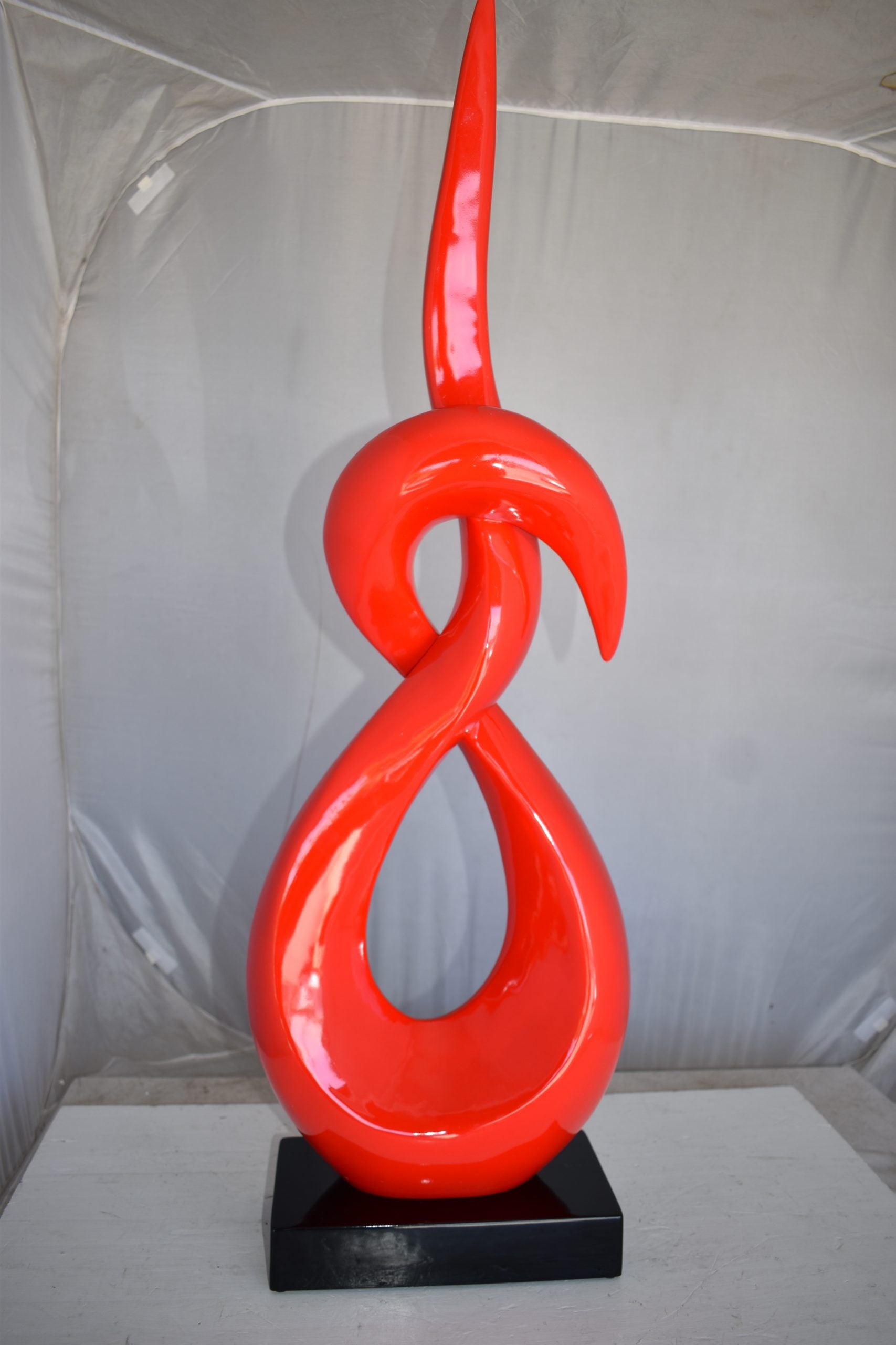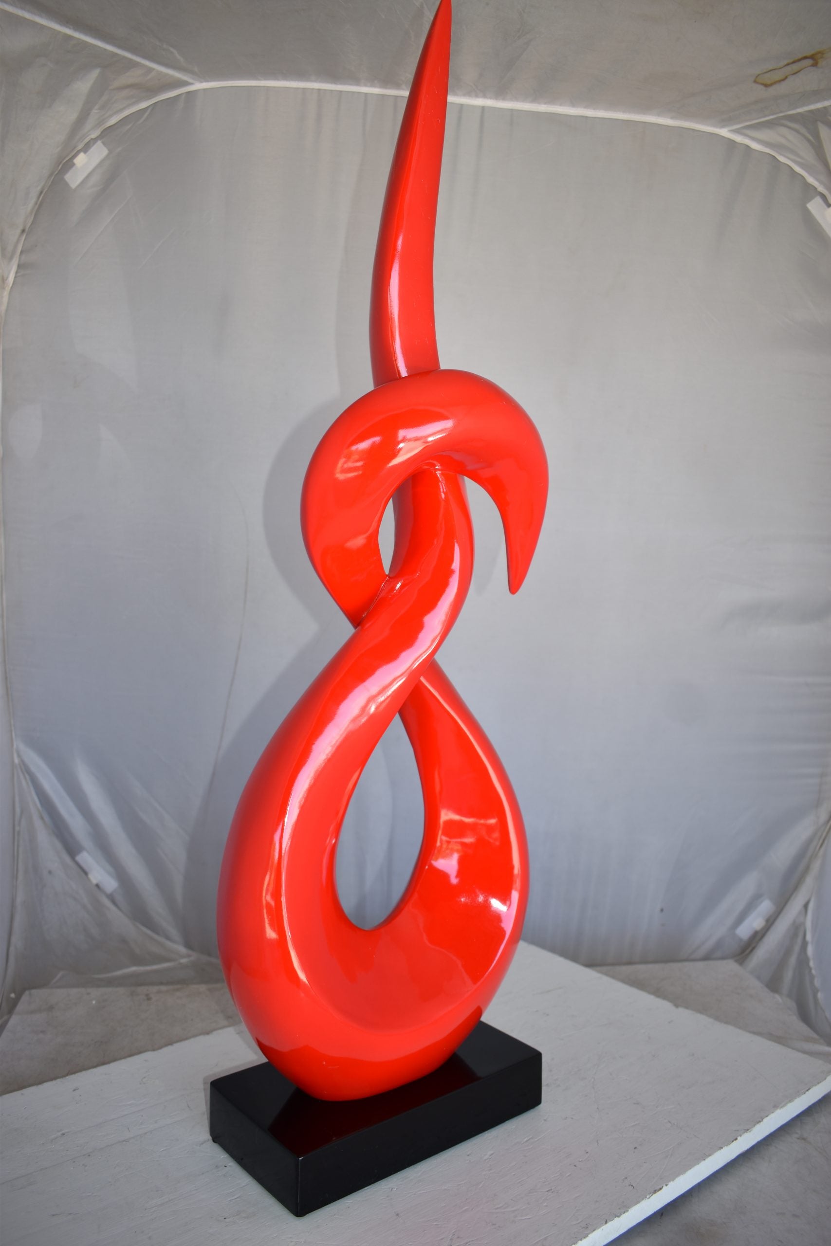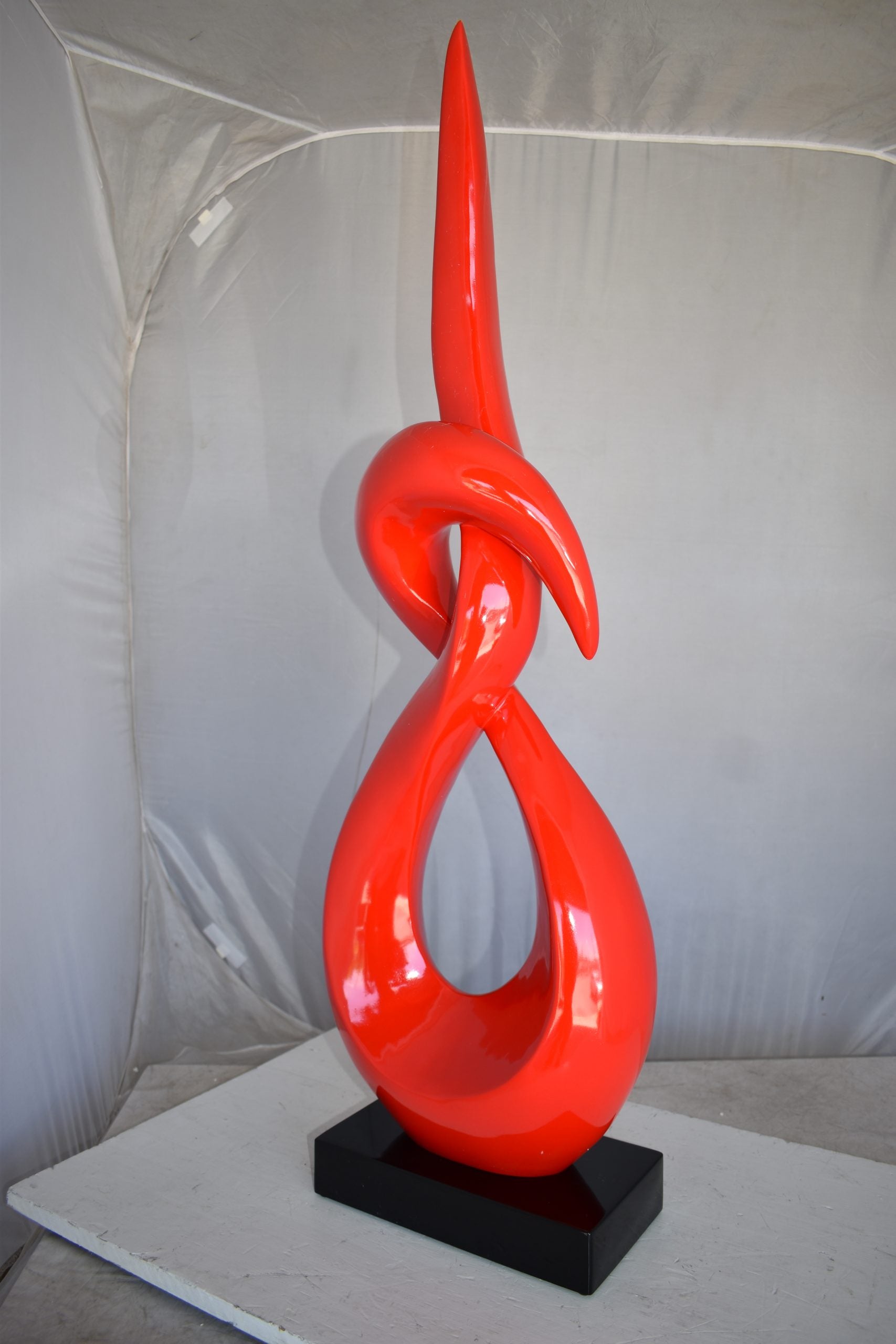 Modern Art Red Eternity Sculpture Made of Resin on A Base Size: 13" x 7" x 42"H