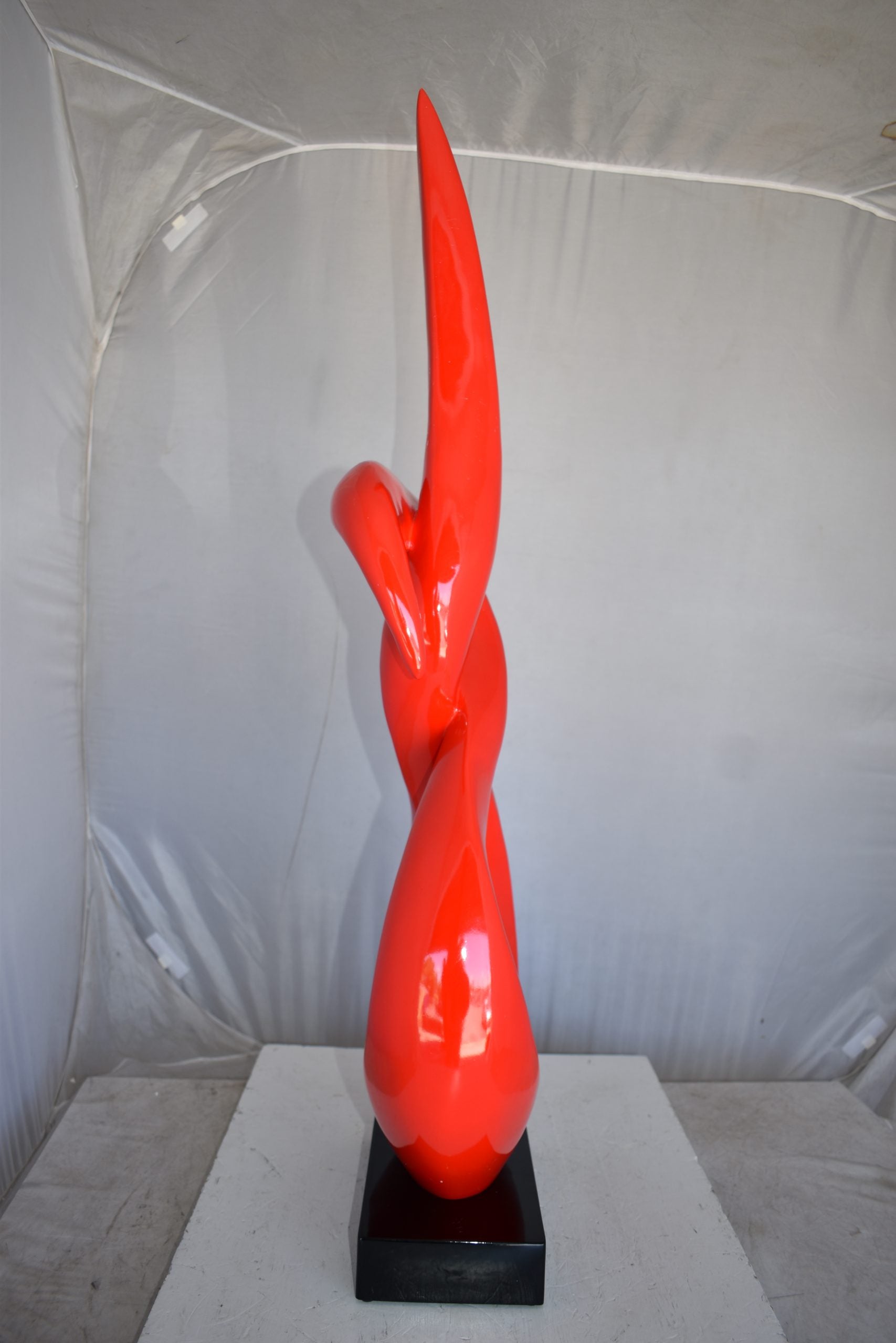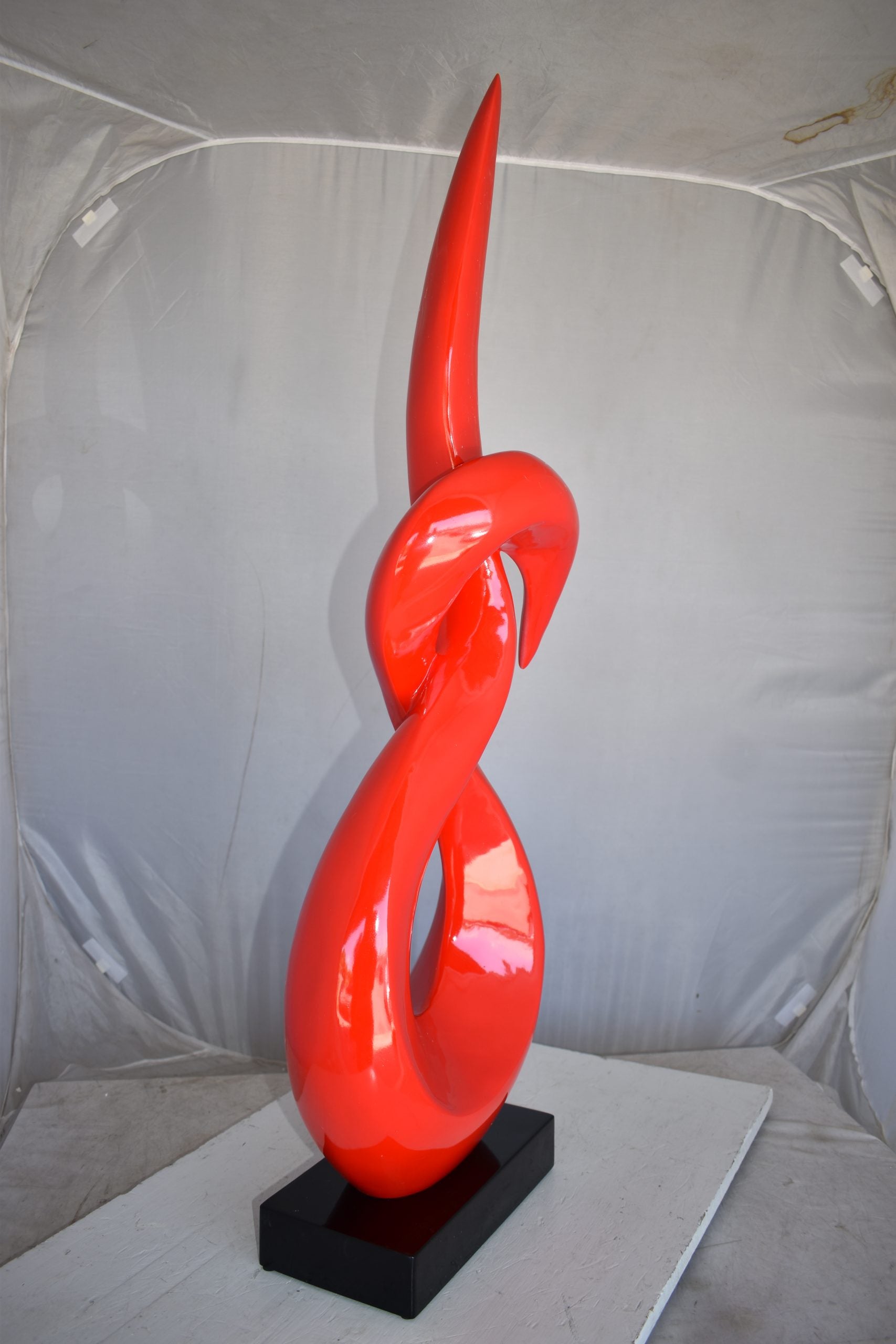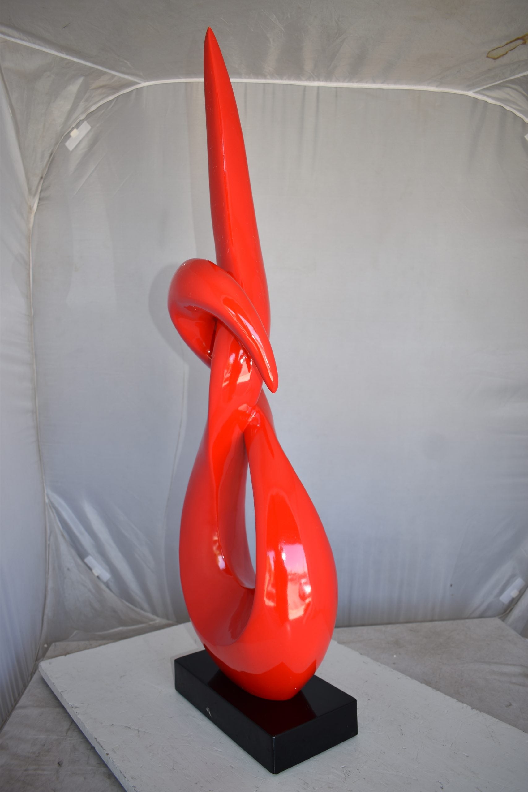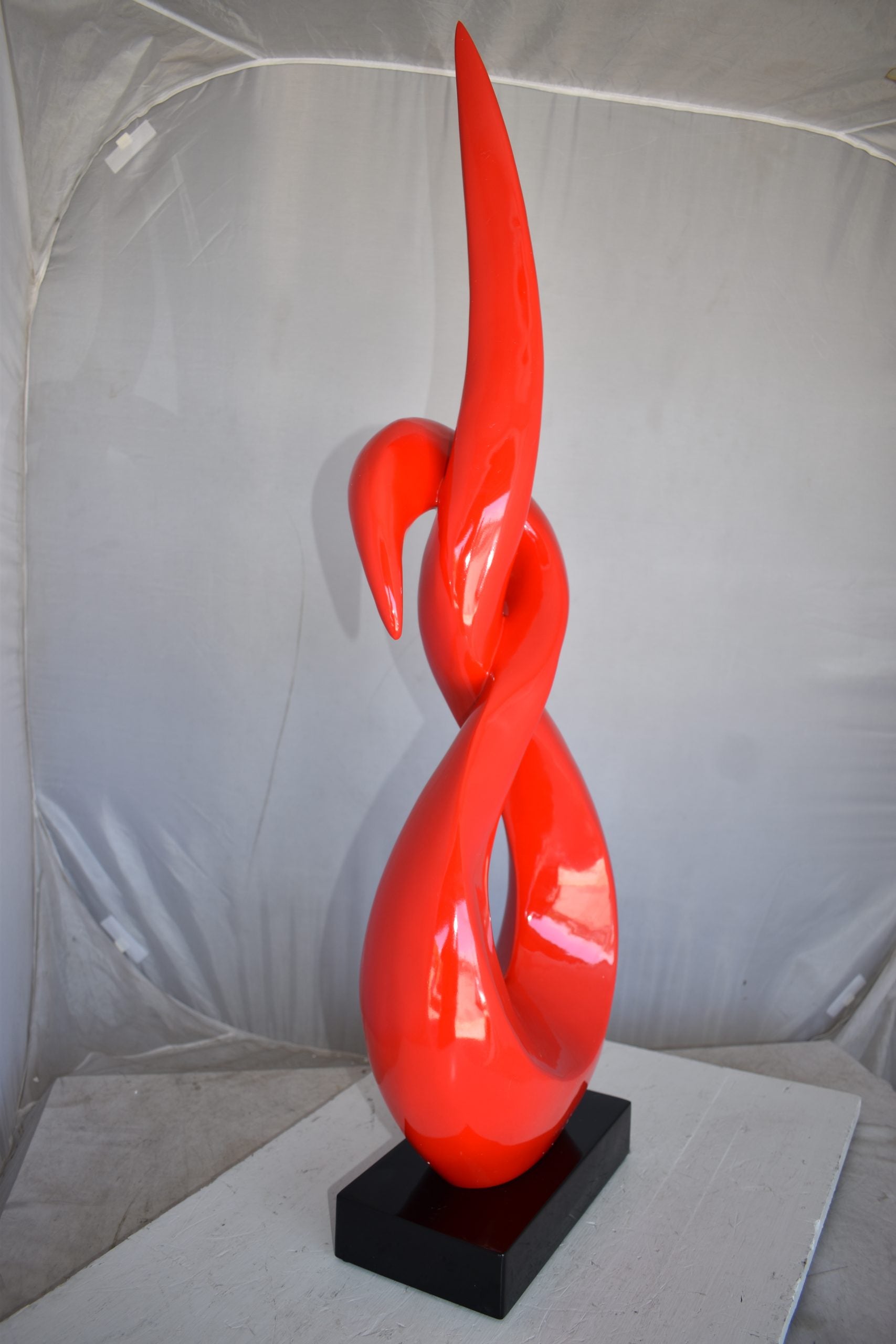 Modern Art Red Eternity Sculpture Made of Resin on A Base Size: 13" x 7" x 42"H