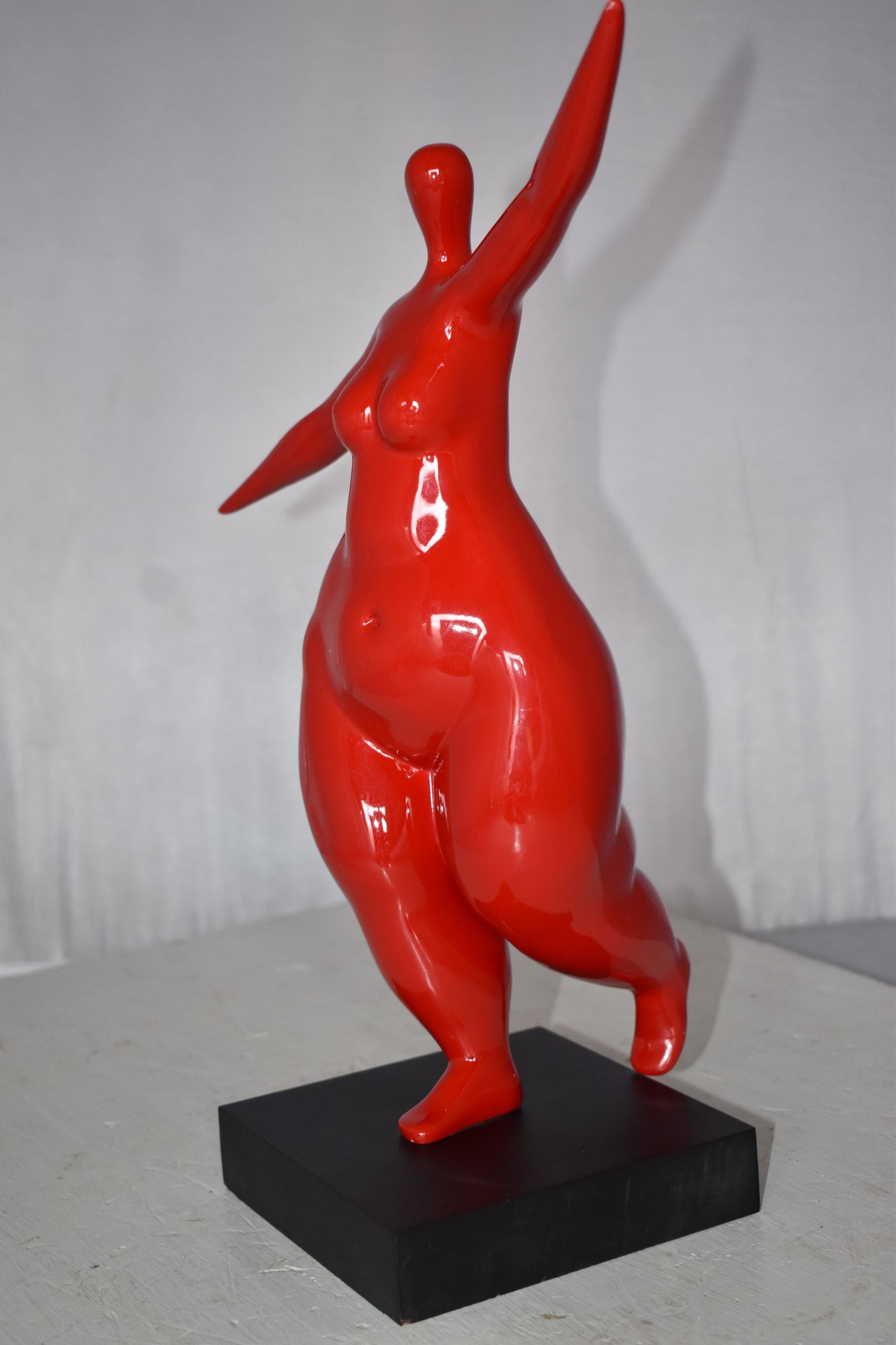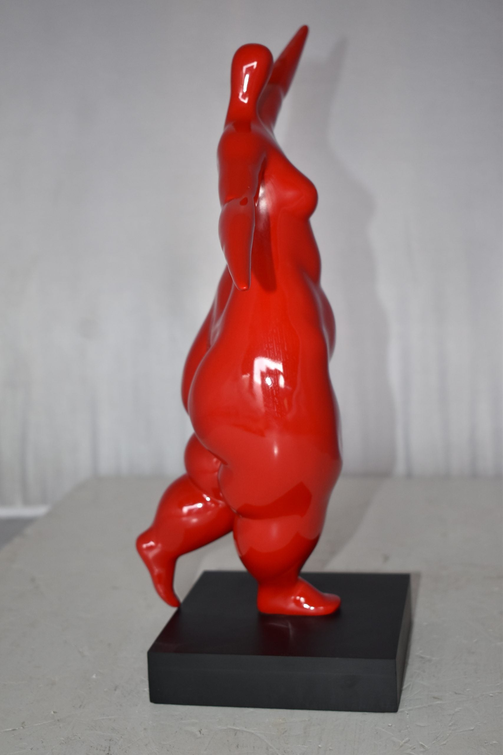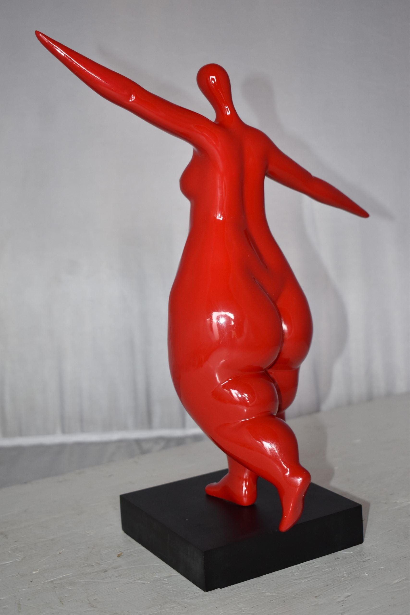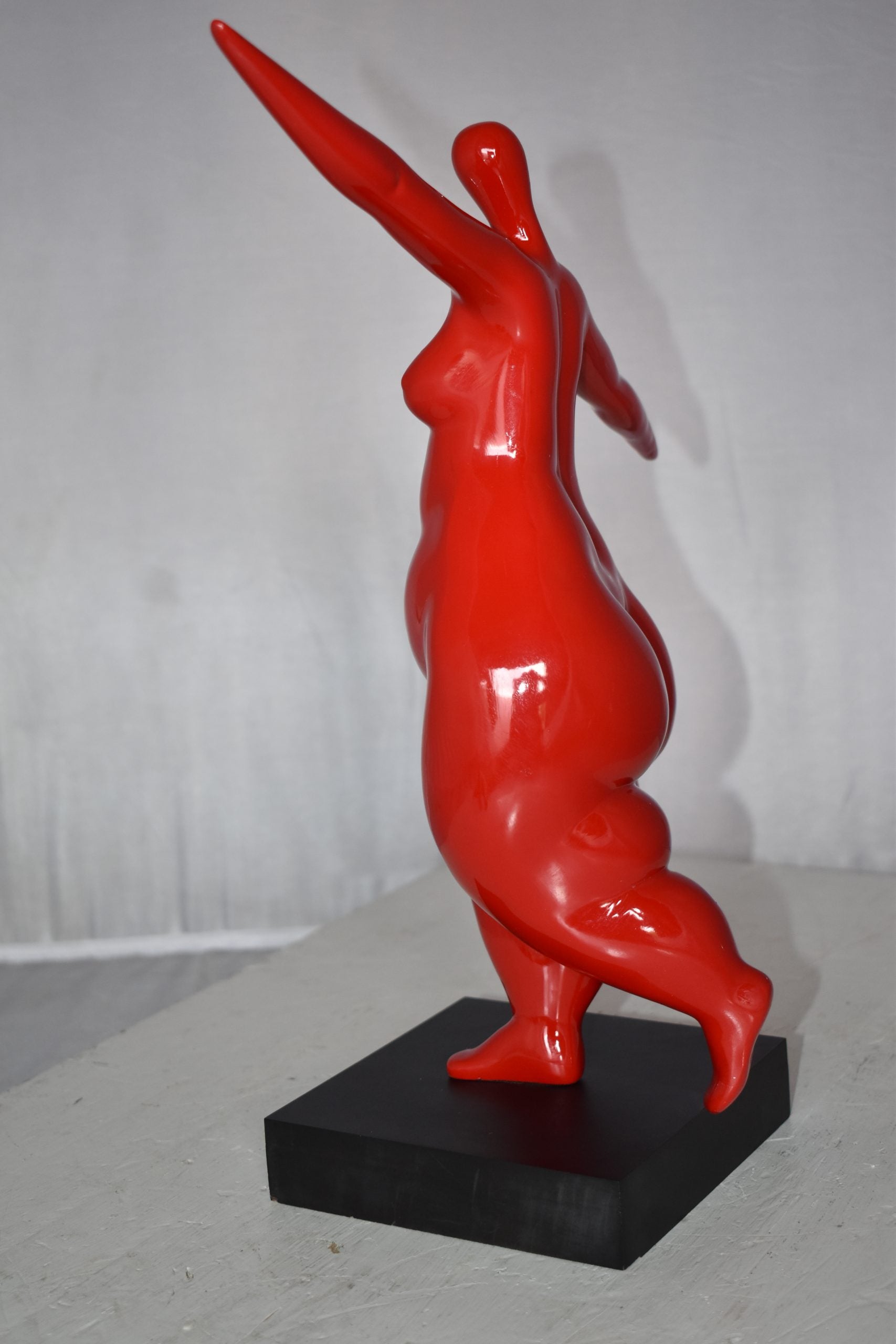 Modern Art Voluptuous Red Lady Hand Up Resin Statue Size: 14" x 5" x 16"H