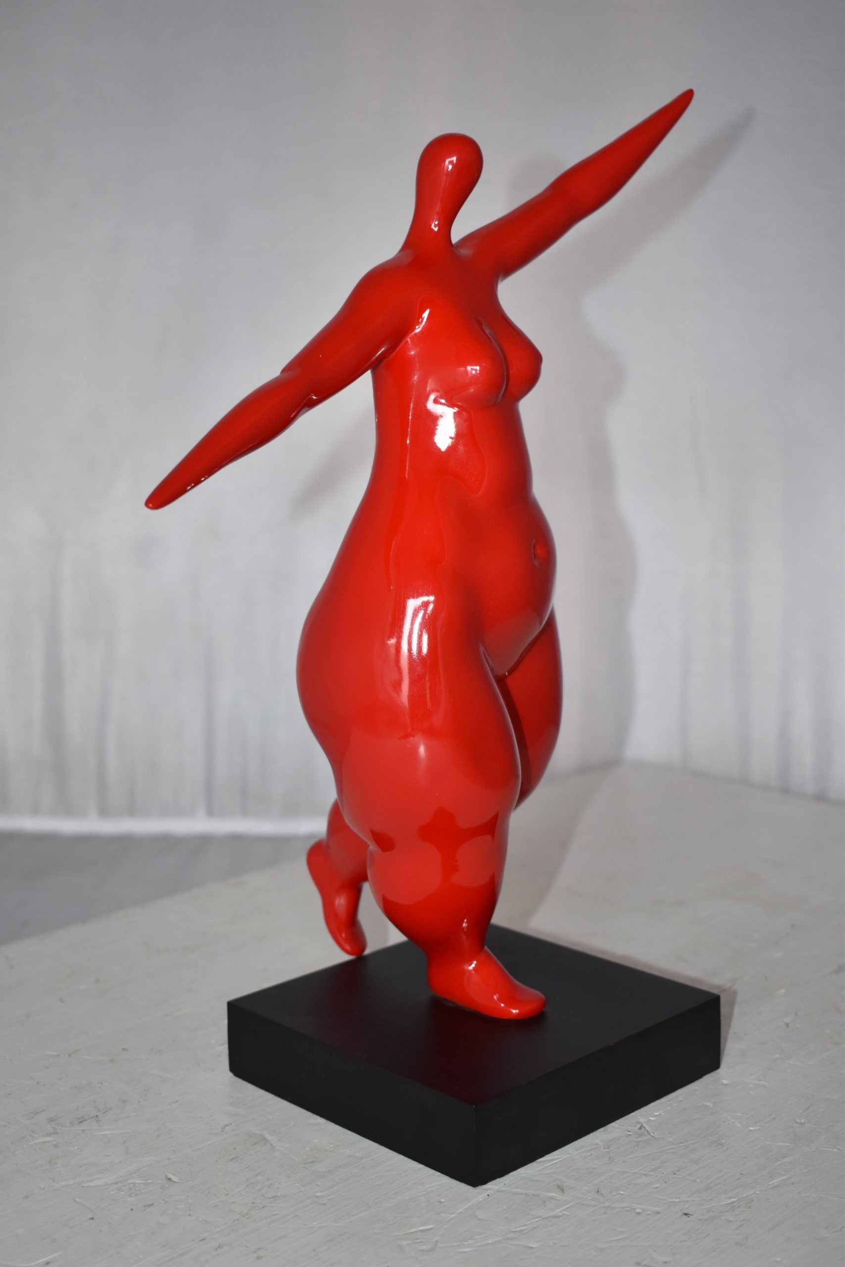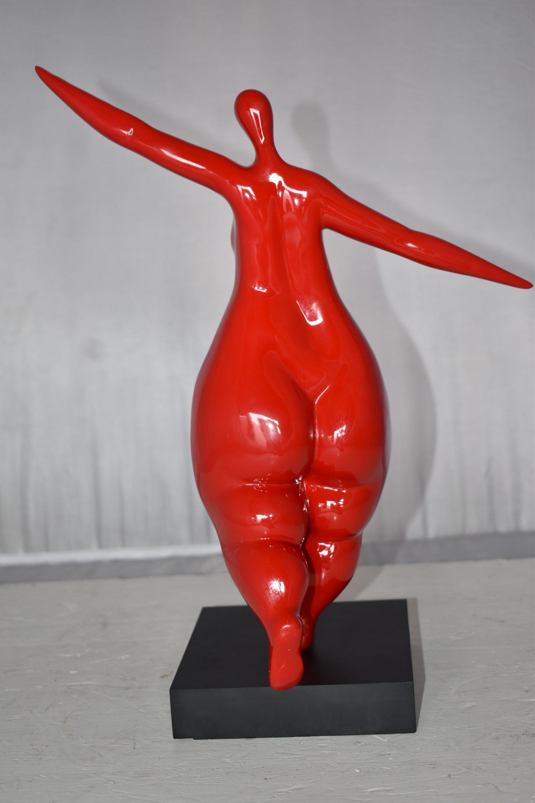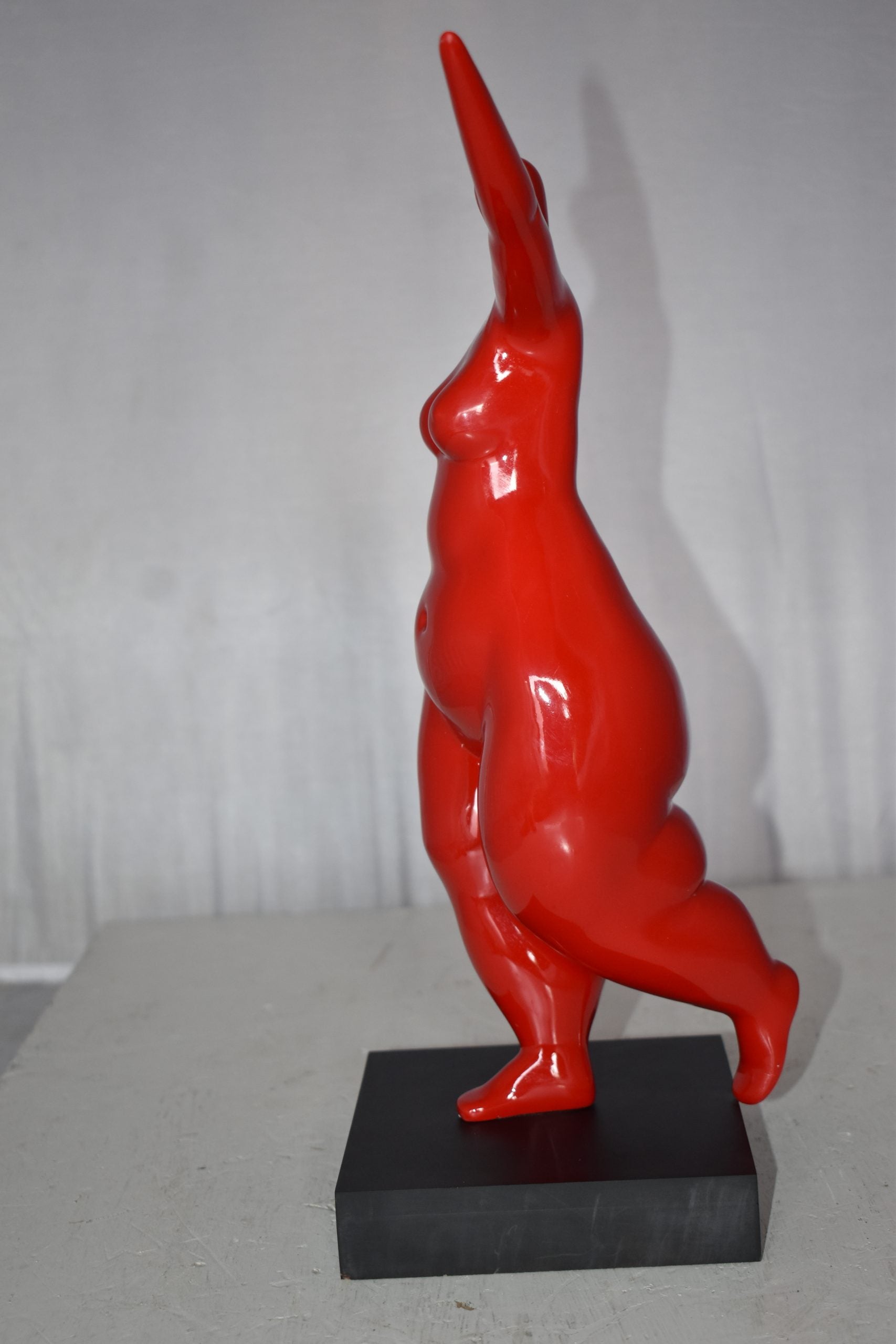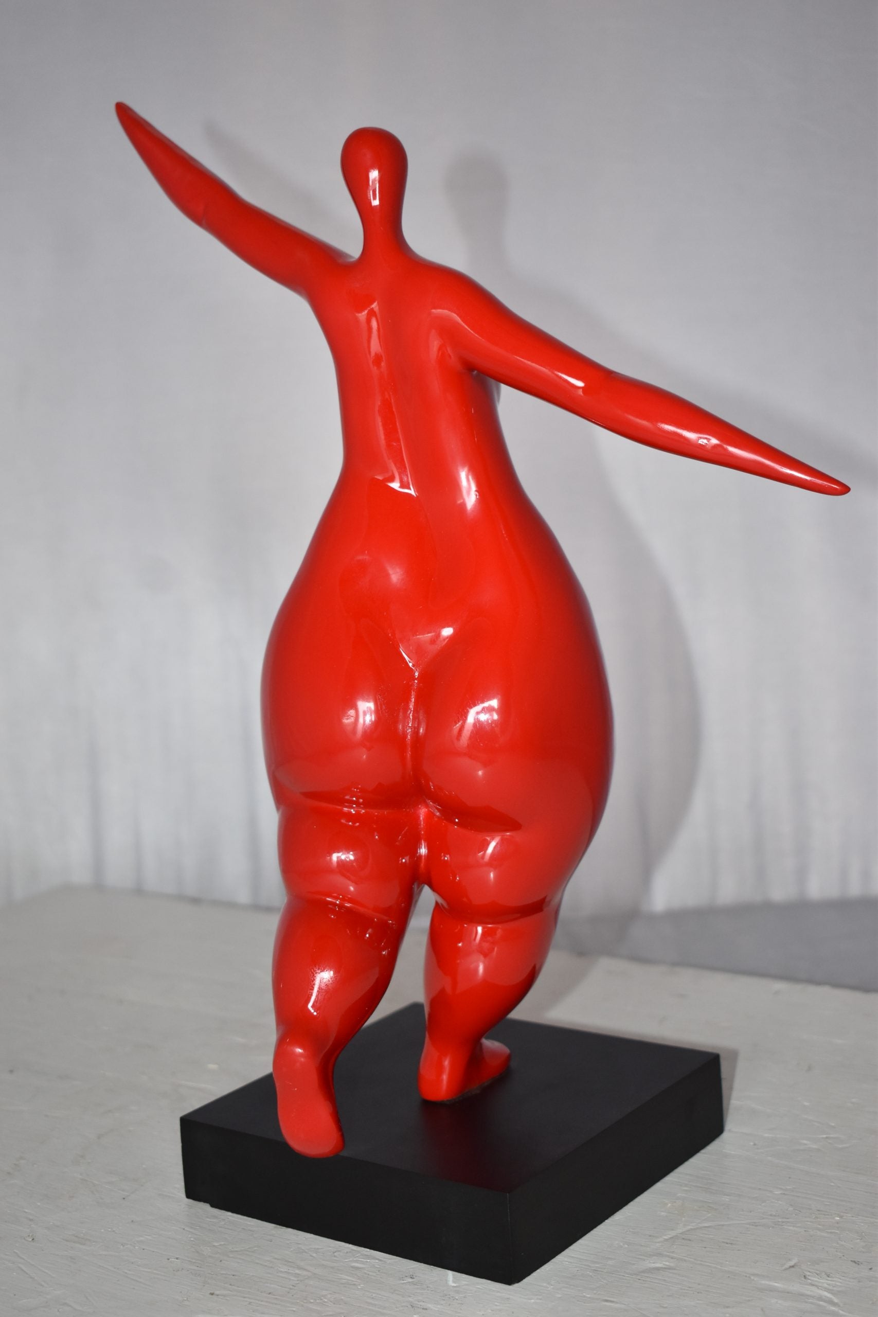 Modern Art Voluptuous Red Lady Hand Up Resin Statue Size: 14" x 5" x 16"H