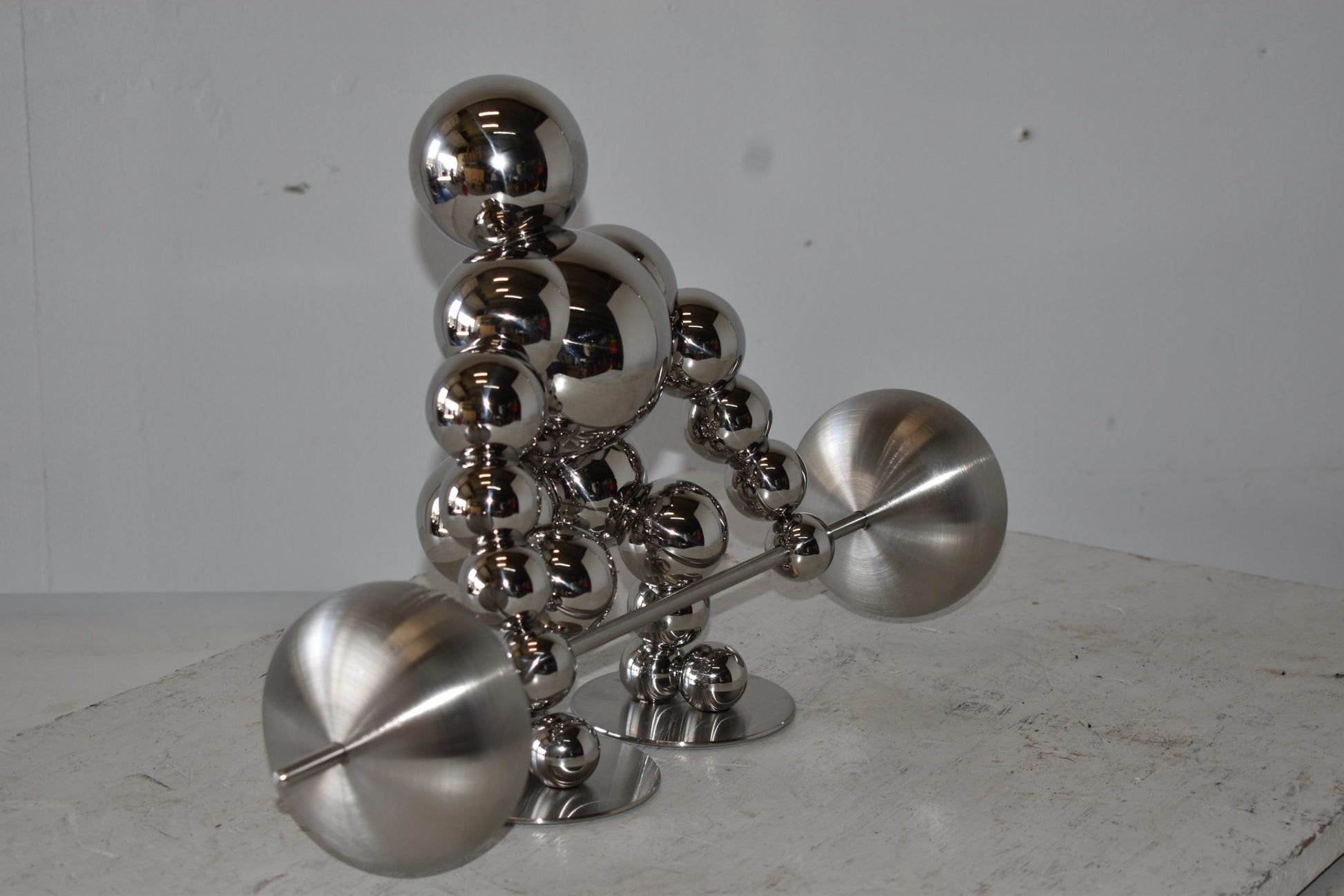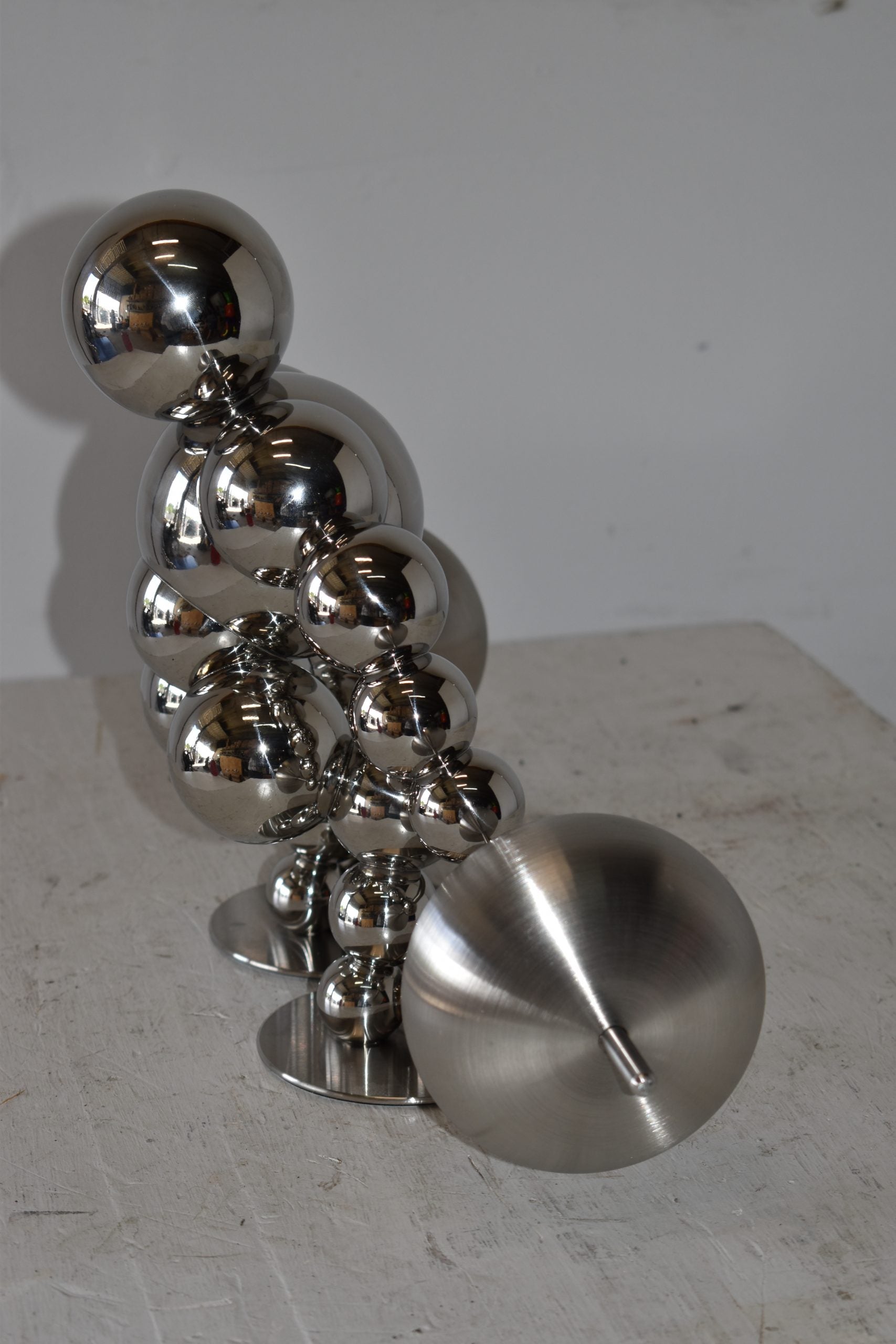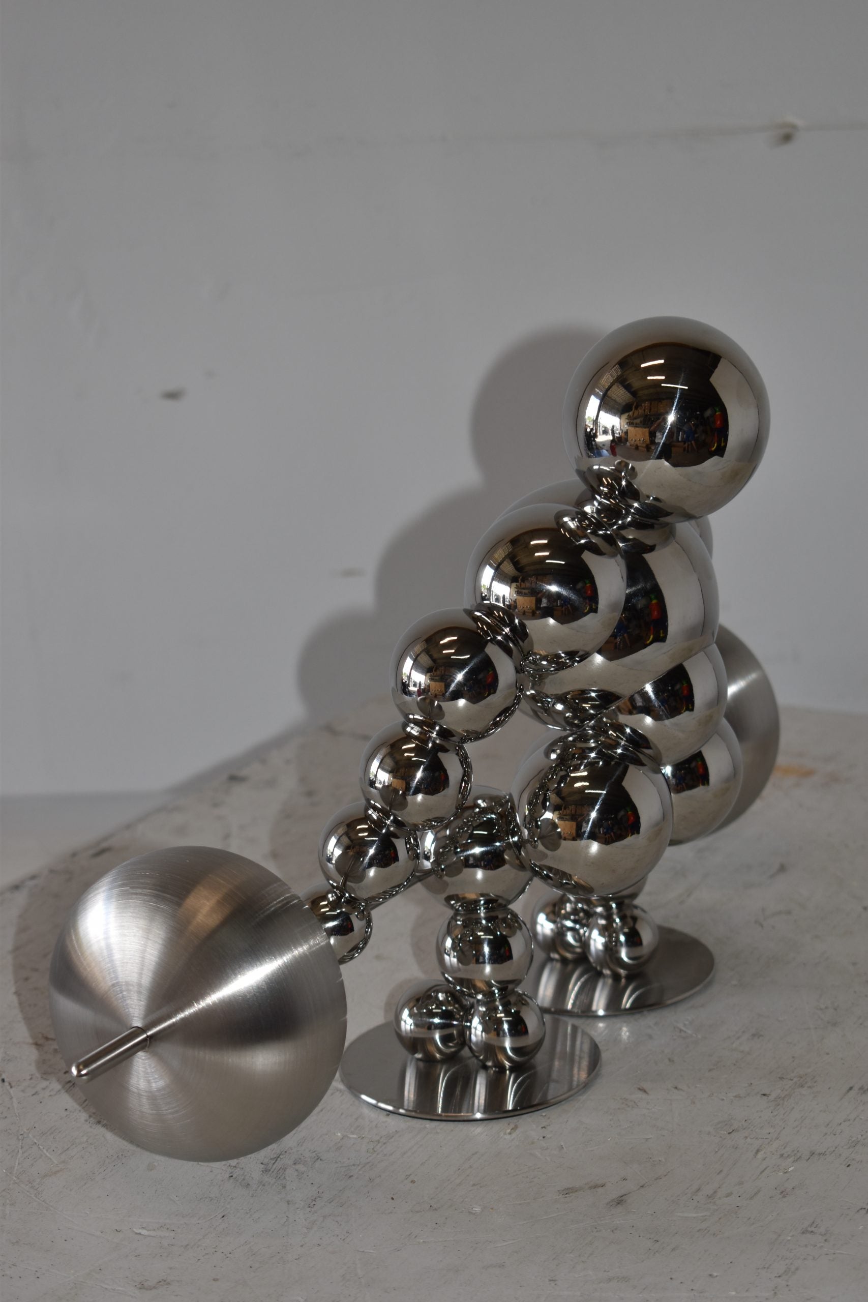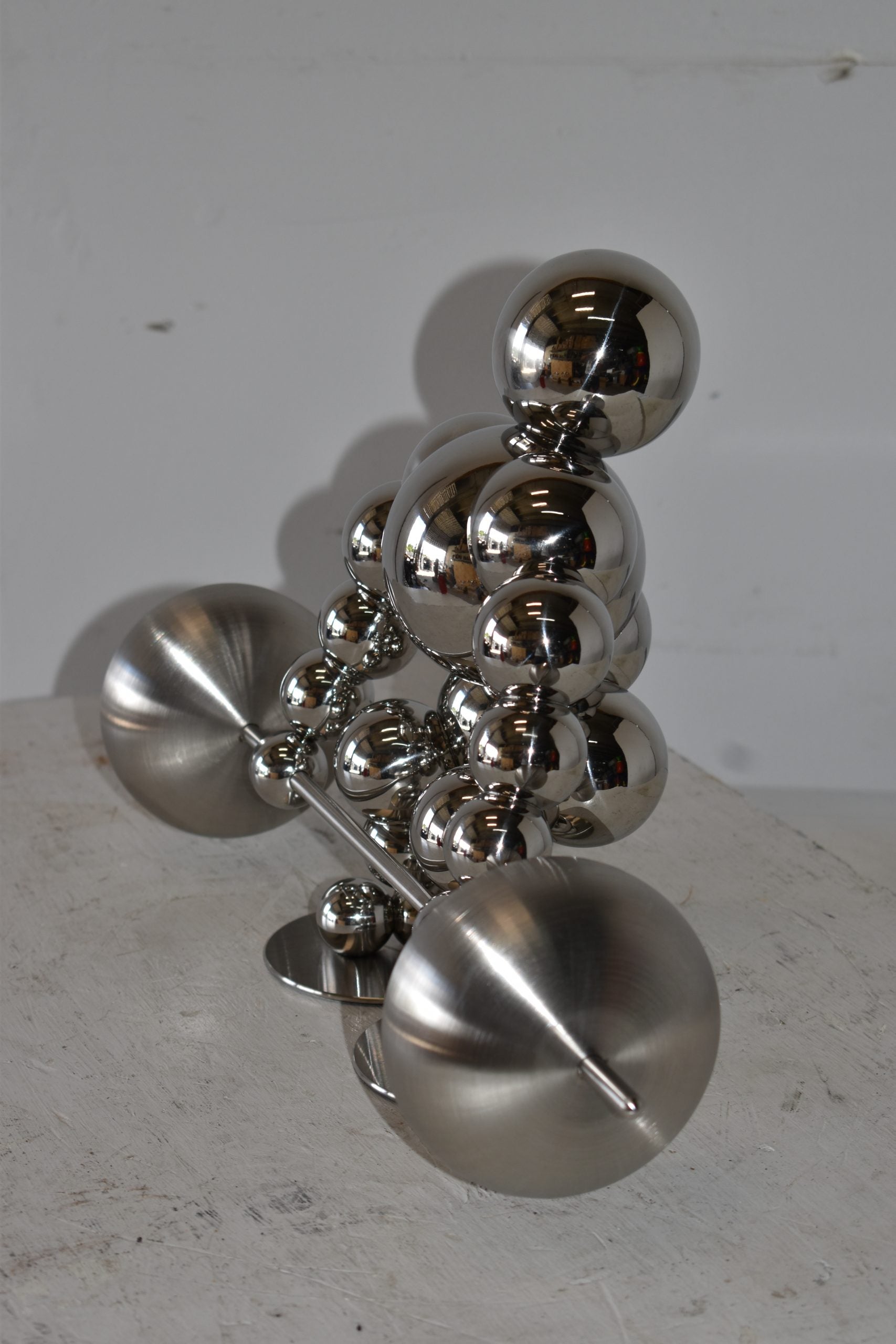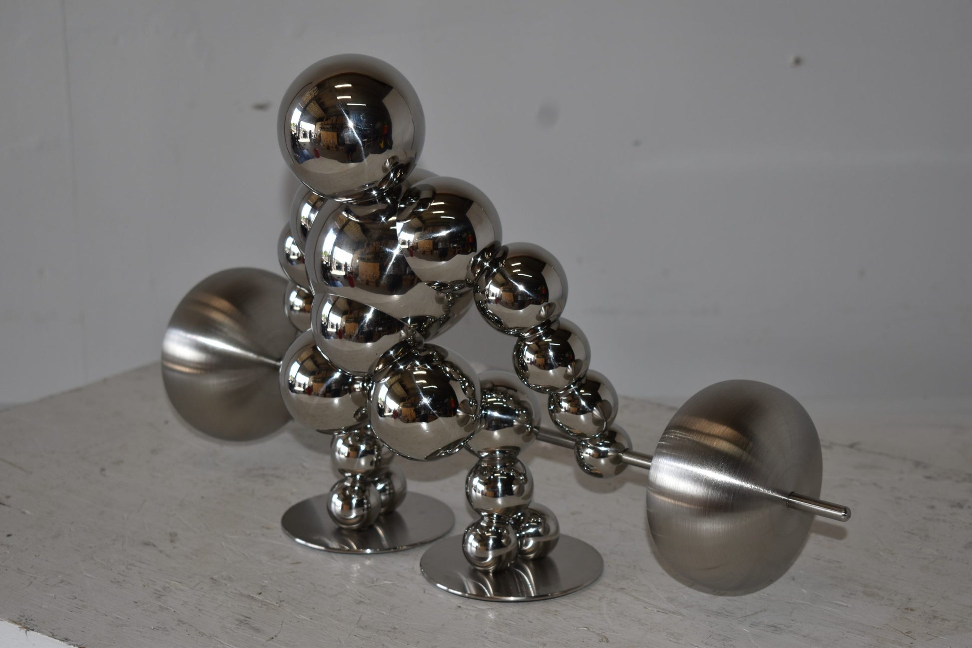 Decorate your home with this beautiful, tabletop, modern looking, stainless-steel abstract of a weightlifter. These decorative abstracts made of Stainless-steel balls will become an extraordinary focal point to any kitchen, Livingroom, or patio! We sell a whole line of this style of modern art. You can be sure they will be a conversation starter and the topic of much appraised comments in your home. Size: 20"L x 8"W x 11"H. Weight is: 4Lb