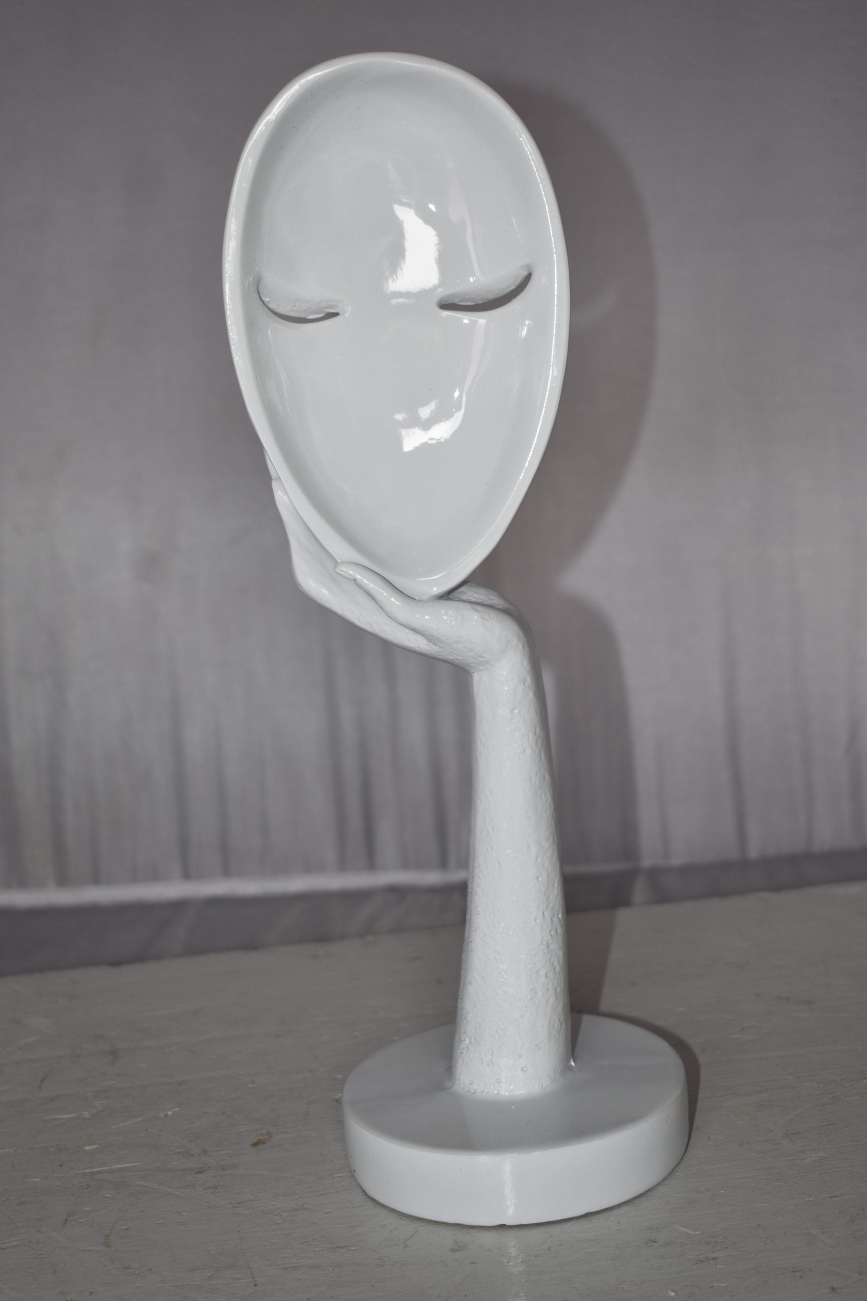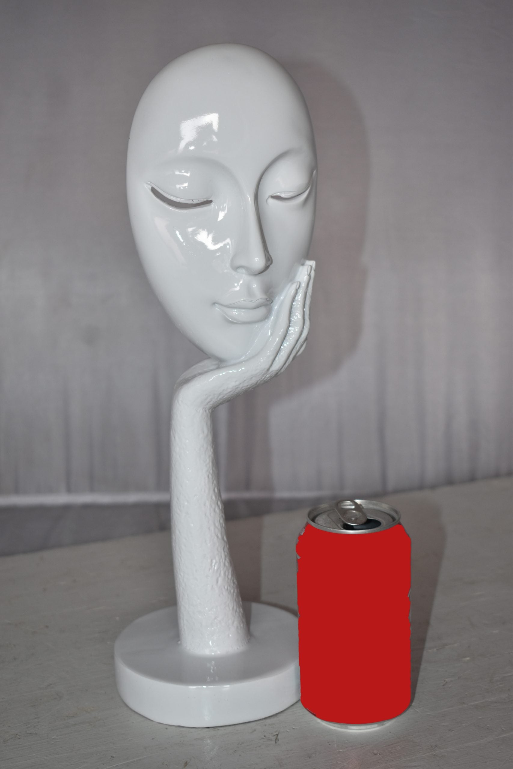 Enjoy this Modern Art White Thinking Head Statue Made of Resin. This modern abstract would be a great addition to your home. Resin casting is a method of plastic casting where a mold is filled with a liquid synthetic resin, which then hardens. Get one for yourself or surprise a friend with an unforgettable gift! Size: 6"L x 4"W x 16"H. Weight is: 3Lb