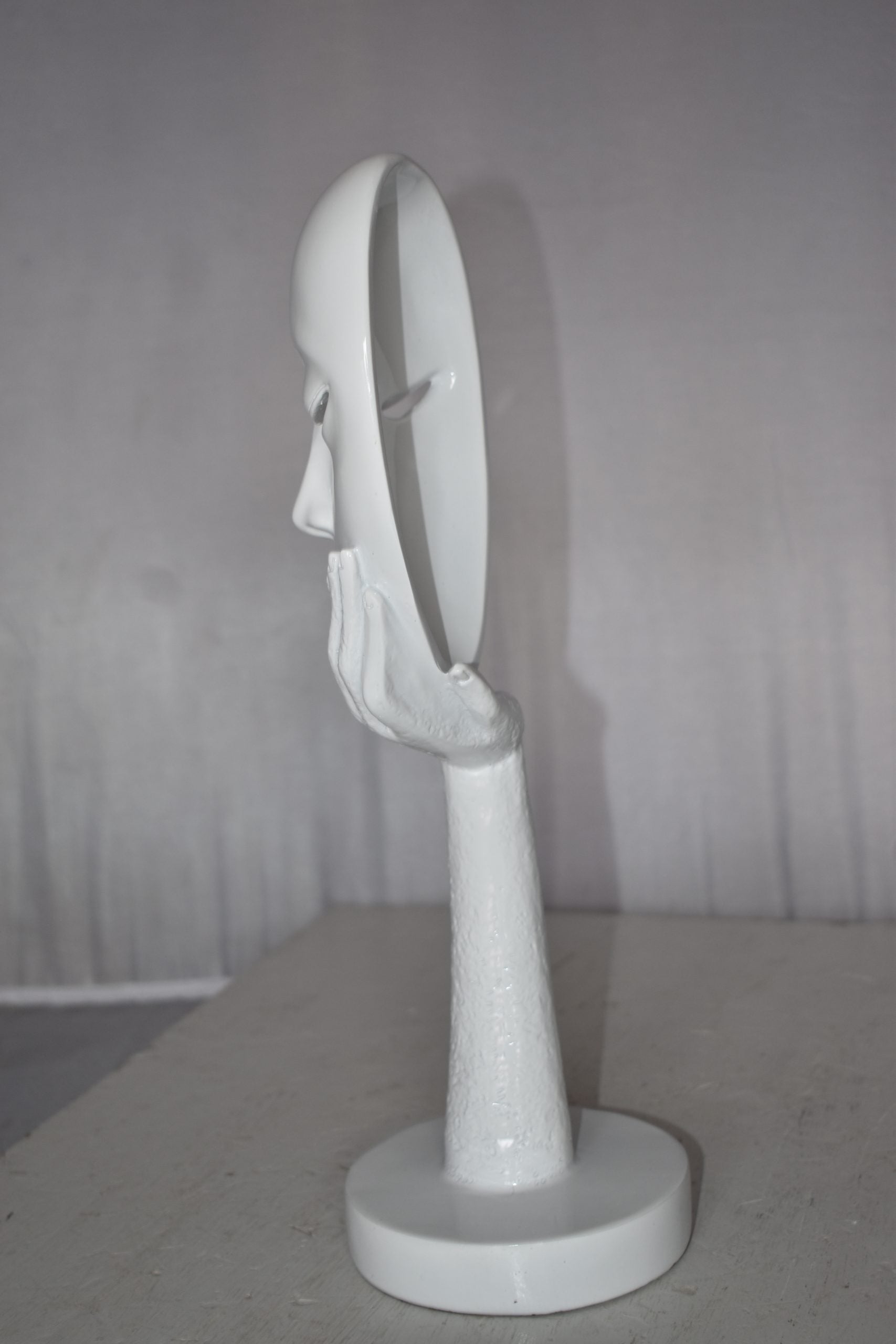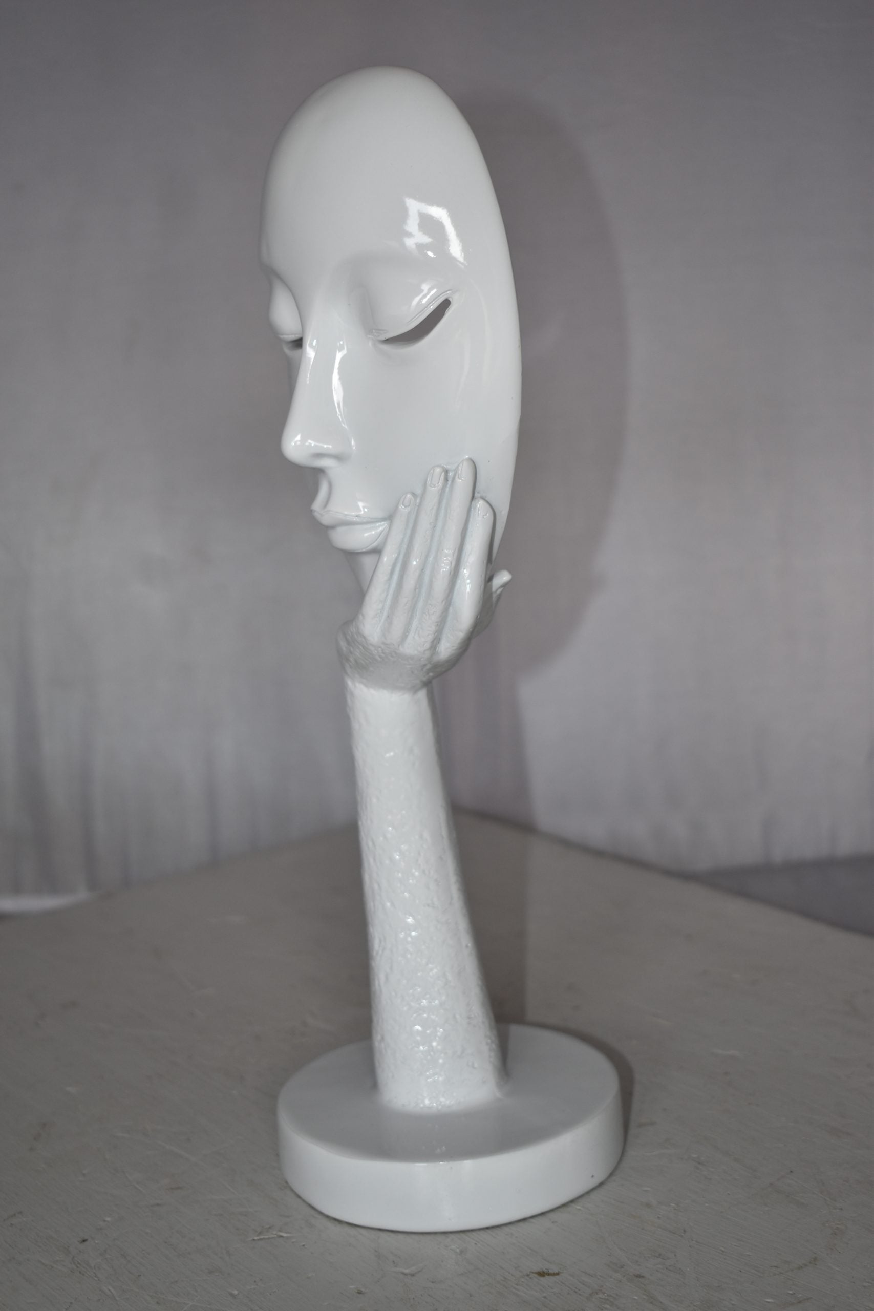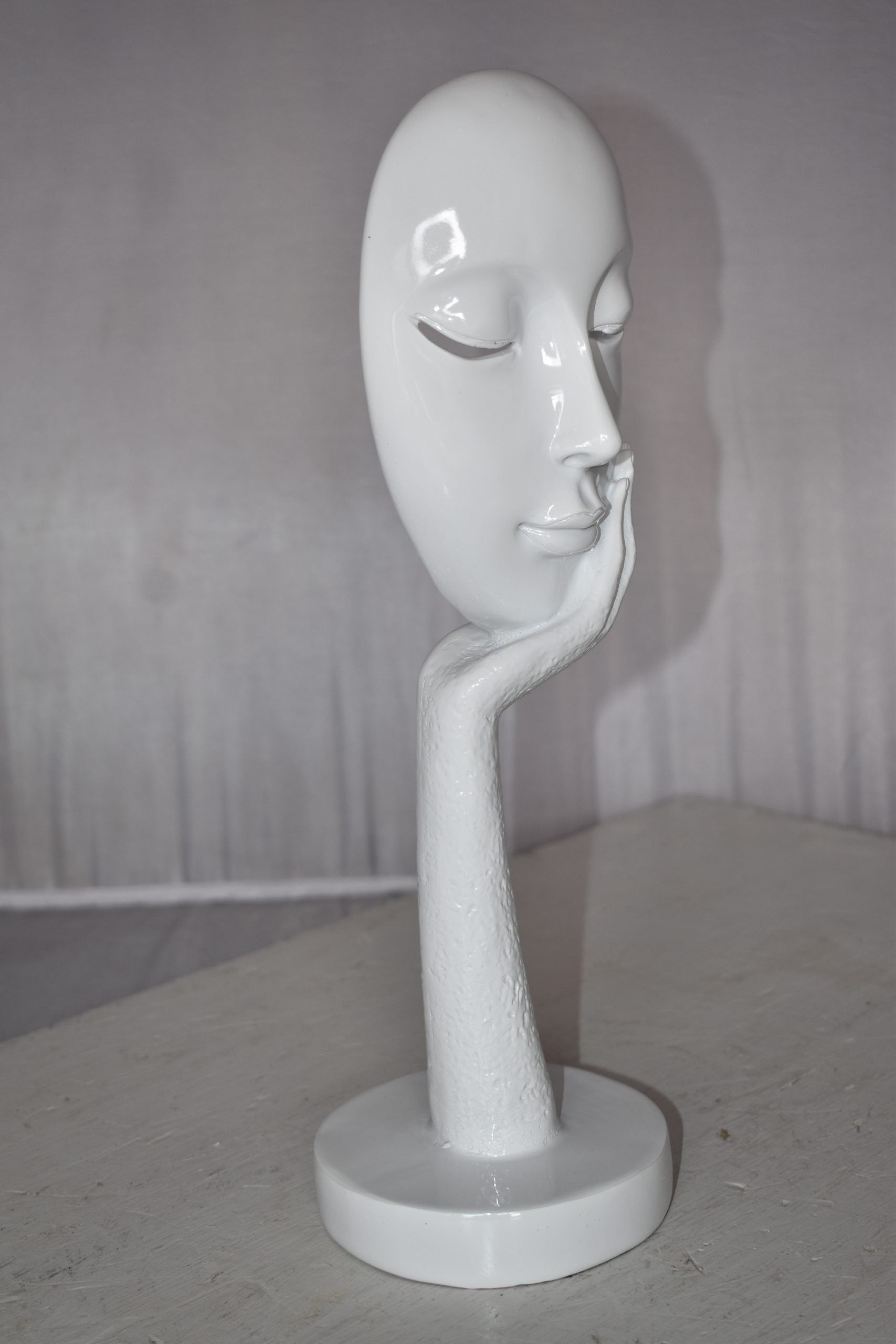 Modern Art White Thinking Head Statue Made of Resin Size: 6" x 4" x 16"H