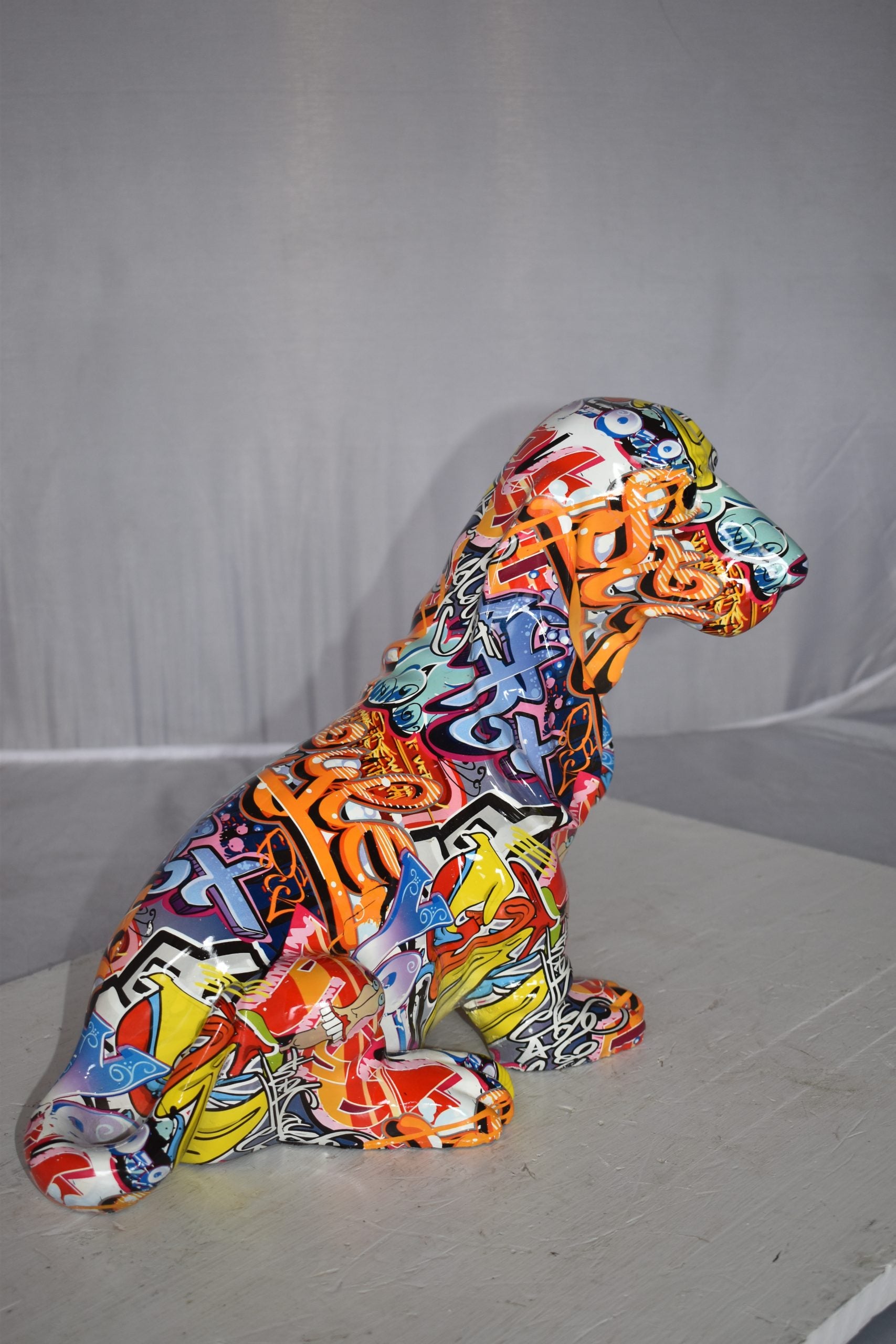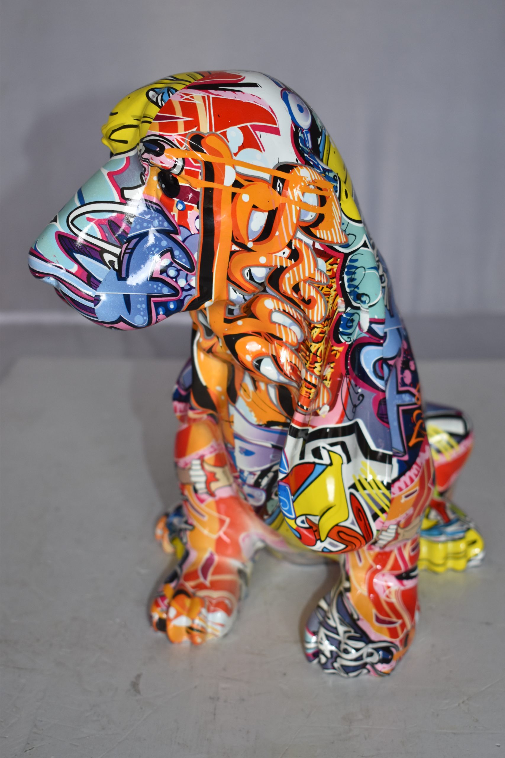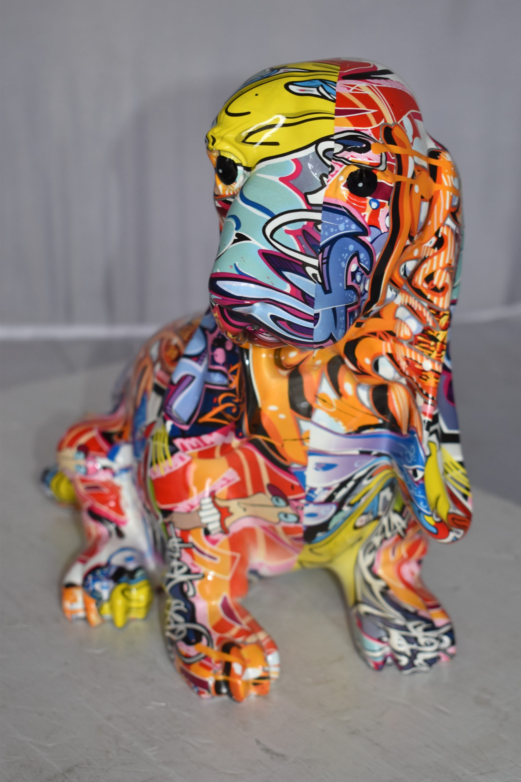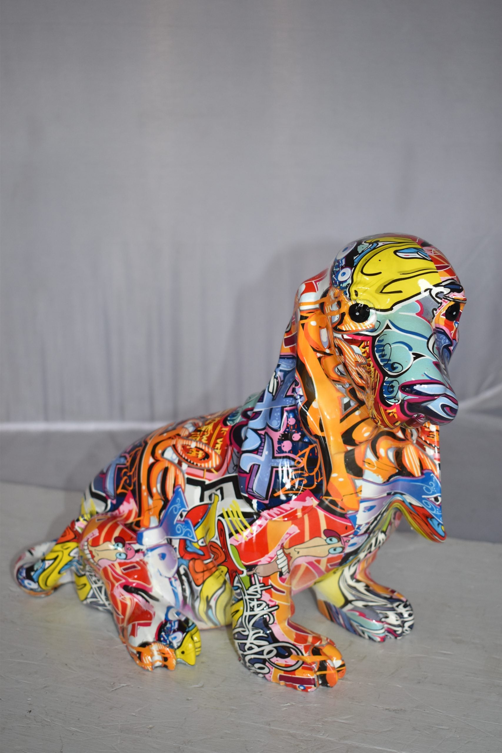 Modern Graffiti Basset Hound Dog Statue Made of Resin Size: 16" x 8" x 13"H