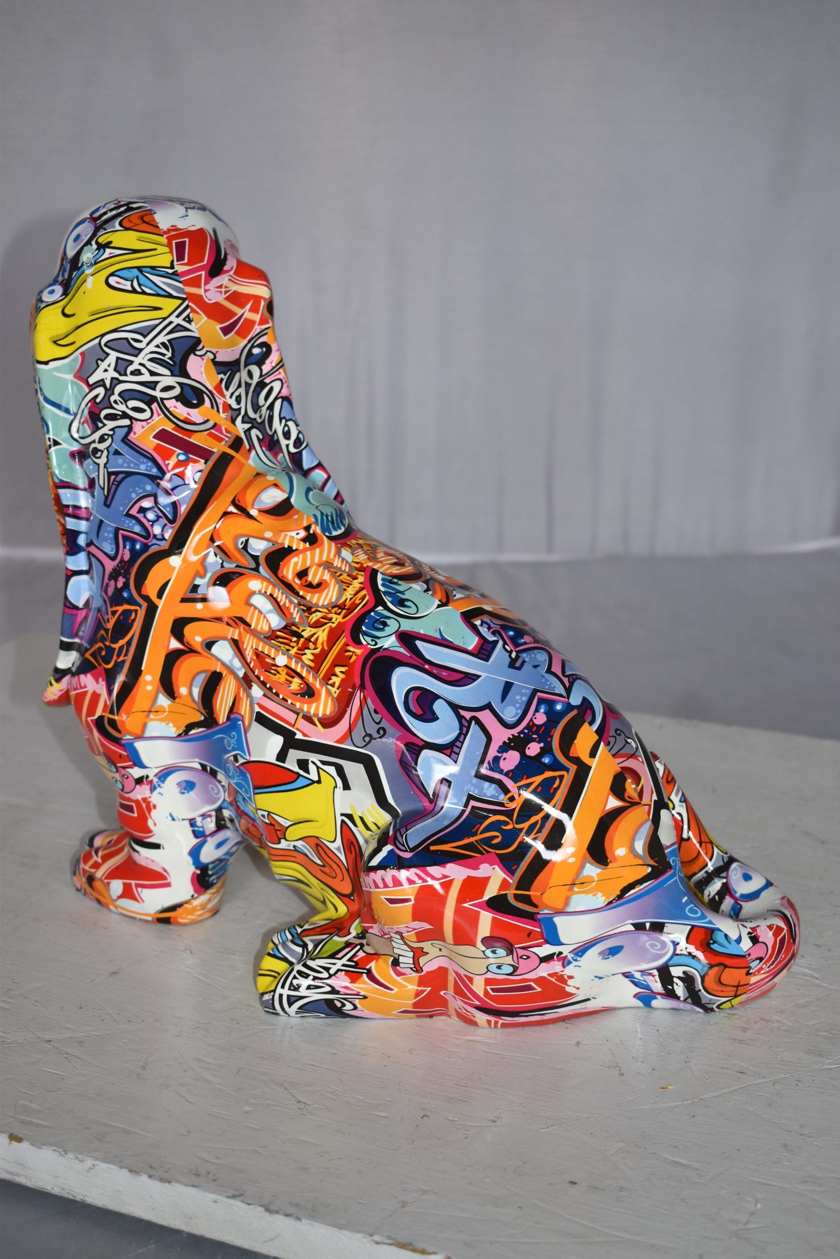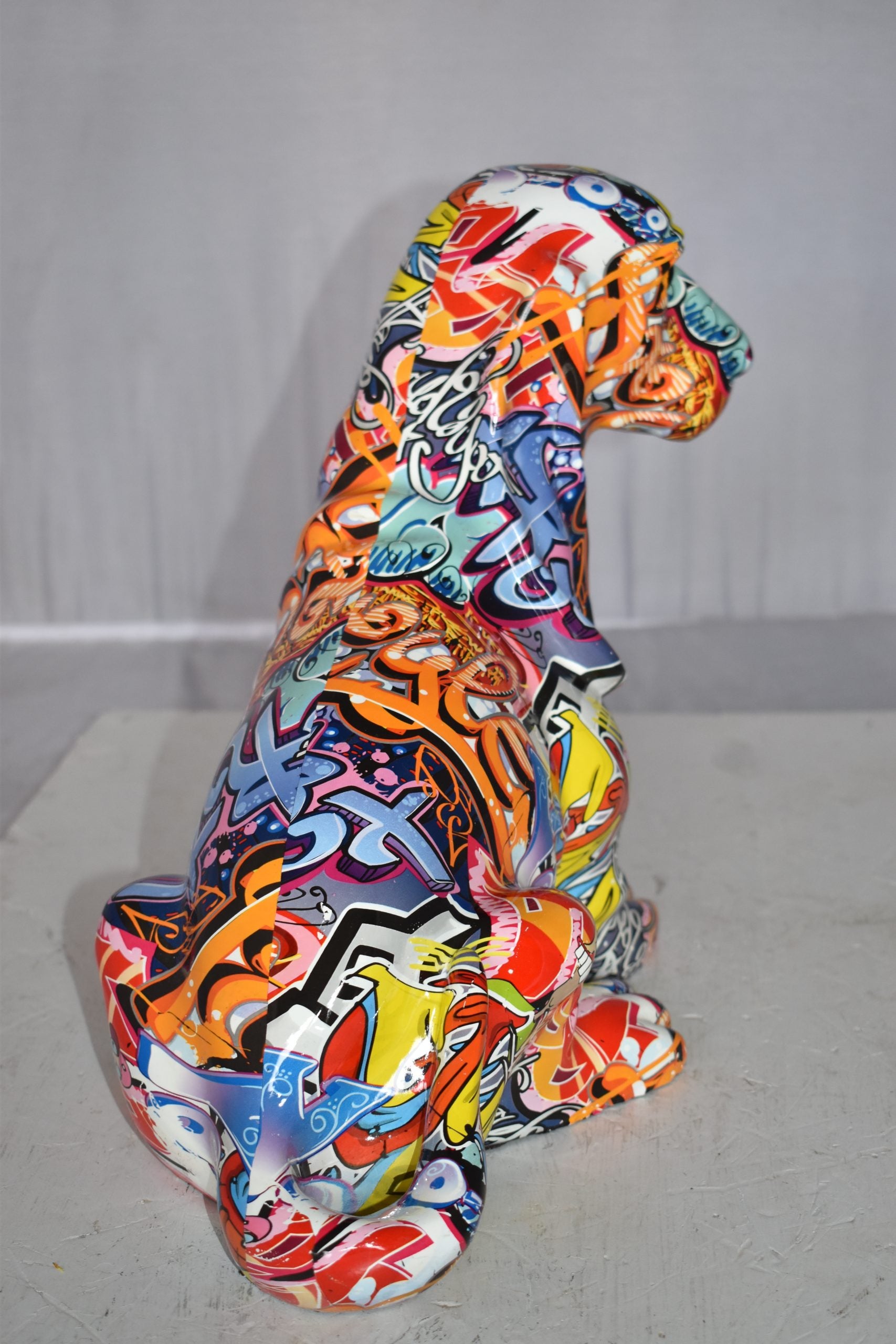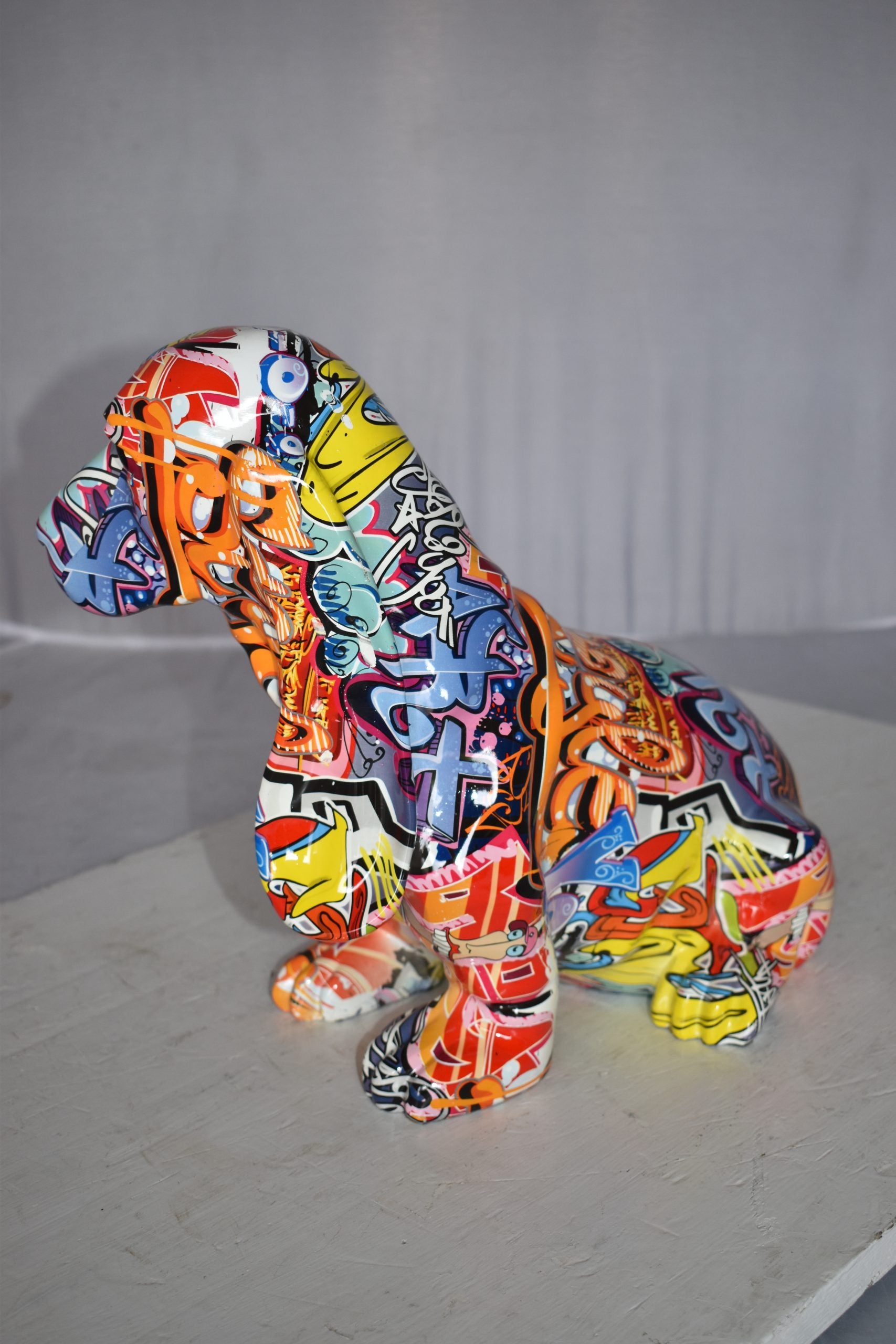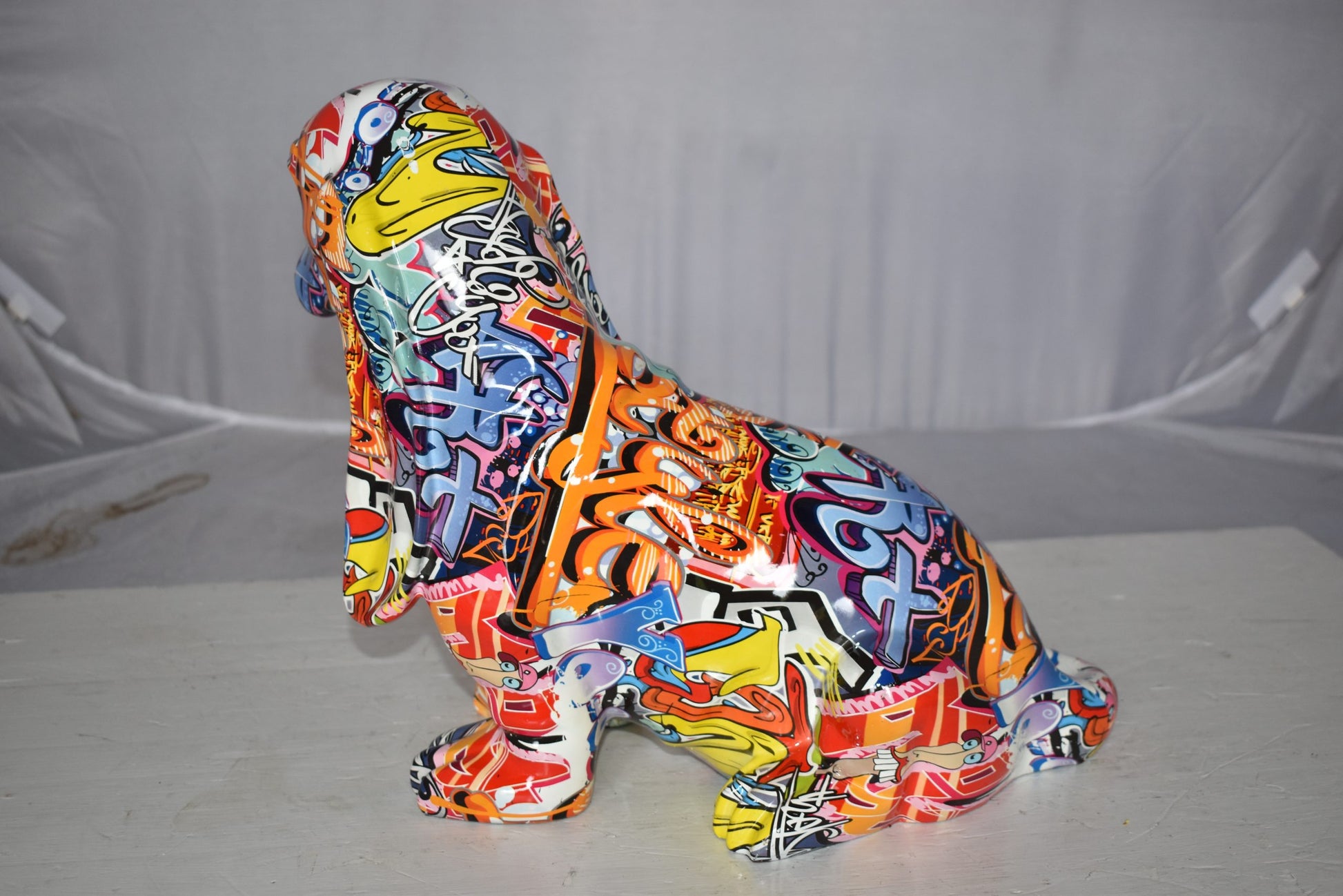 Modern Graffiti Basset Hound Dog Statue Made of Resin Size: 16" x 8" x 13"H
