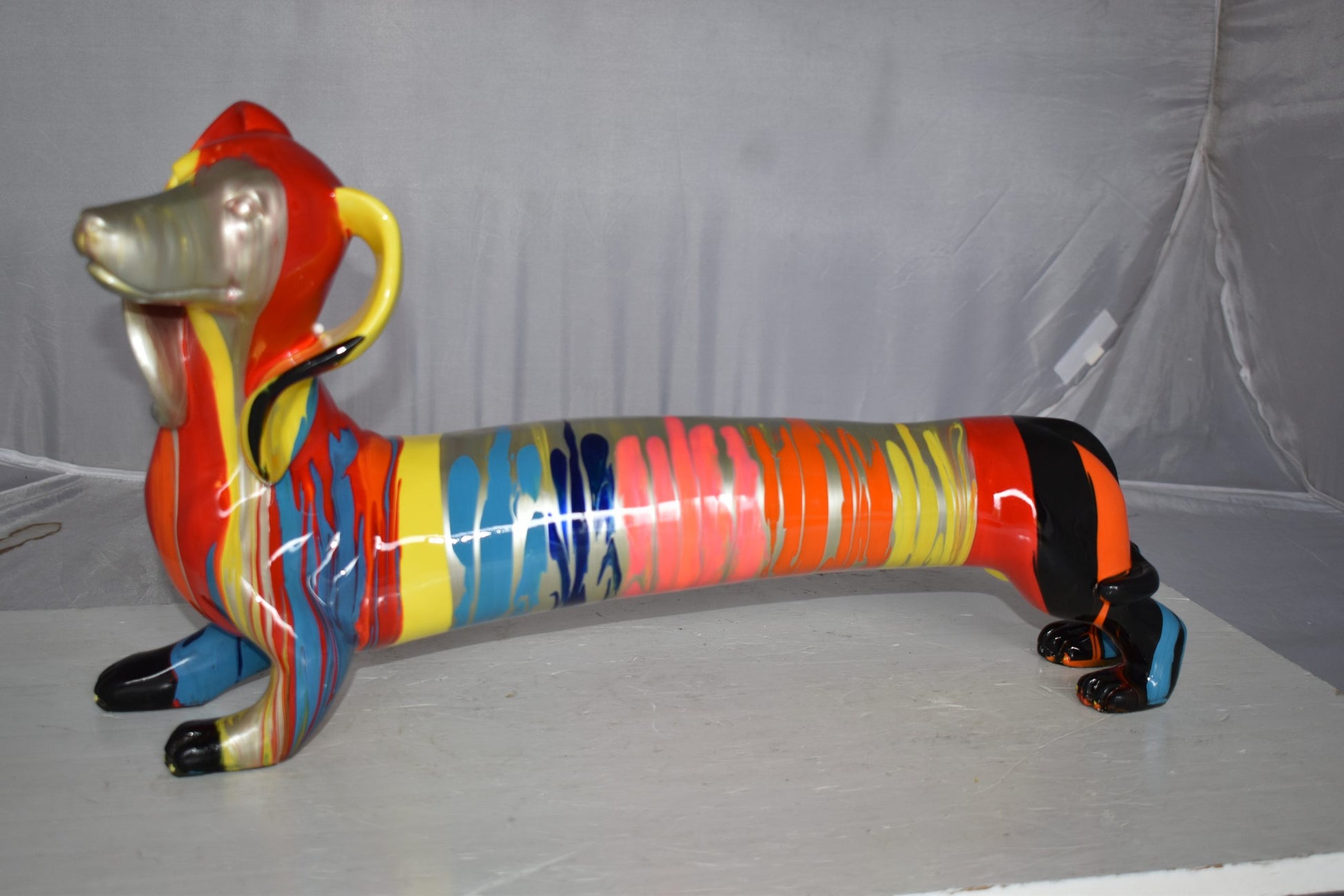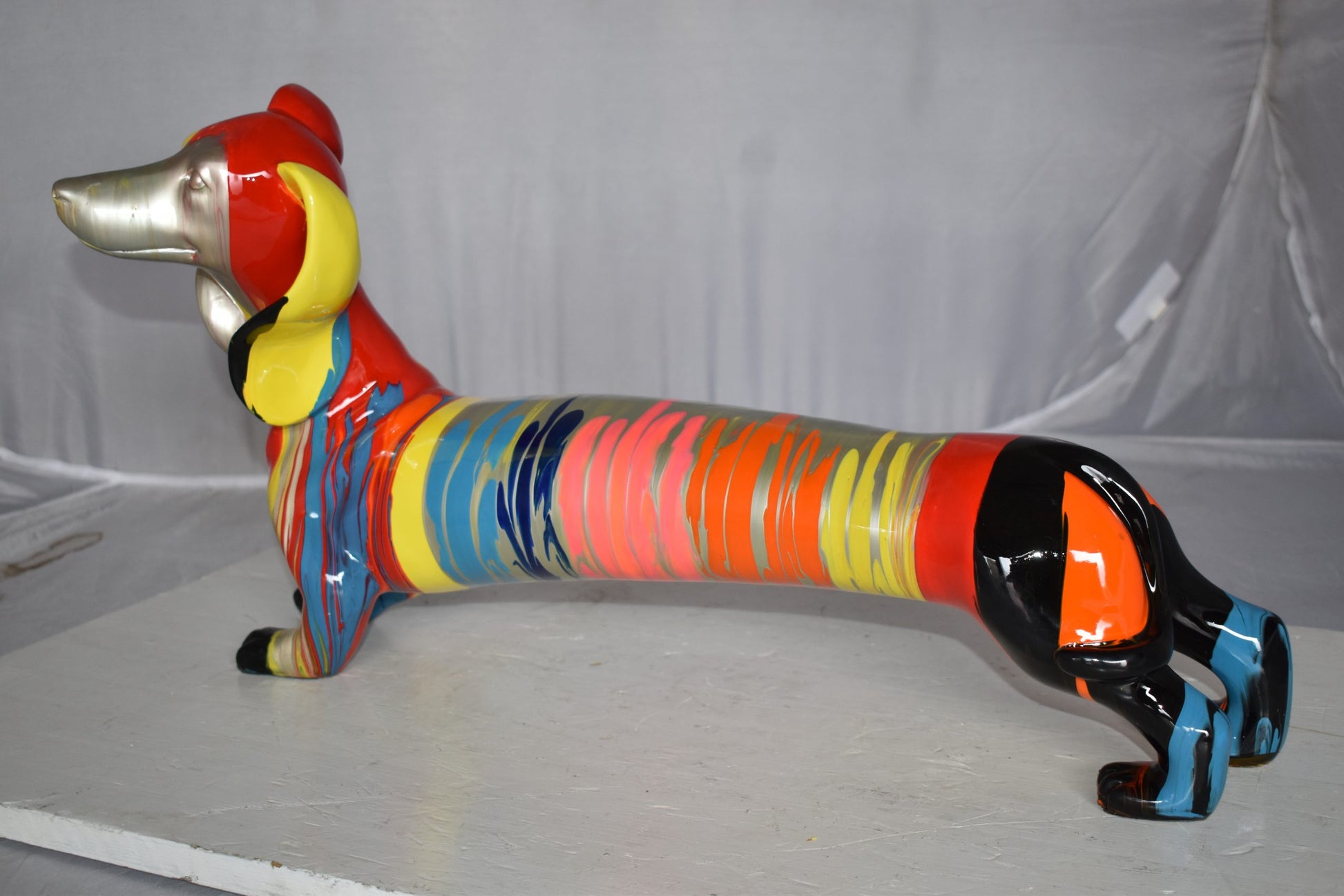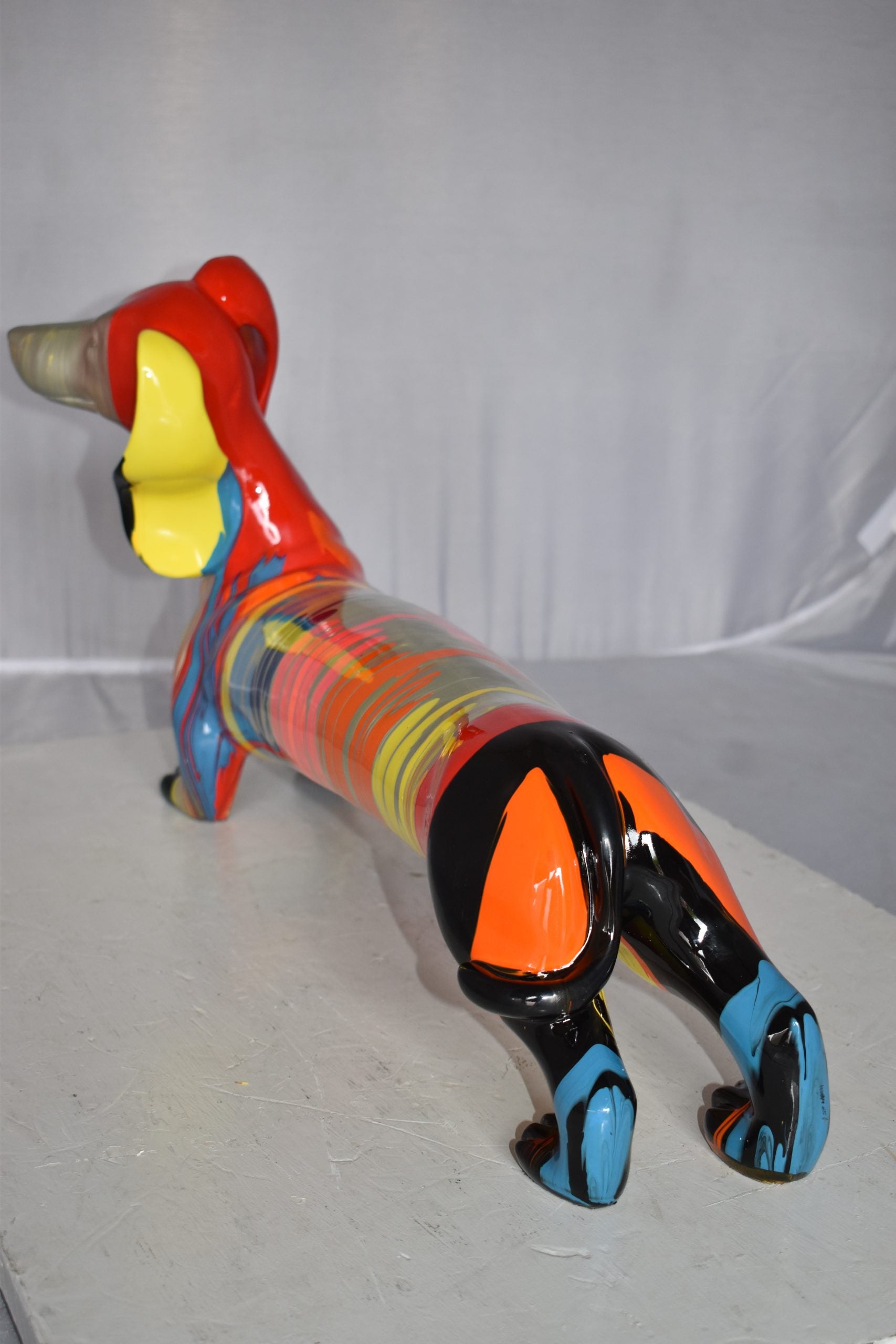 Modern Graffiti Looking Weenie Dachshund Dog Statue from Resin 25" x 10" x 15"H