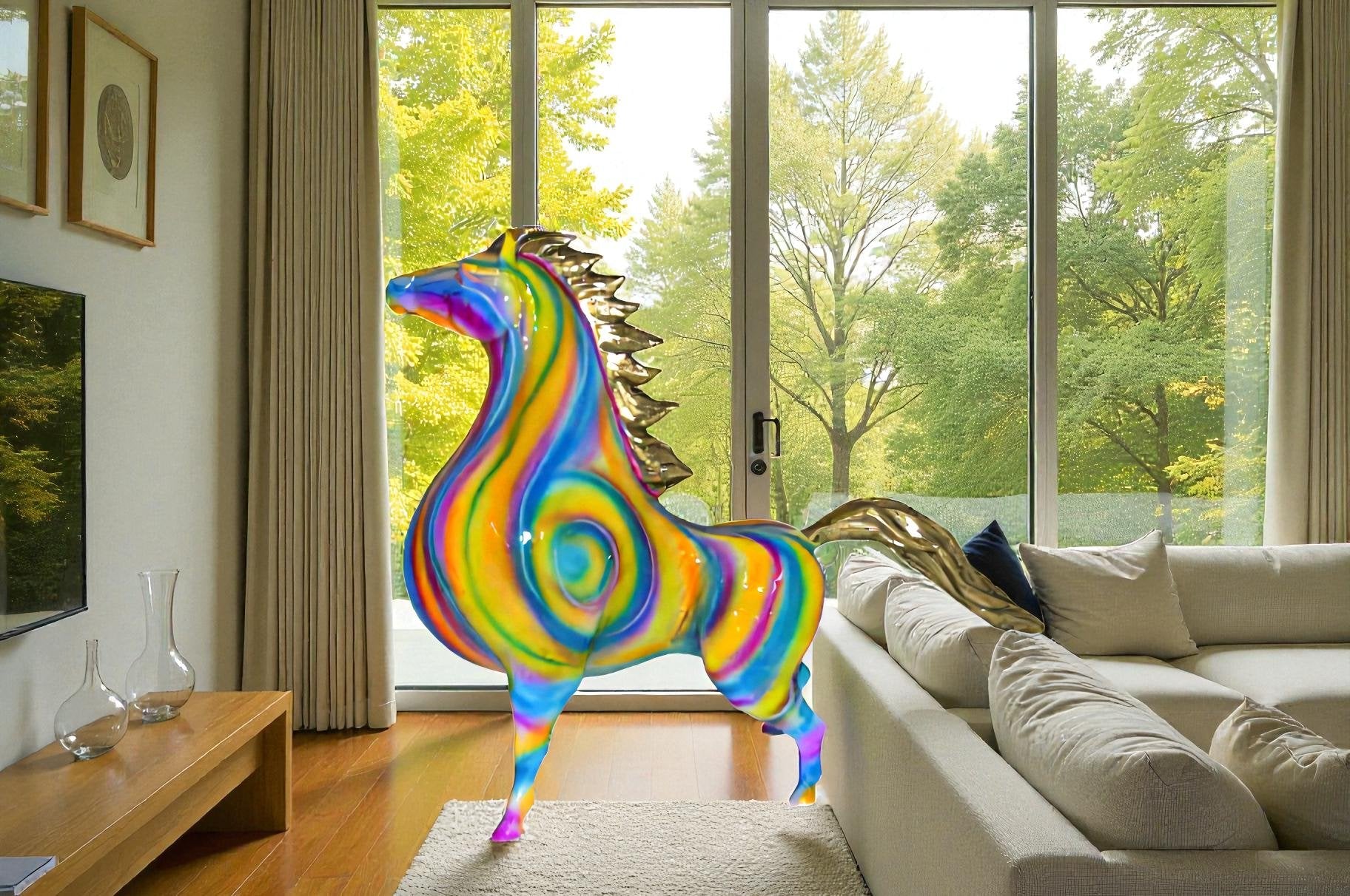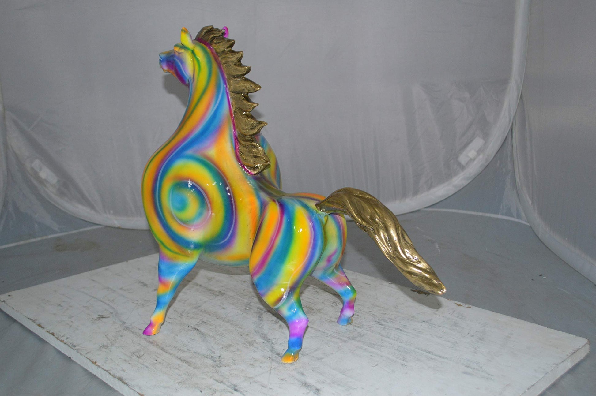 Decorate your home with this beautiful modern multi-colored Horse Bronze Statue. These decorative animals will become an extraordinary focal point to any kitchen, Livingroom or patio! We sell a whole line of this style of modern art. You can be sure they will be a conversation starter and the topic of much appraised comments in your home. Size: 19"L x 9"W x 19"H. Weight is: 14Lb