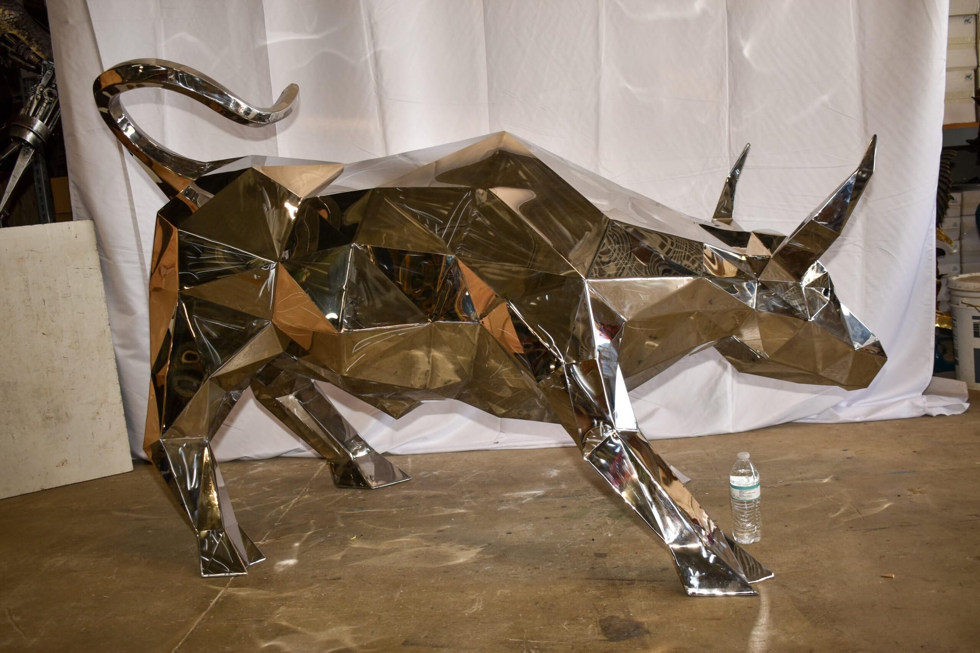 Modern Variation of Wall Street Bull Stainless Steel Statue 80" x 49" x 49"H