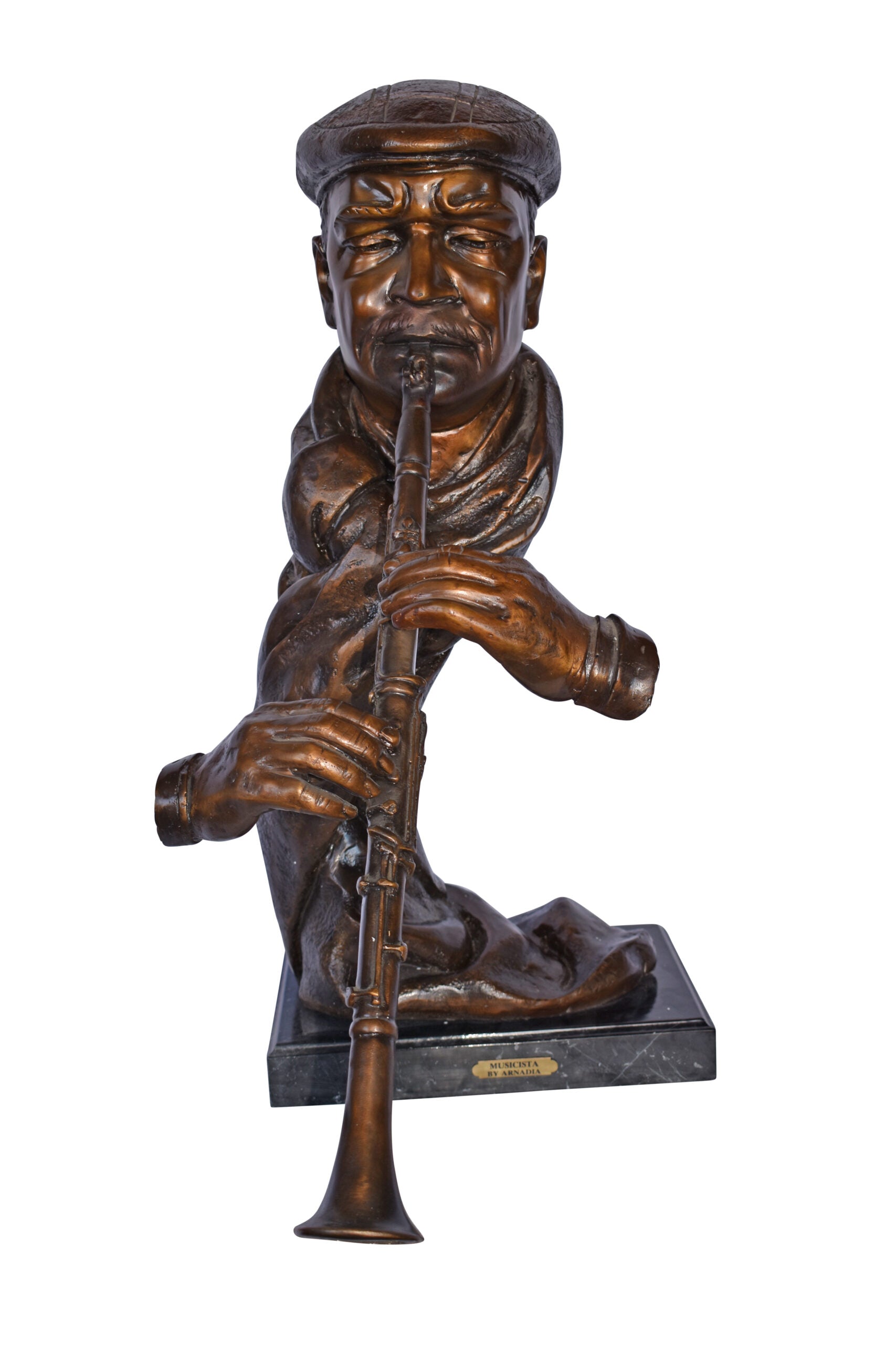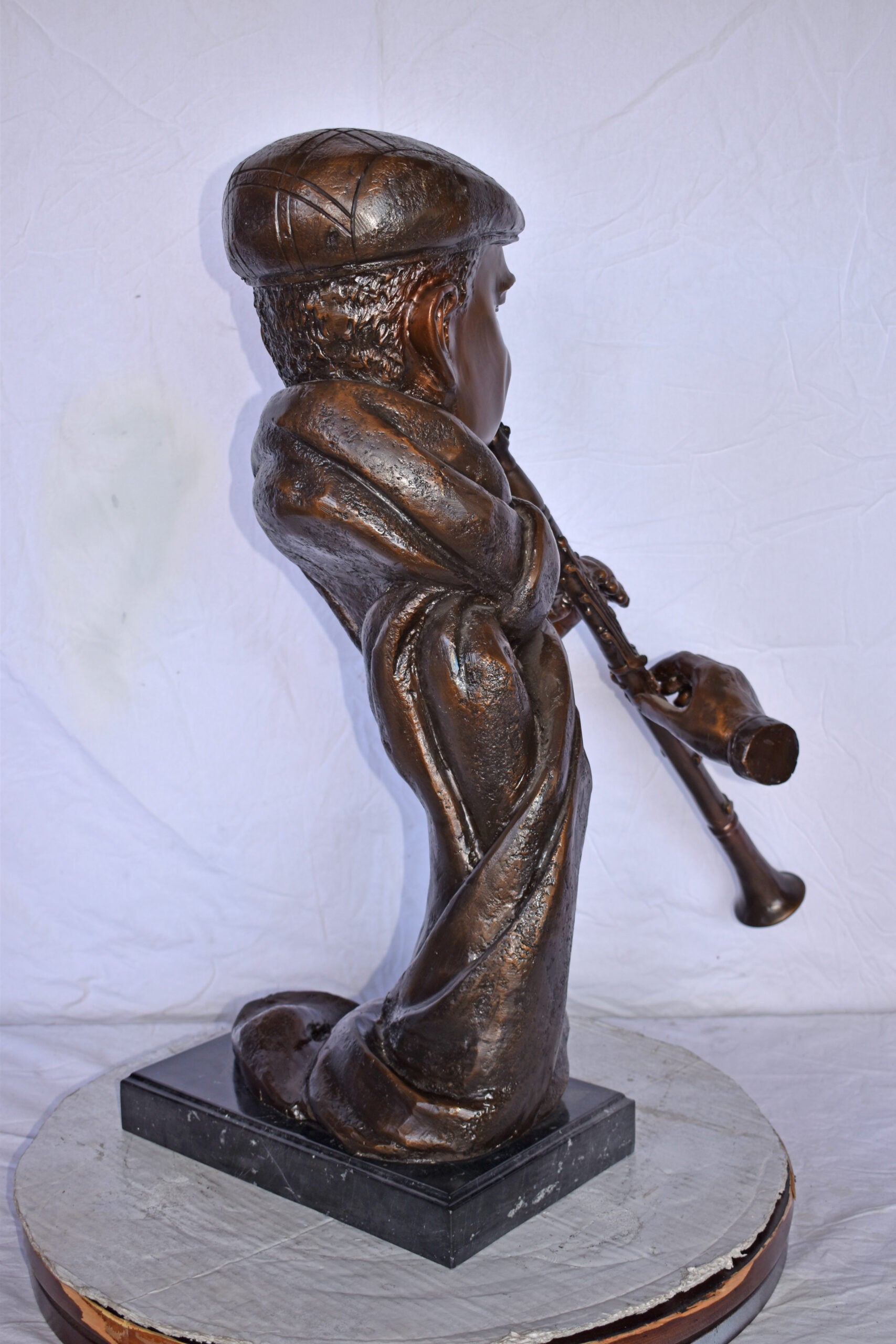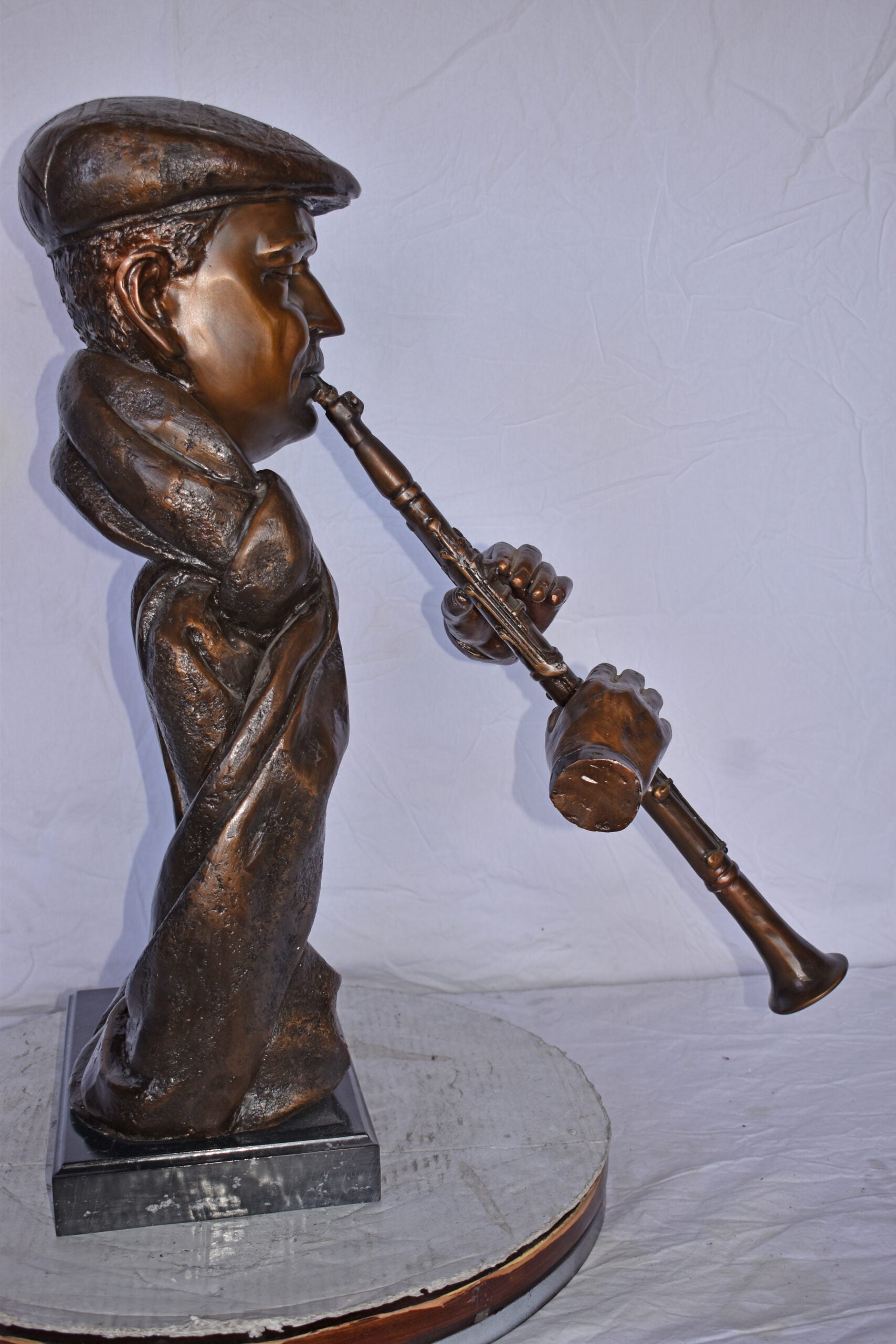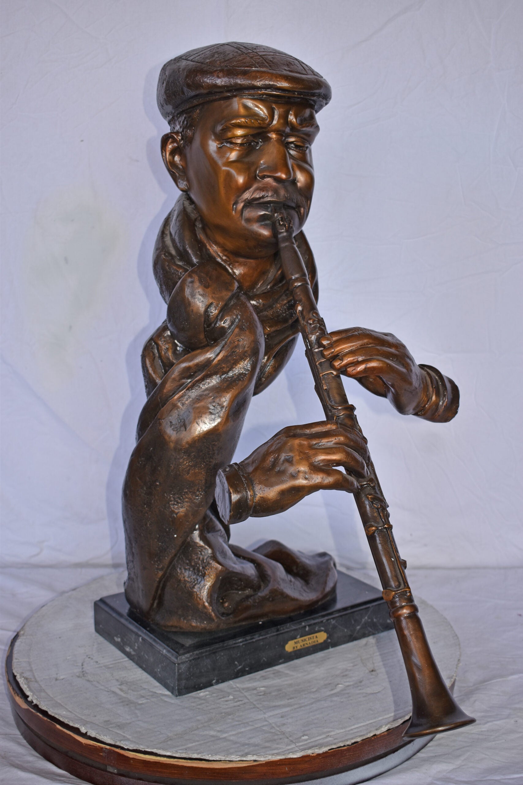 Musicista By Arnadia, Bust of Clarinet Player Bronze Statue - 17" x 25" x 31"H.