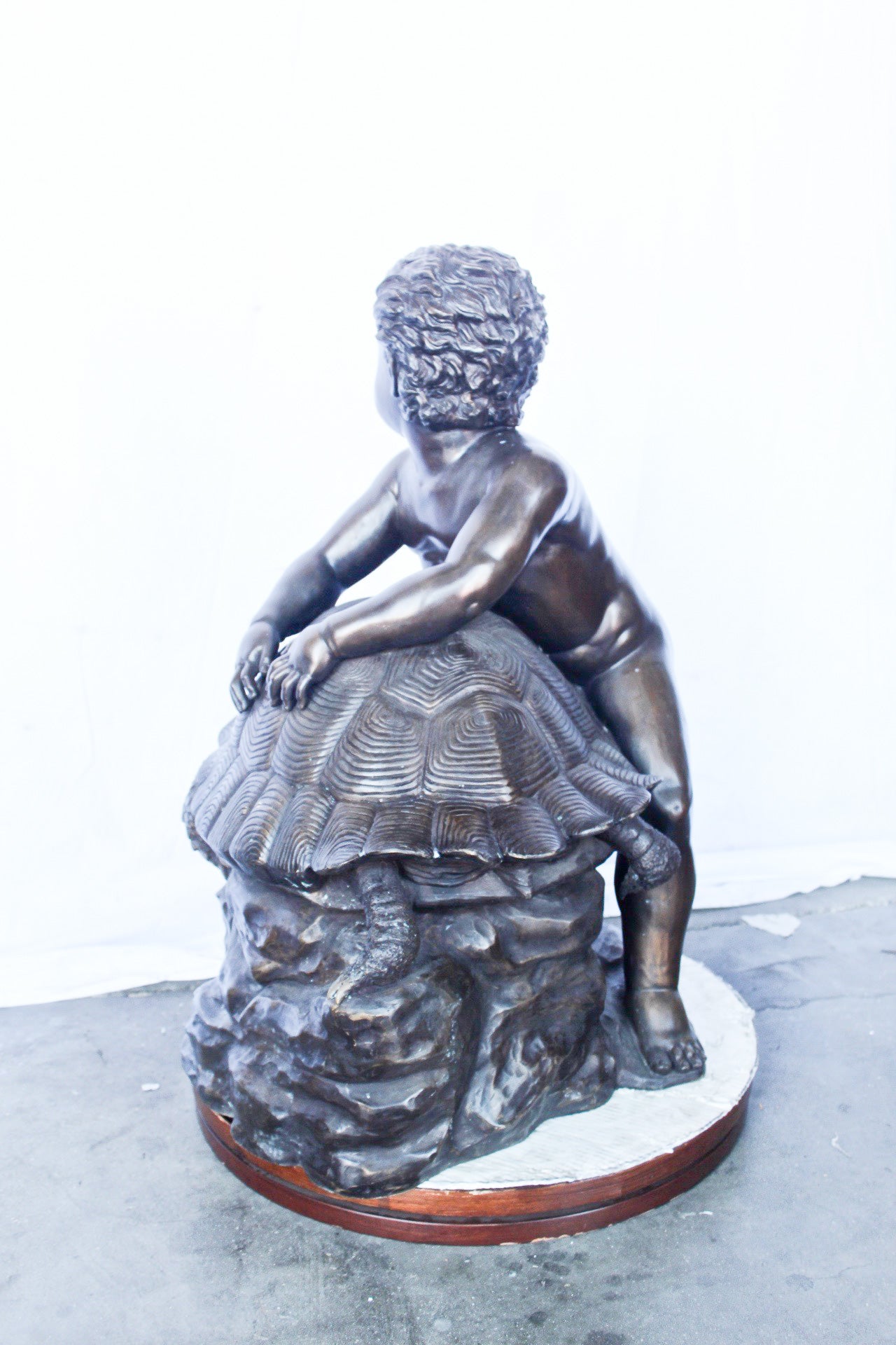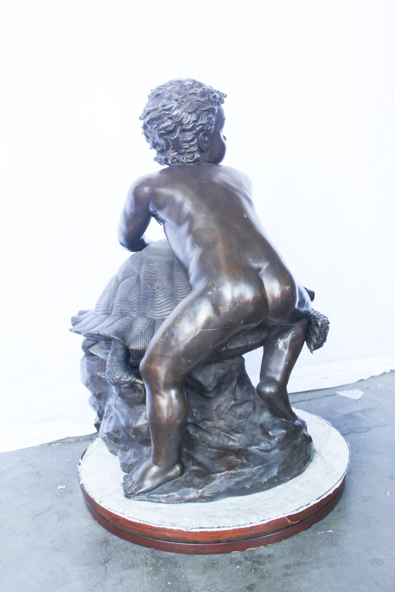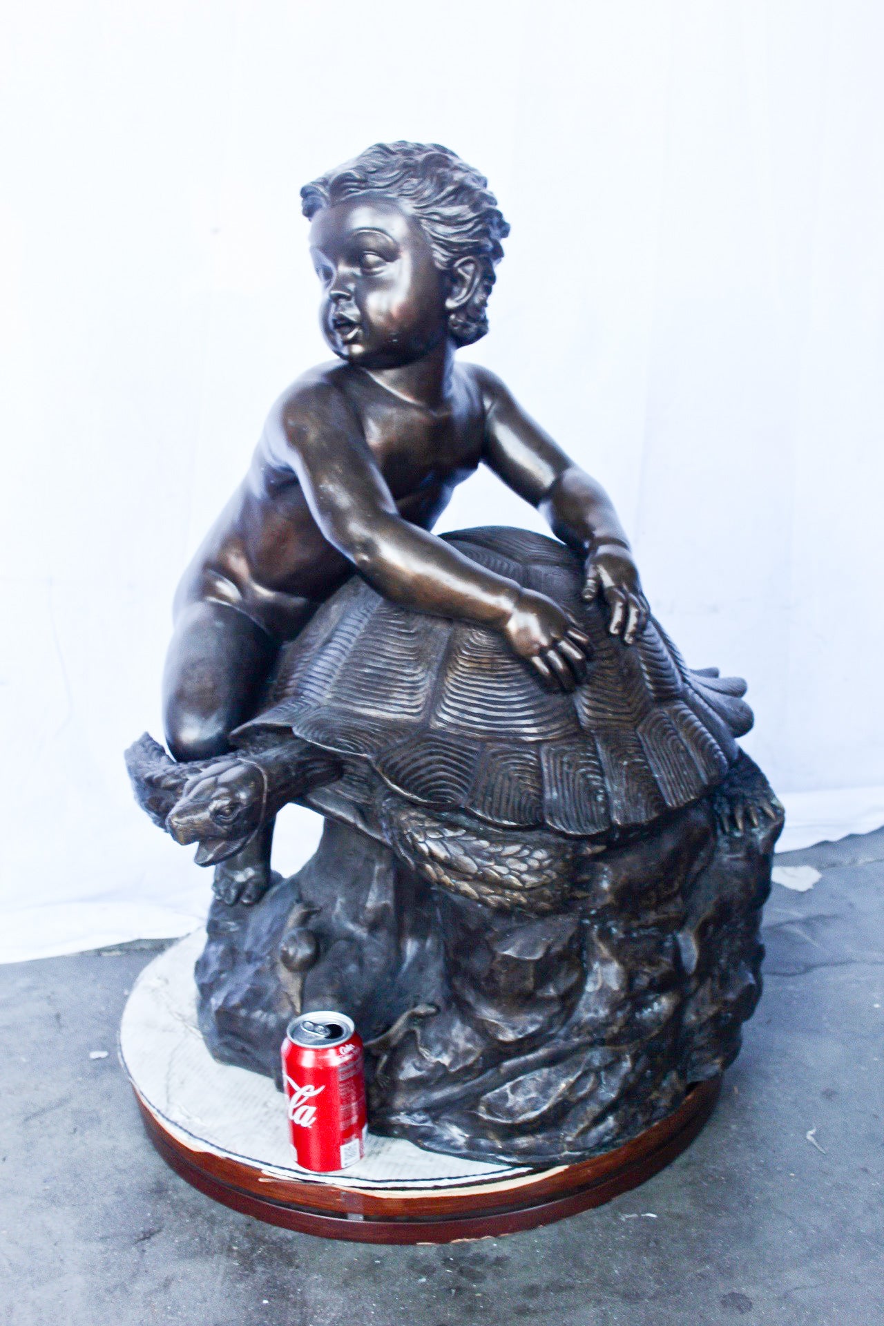 Naked toddler on turtle bronze statue Art Nude - Size: 23"L x 26"W x 34"H.