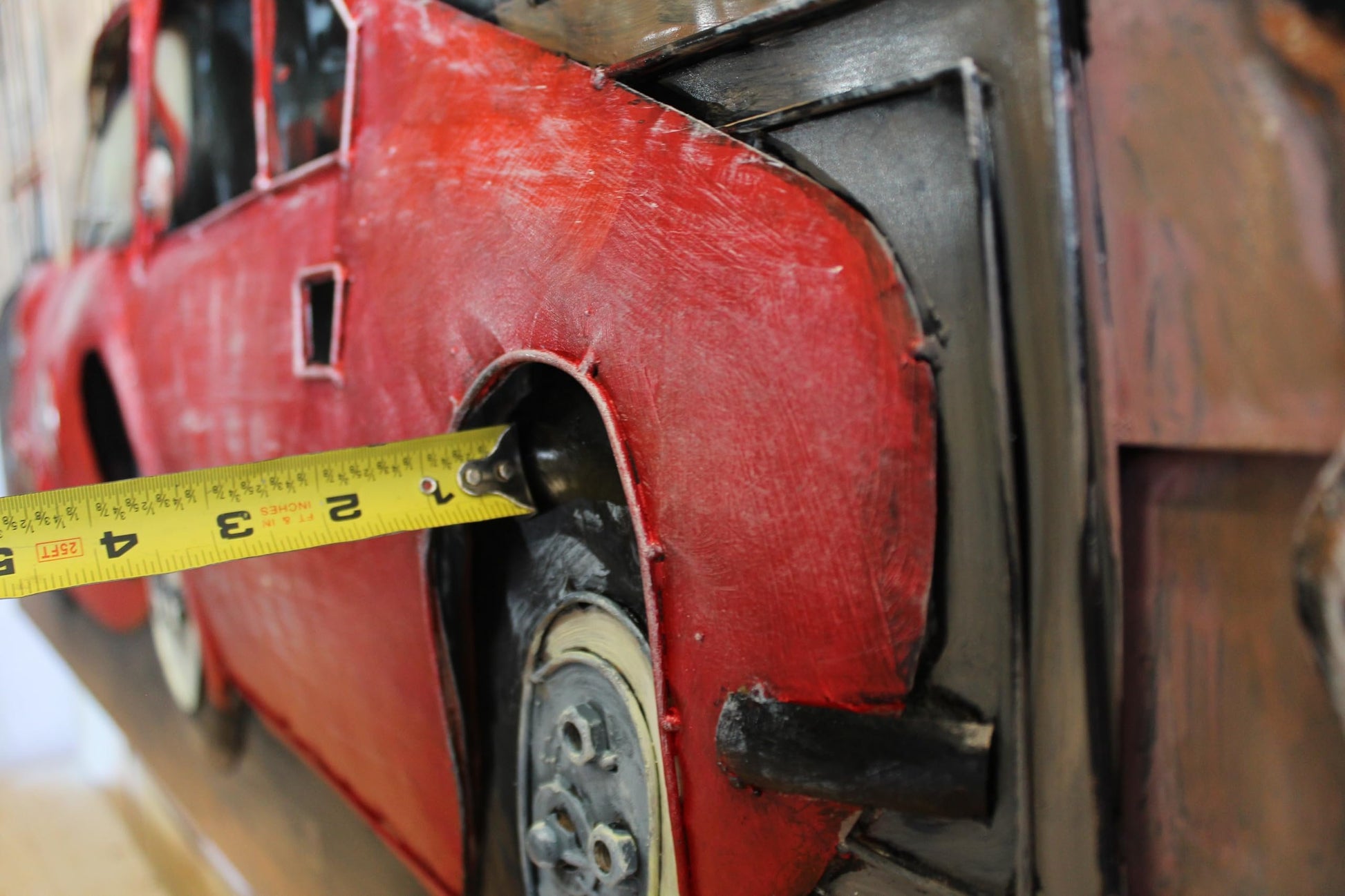 This stunning wall art is inspired by the iconic Ferrari Dino, crafted with a sheet metal base and detailed metal parts for a raised 3D effect. The vibrant red sports car against a vintage architectural backdrop creates a bold and timeless look. Perfect for car enthusiasts and collectors, this handcrafted artwork makes a striking addition to living rooms, offices, man caves, or garages. Size: 79"L x 2"W x 40"H. Weight: 30LbFerrari Dino inspired red sports car metal wall artSheet metal base with detailed raised metal parts for 3D effectVintage architectural backdrop adds timeless characterHandcrafted statement piece for car enthusiasts and collectorsLarge size 79 in x 2 in x 40 in weighing 30 lb