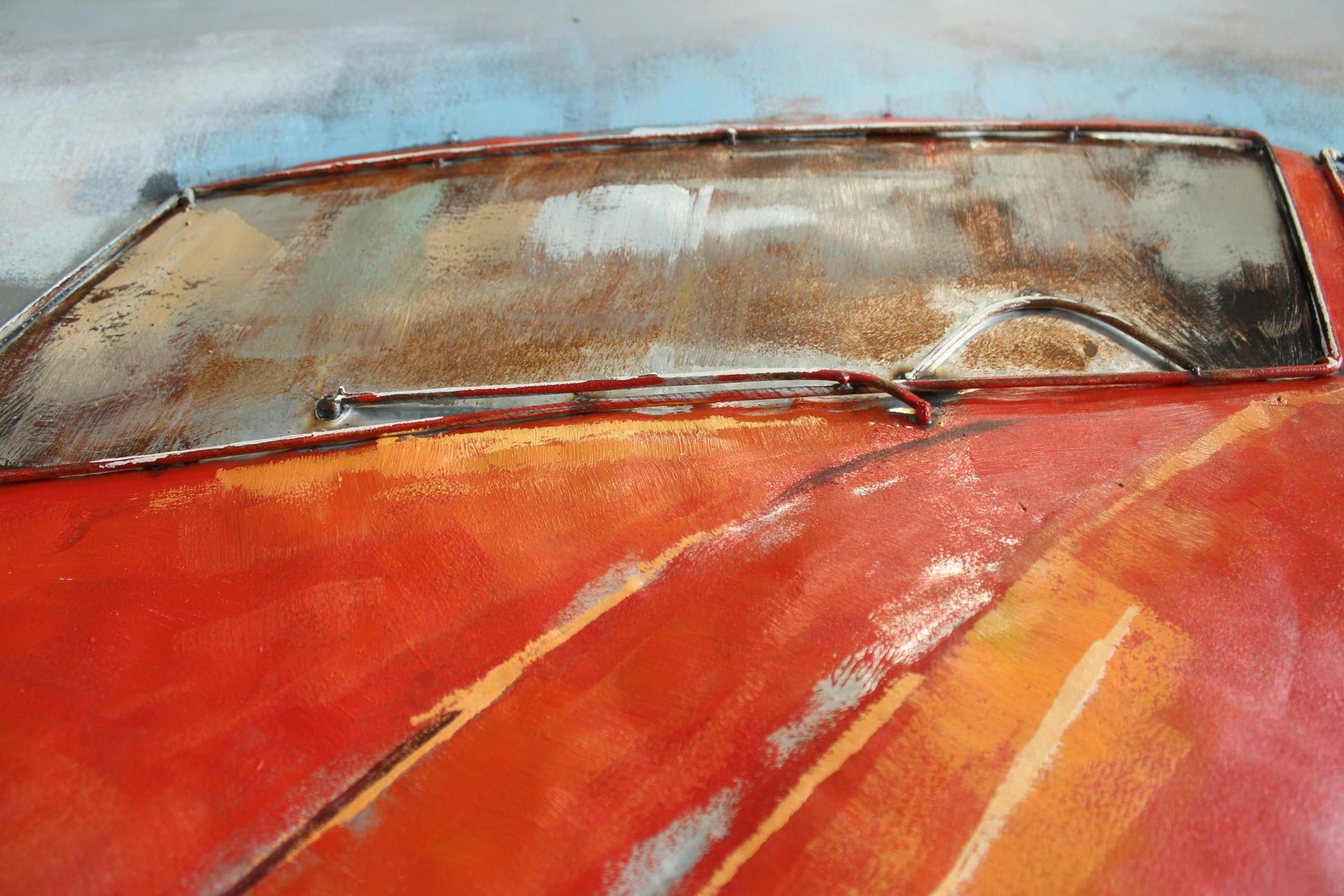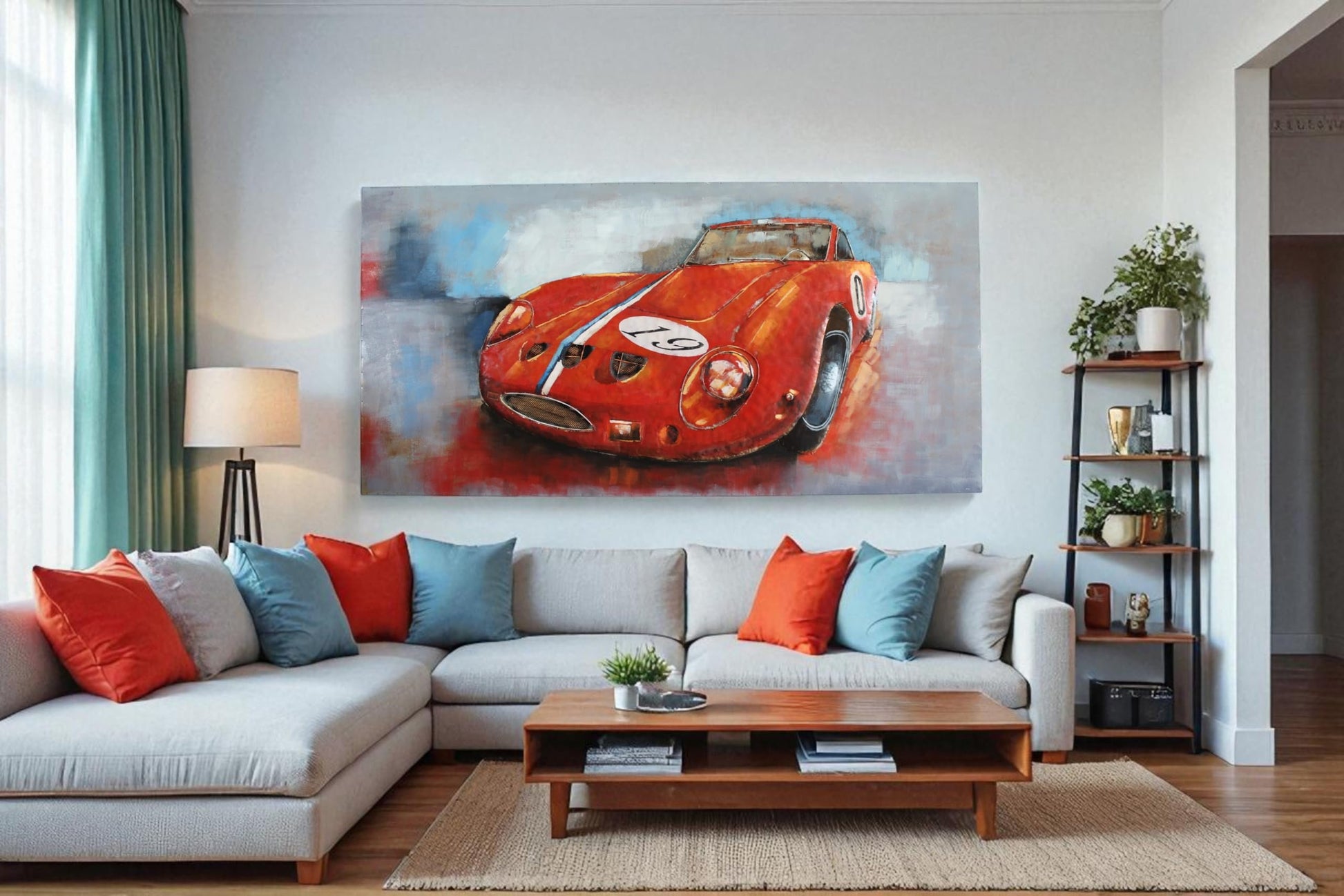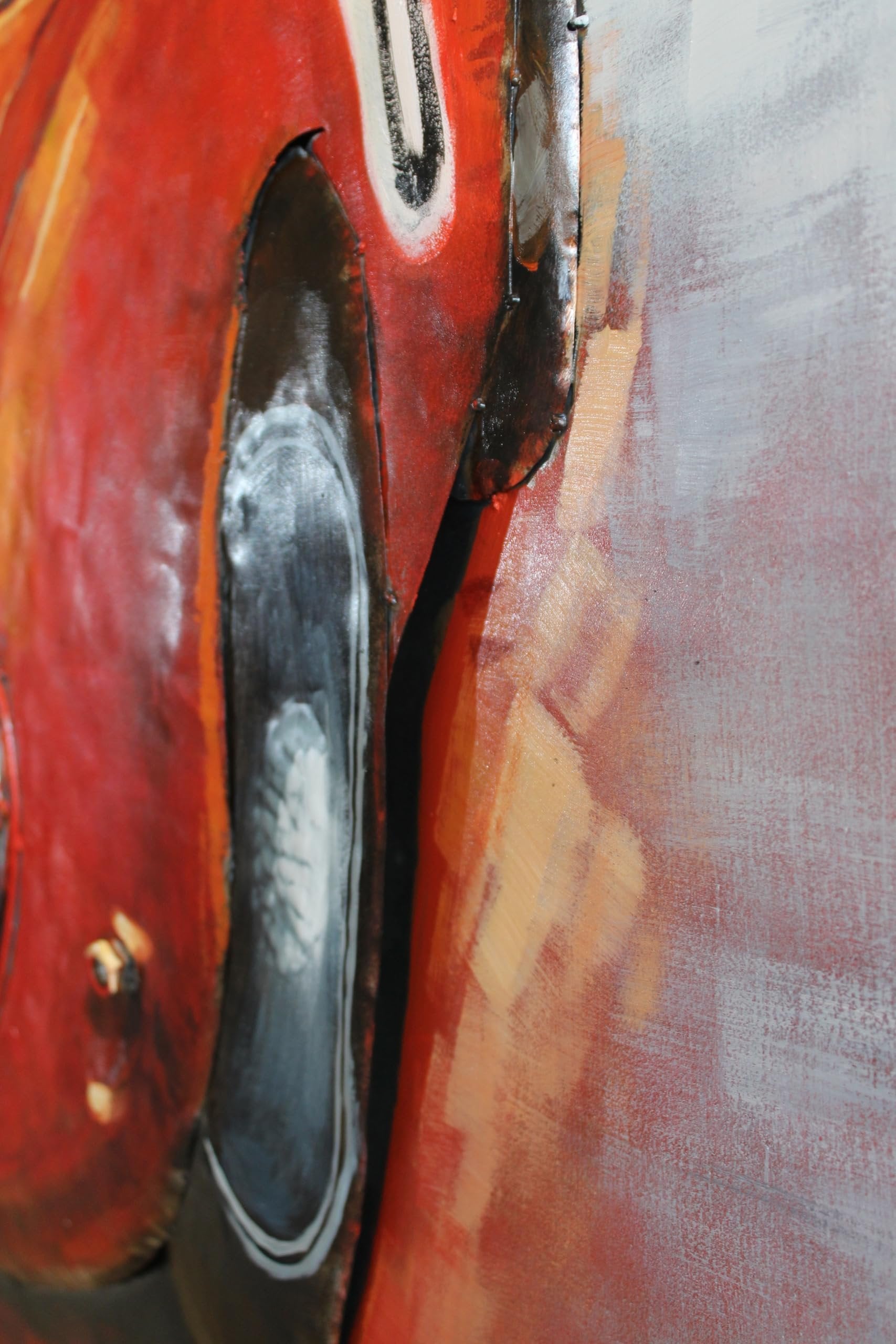 This Ferrari-inspired artwork pays tribute to the legendary 250 GTO, one of the most iconic racing cars in history. Crafted on a sheet metal base with raised sculpted details, it blends painting with 3D relief for a bold, textured look. The vivid red body, racing stripe, and number 19 bring the spirit of classic motorsport to life. A striking piece of wall art for car enthusiasts, collectors, and lovers of vintage racing style. Size: 79"L x 2"W x 40"H. Weight: 30LbFerrari inspired 250 GTO tribute wall artSheet metal base with raised sculpted 3D reliefBold textured finish blending painting and reliefVivid red body with racing stripe and number 19 evokes classic motorsportLarge size 79 in x 2 in x 40 in weighing 30 lb