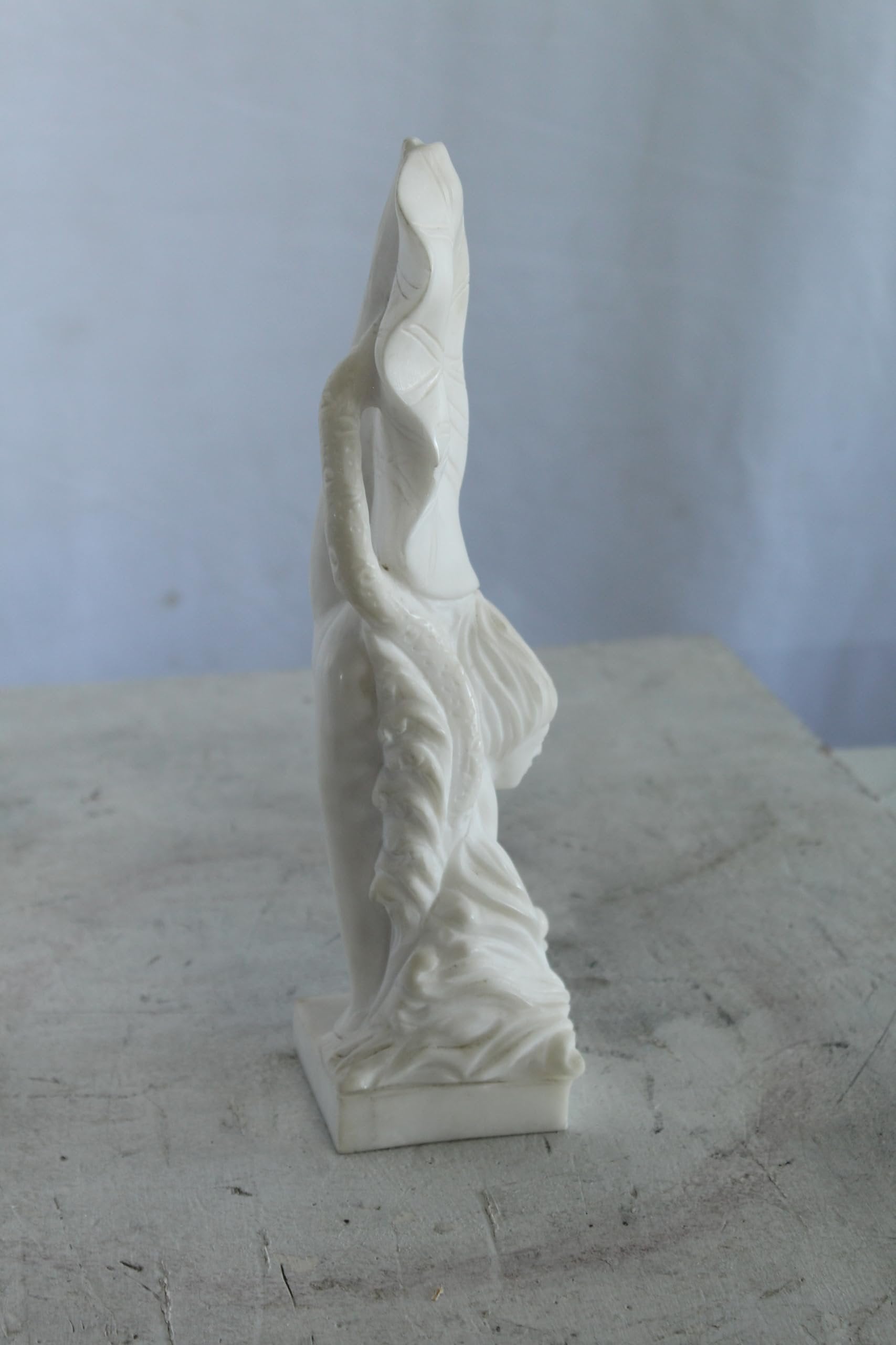 Elegant marble sculpture of a woman captured mid-dive reaching for a pearl. The flowing form and clean white finish add a serene, gallery-worthy touch to consoles, shelves, and entry displays. Size: 4"L x 4"W x 12"H. Weight: 3Lb depicts a graceful woman diving in pursuit of a pearl | hand-carved from solid marble with smooth fluid lines | luminous white finish complements coastal spa and modern interiors | stable rectangular base for easy shelf or pedestal display | dimensions: 4" L x 4" W x 12" H weight: 3 lb