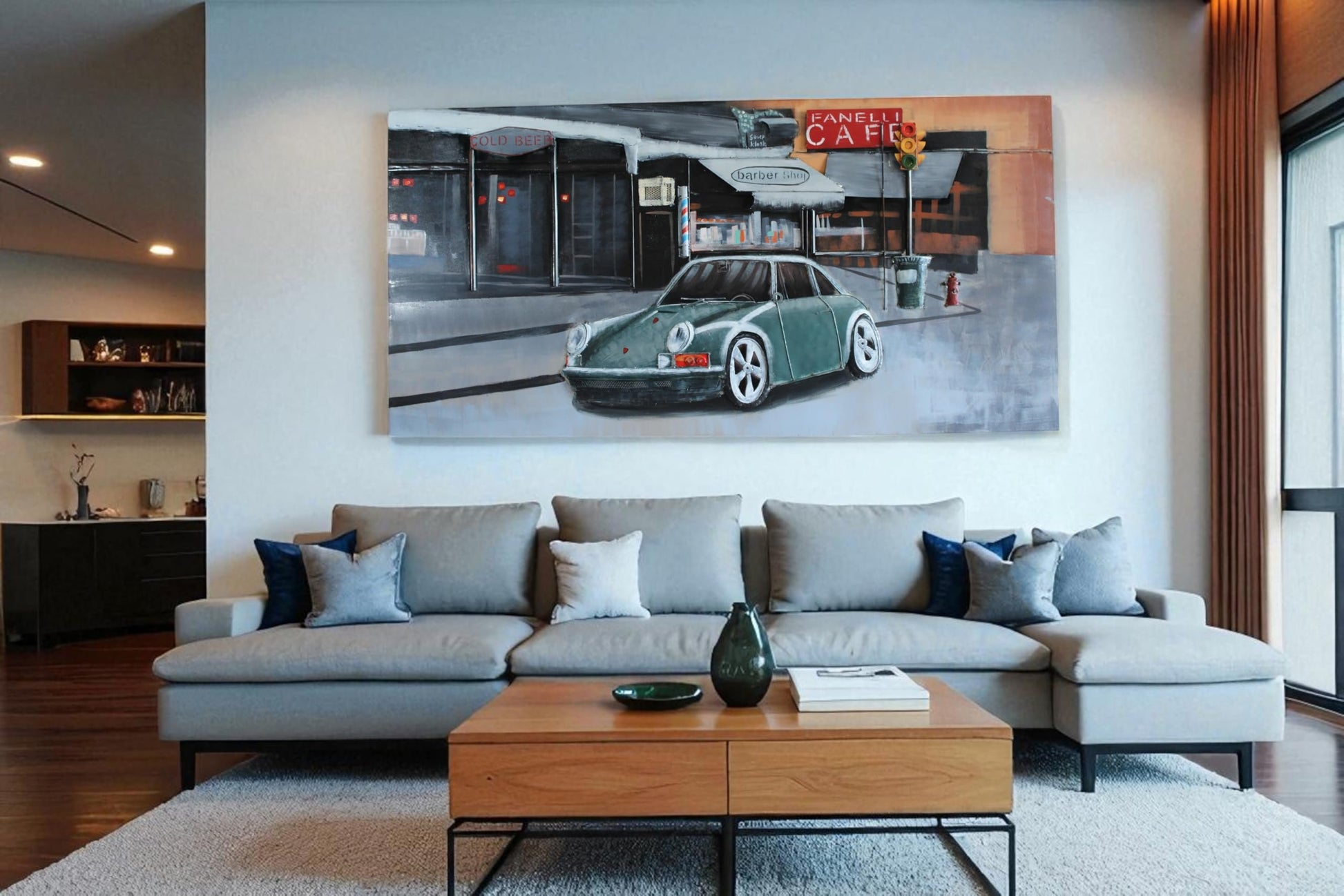 NIFAO Porsche 911 Inspired Classic Green Sports Car Metal Wall Art 79" x 2" x 40"H