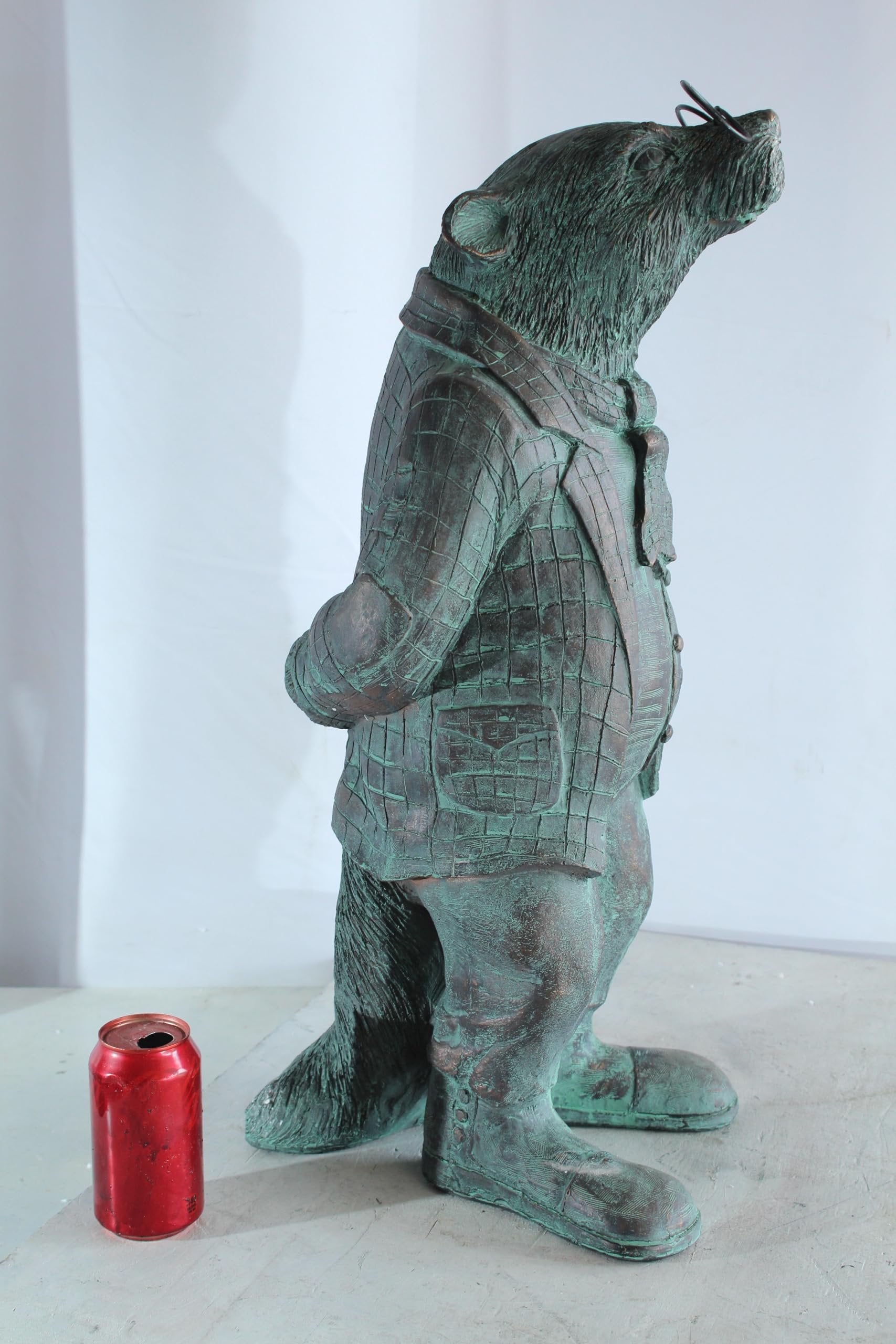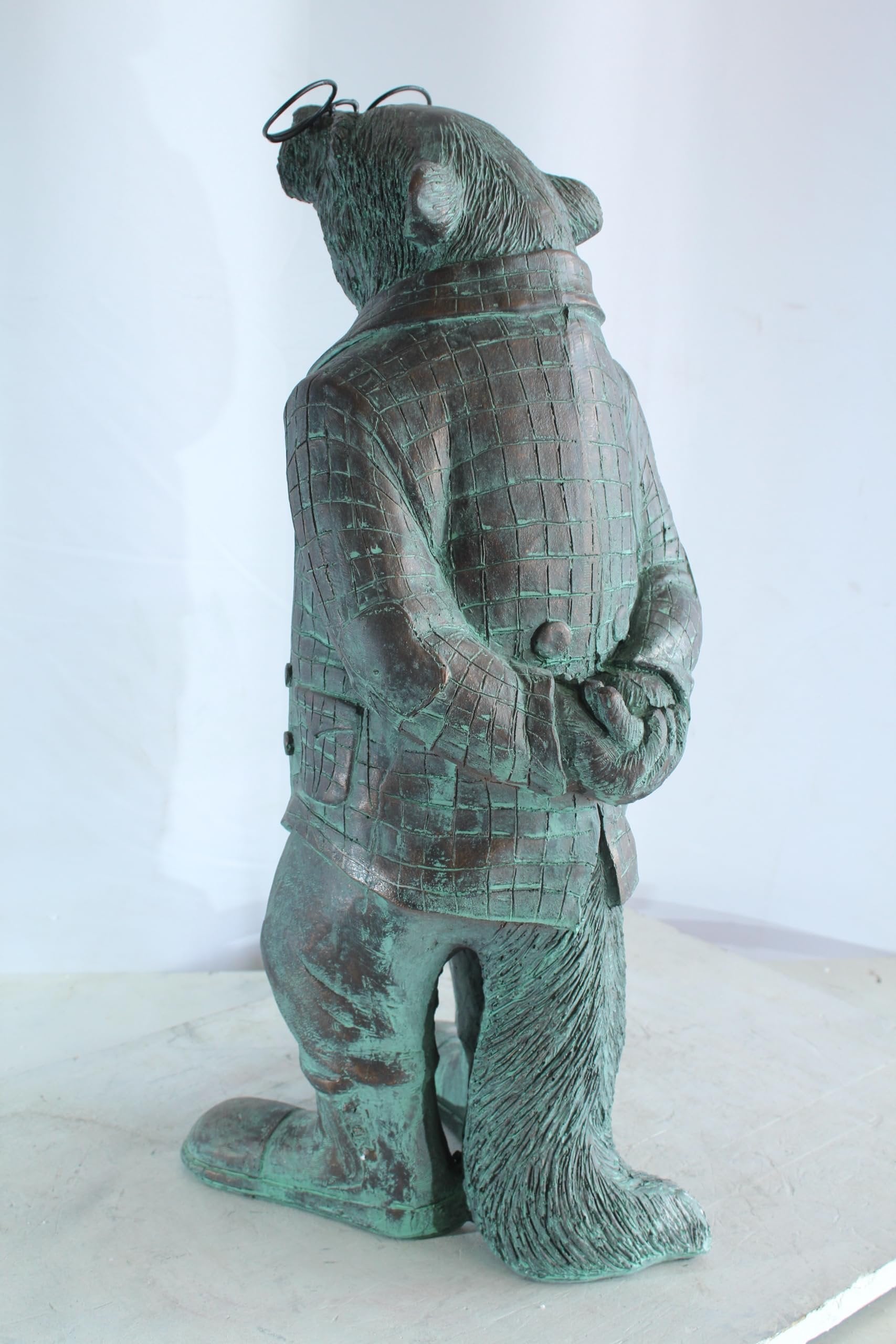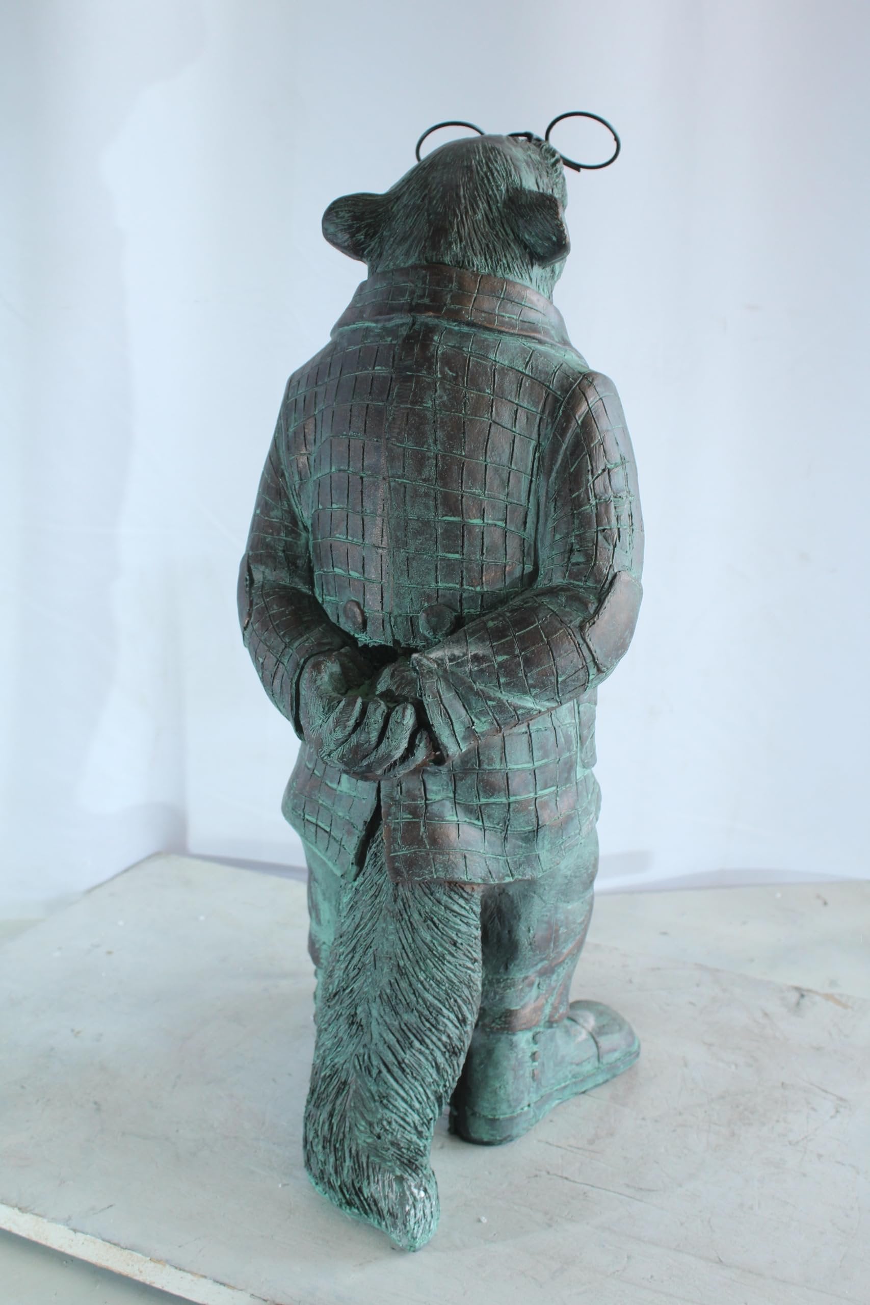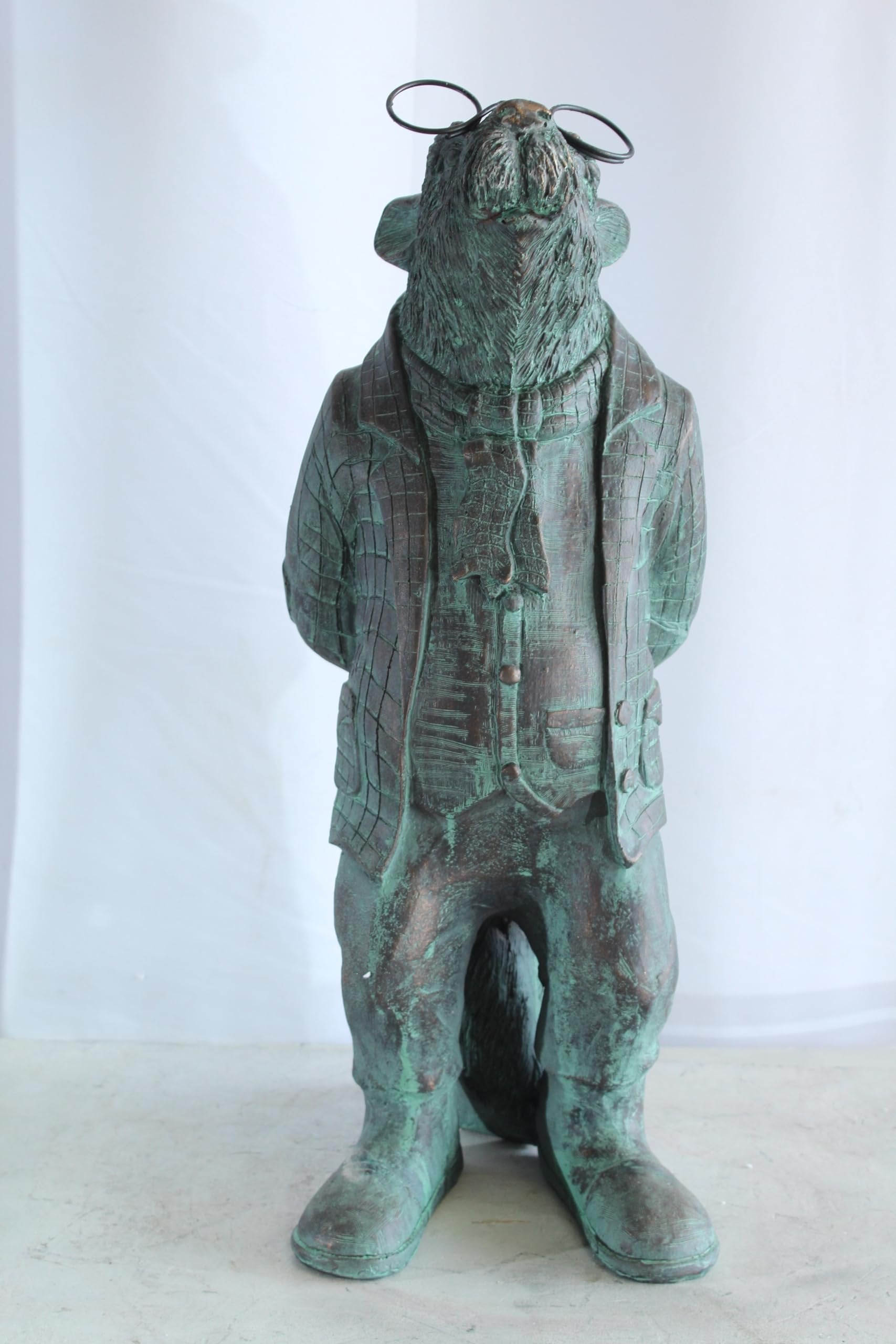 Whimsical resin sculpture of a standing mole in vintage attire with glasses. The bronze look green patina provides an aged gallery feel while keeping the piece lightweight and easy to place. Hand finished details emphasize fur and clothing textures for personality and charm. Ideal for bookshelves consoles or office decor. Ships well protected and arrives ready to display. Size: 9"L x 11"W x 26"H. Weight: 9Lb Resin construction with bronze look green patina for classic gallery appeal Hand finished textures highlight fur clothing and glasses for character Whimsical standing mole design adds charm to entry shelf or office 9 in x 11 in x 26 in height for noticeable presence without overpowering a room 9 lb weight approx with stable felted base ready to display