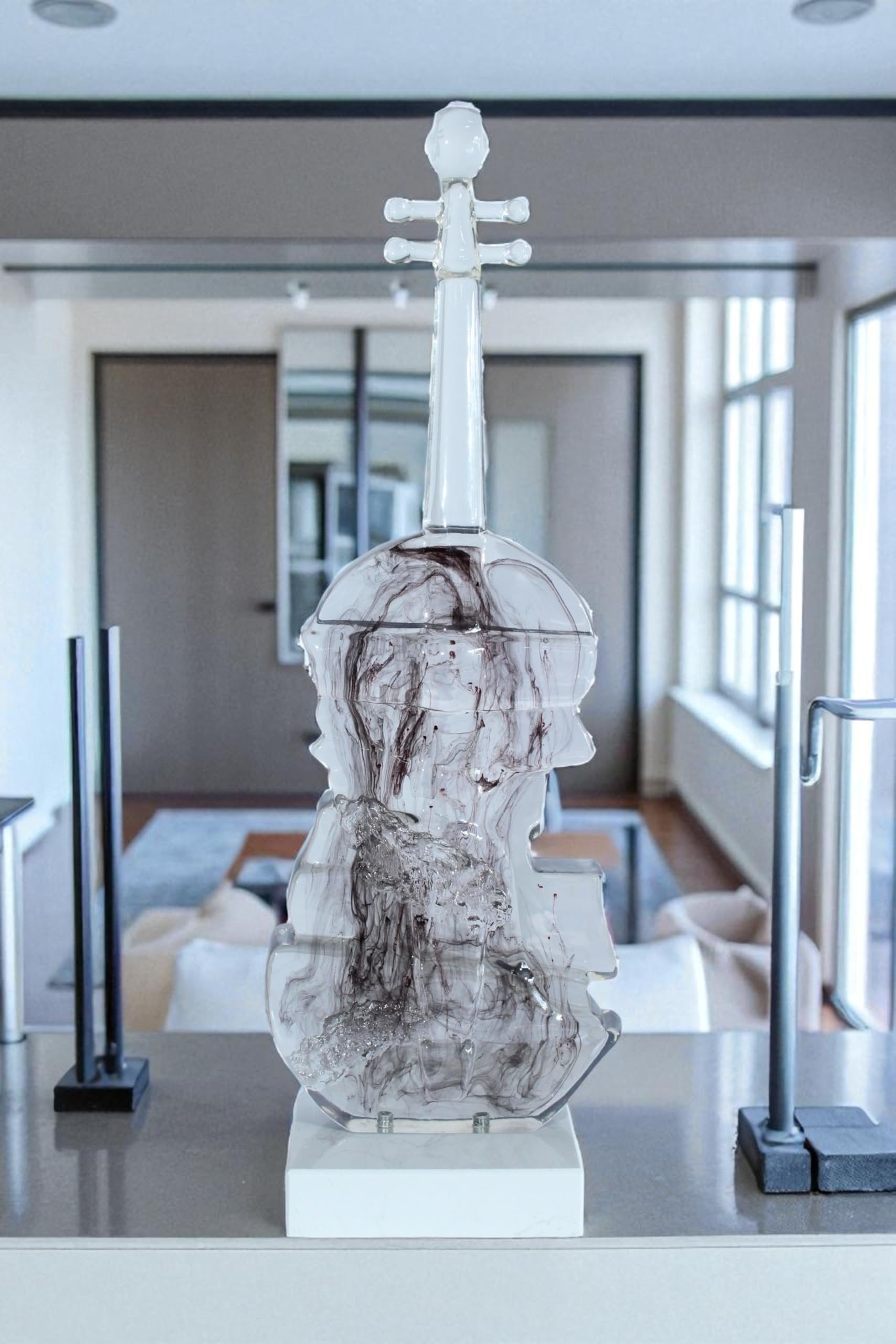 NIFAO Resin Violin Statue Clear Abstract Musical Instrument Art Decor 10" x 6" x 29"H