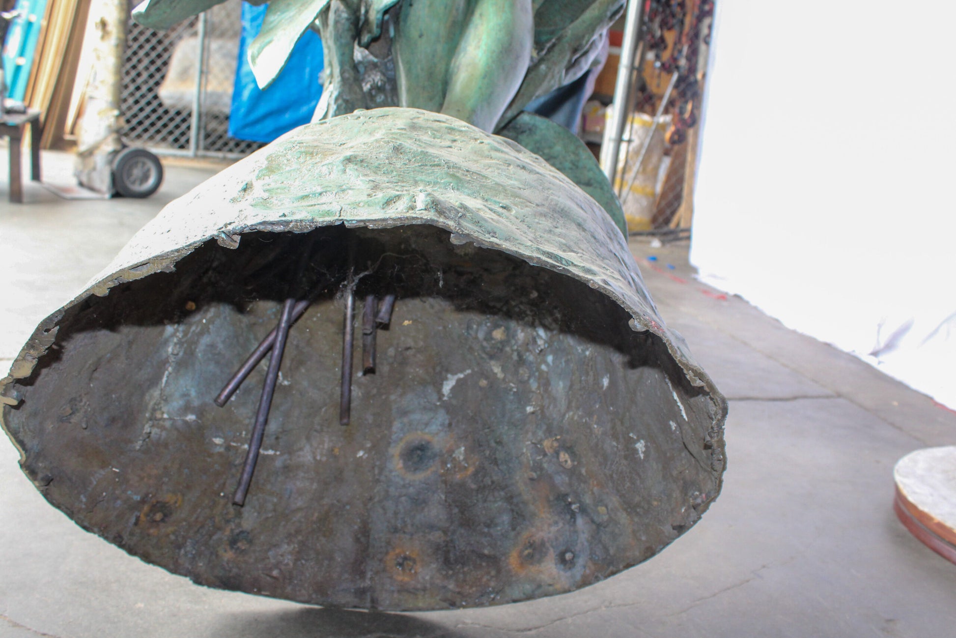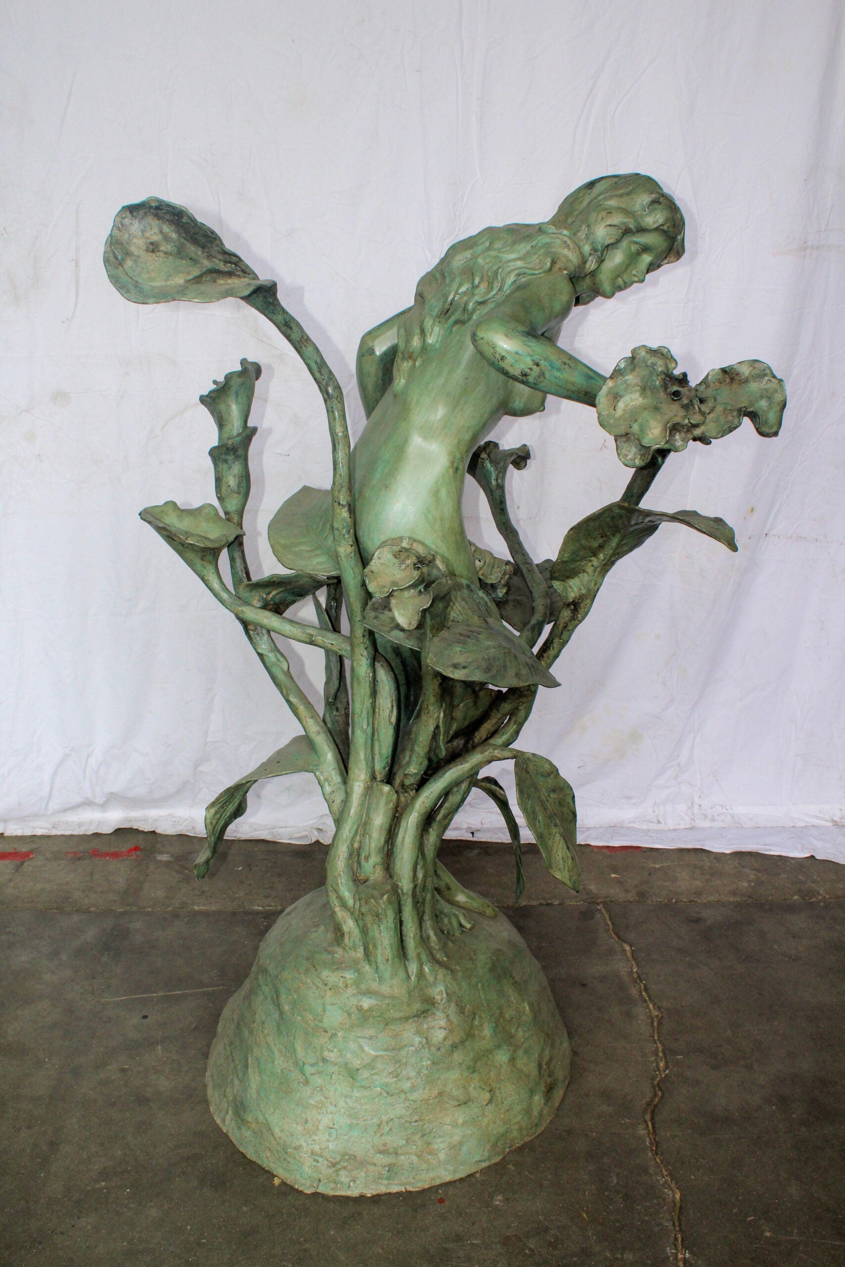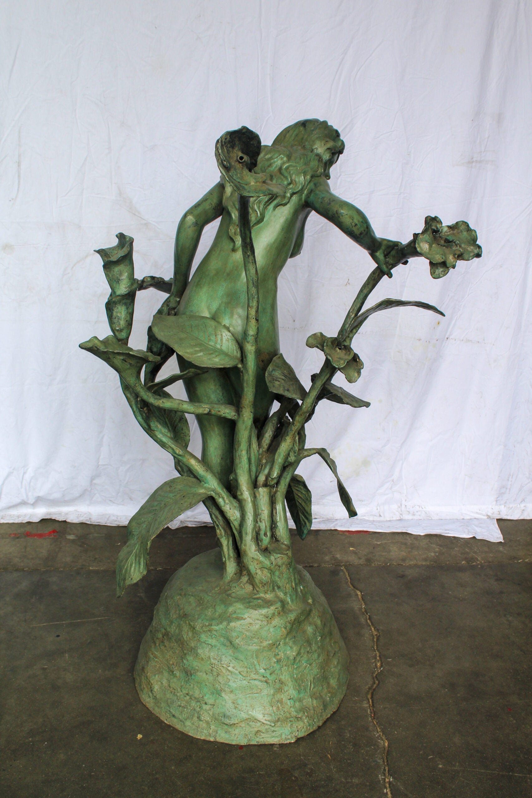 This life-size bronze fountain features a nude art girl standing by the garden, crafted using the traditional lost wax method. Perfect for outdoor settings, it blends natural beauty with artistic elegance. Please note, the pump is not included, offering a serene addition to any garden or outdoor space. Size: 44"L x 44"W x 64"H. Weight: 200Lb