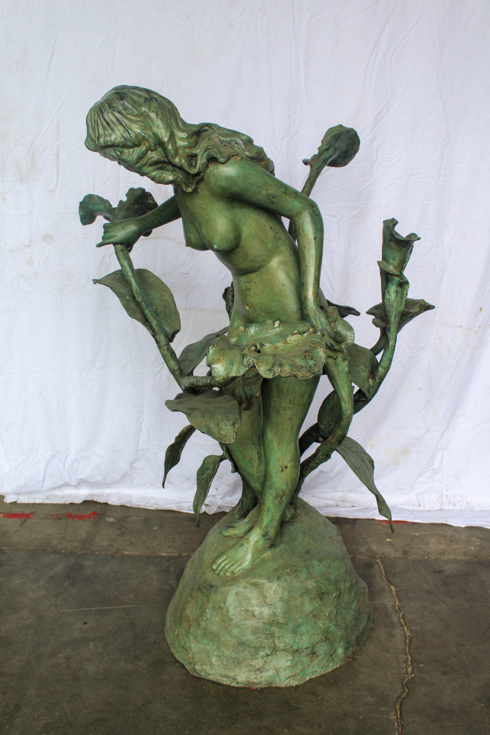 Nude Art Girl Standing by the Garden Life Size Bronze Fountain 44" x 44" x 64"H