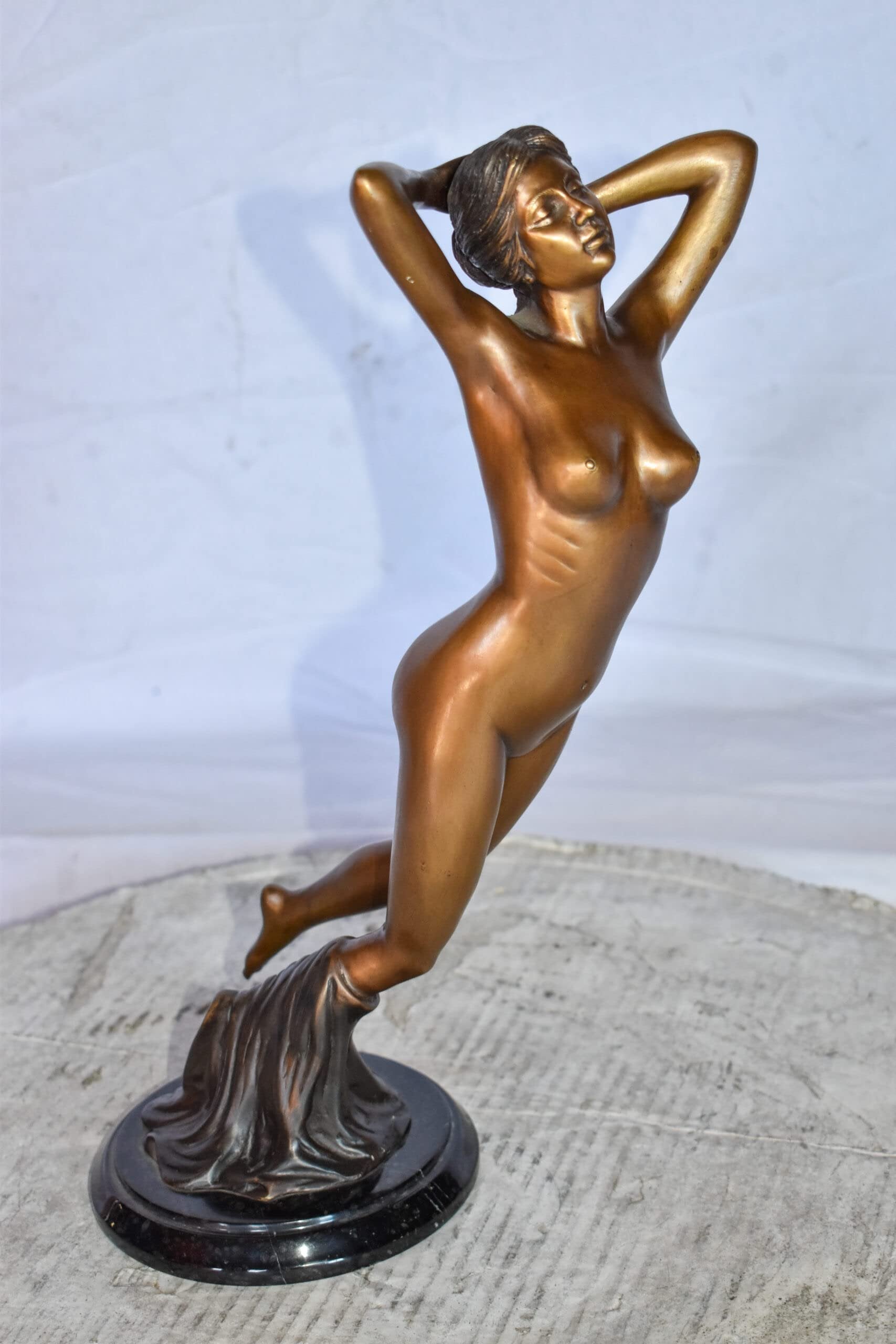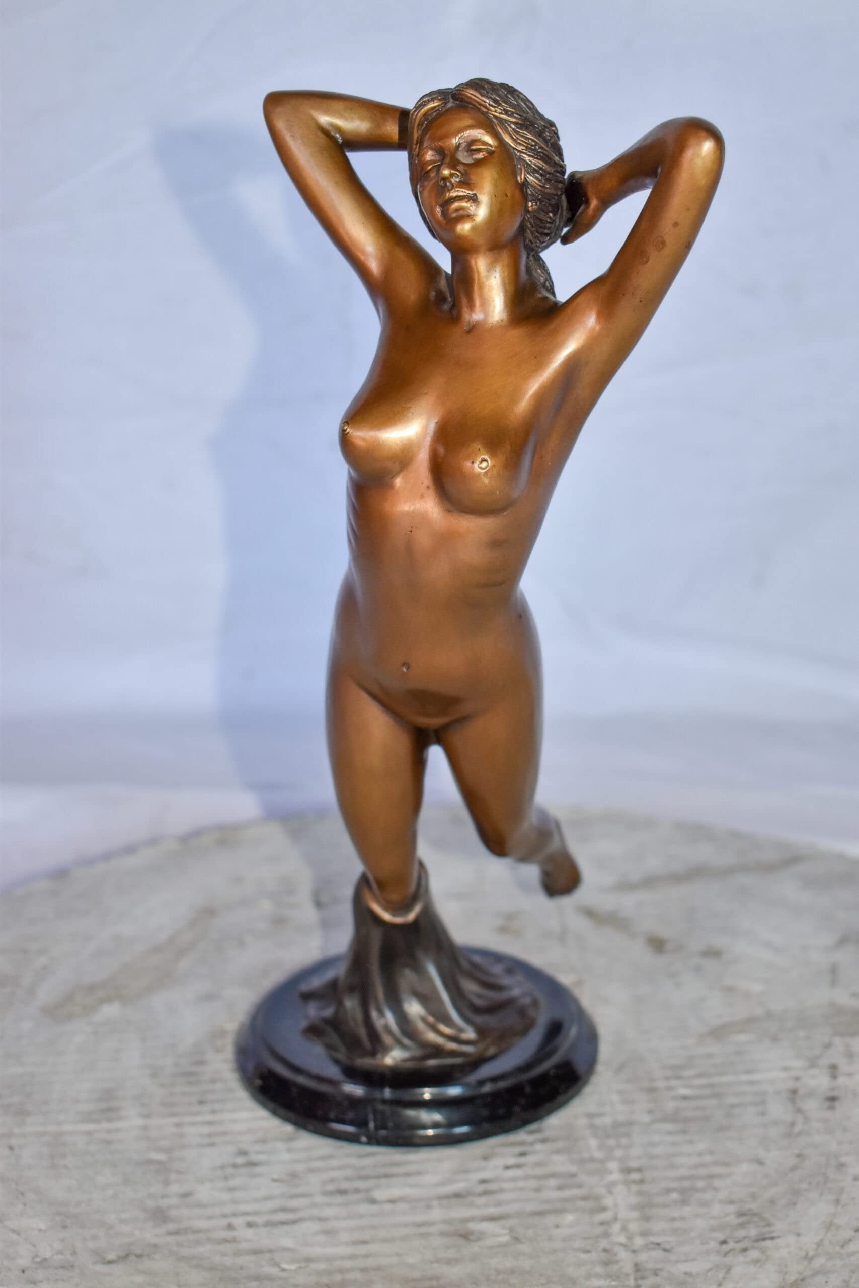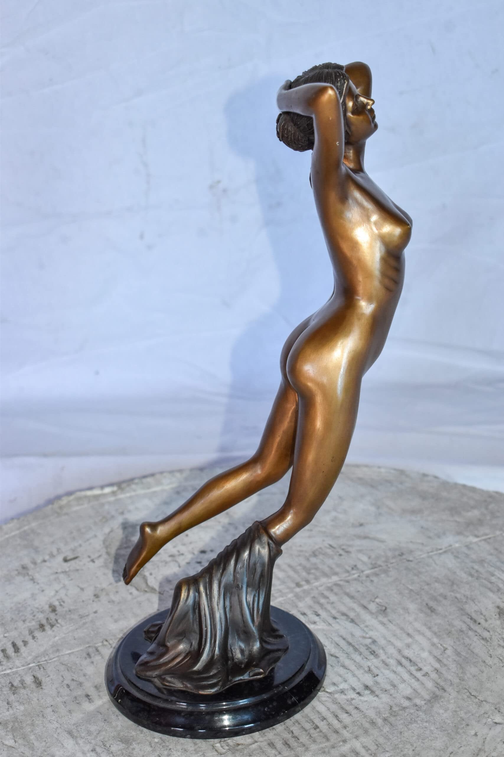 Nude Girl Posing Art Bronze Statue Mounted on Marble Size: 8" x 8" x 16"H