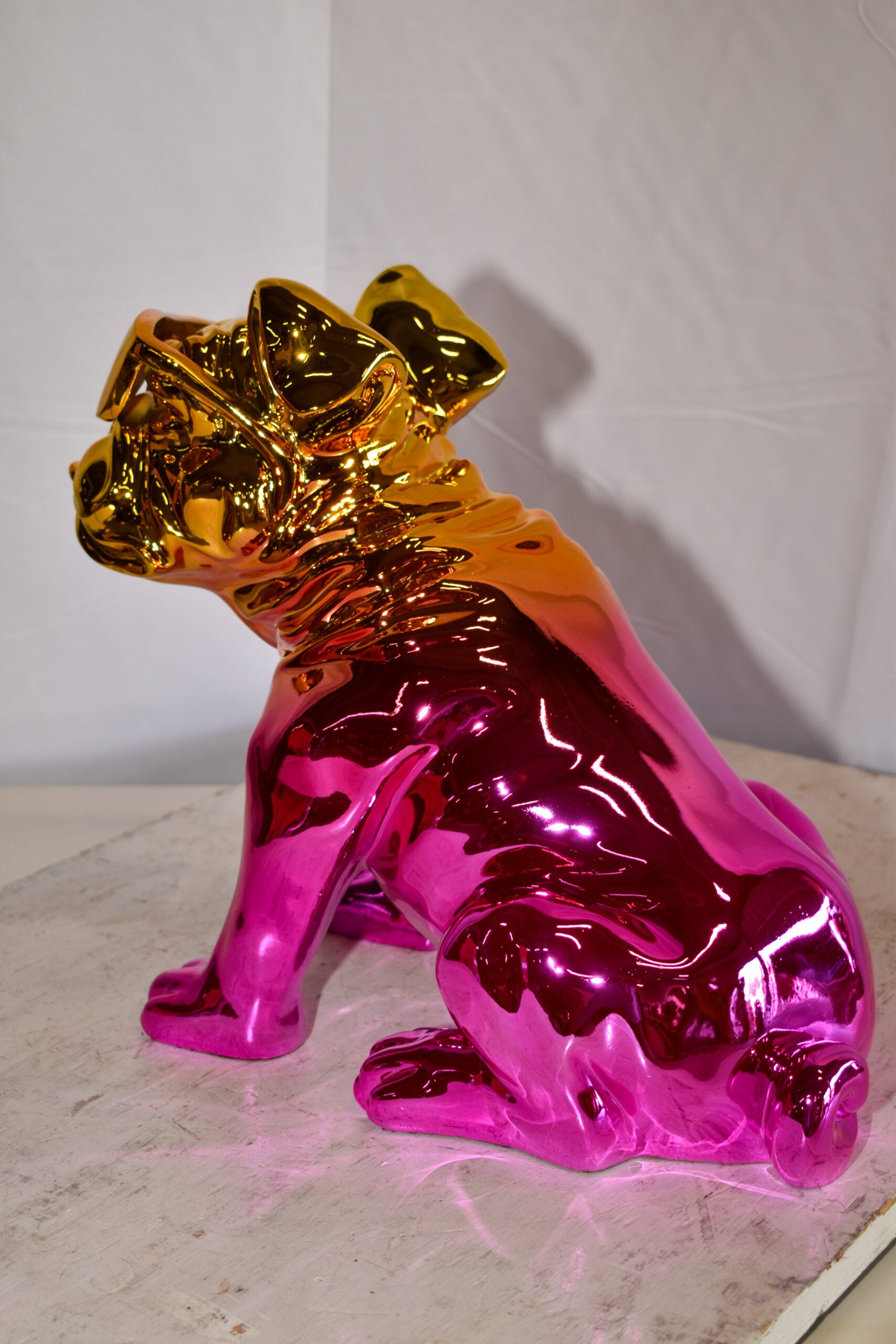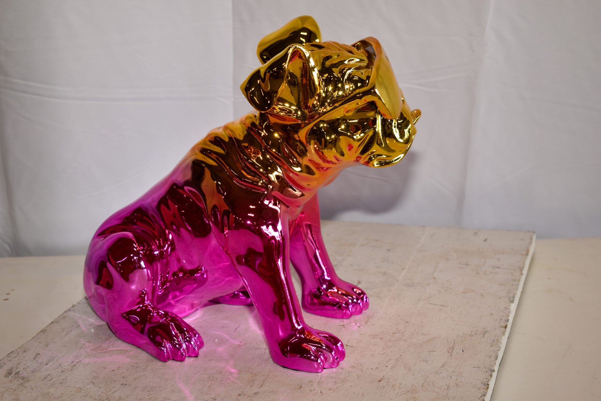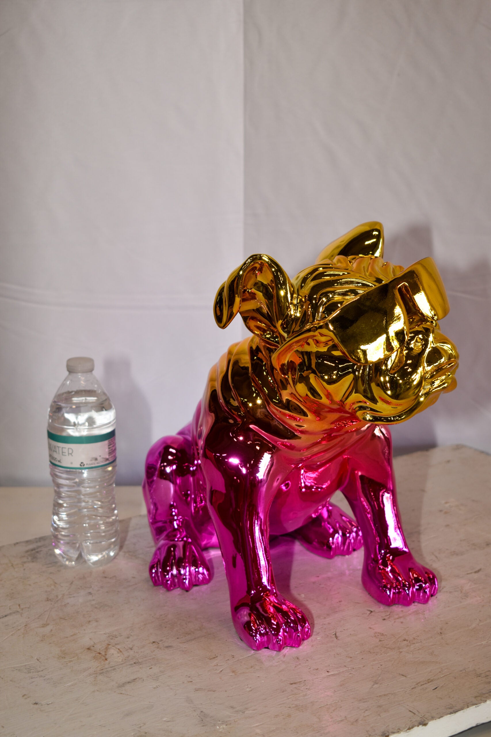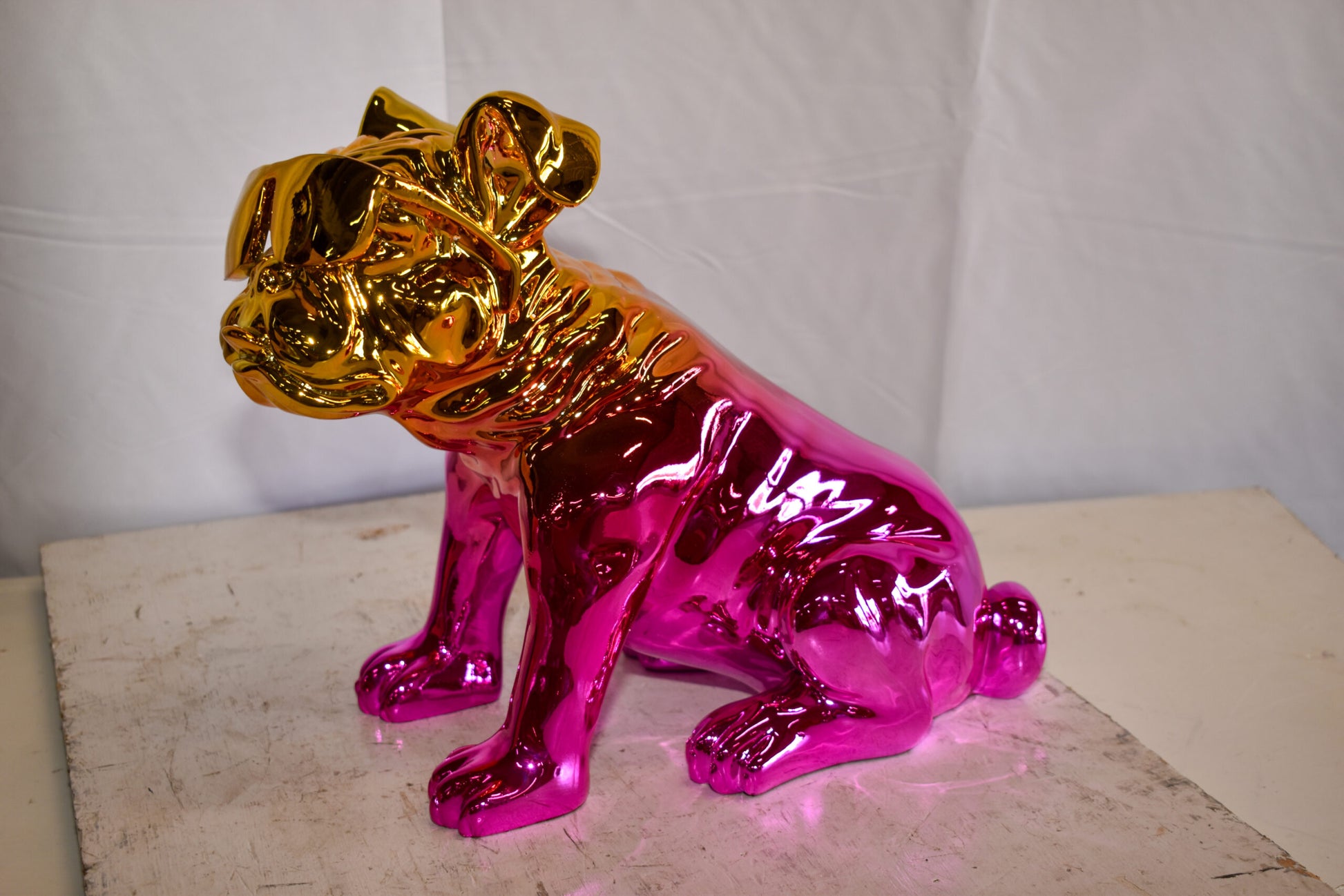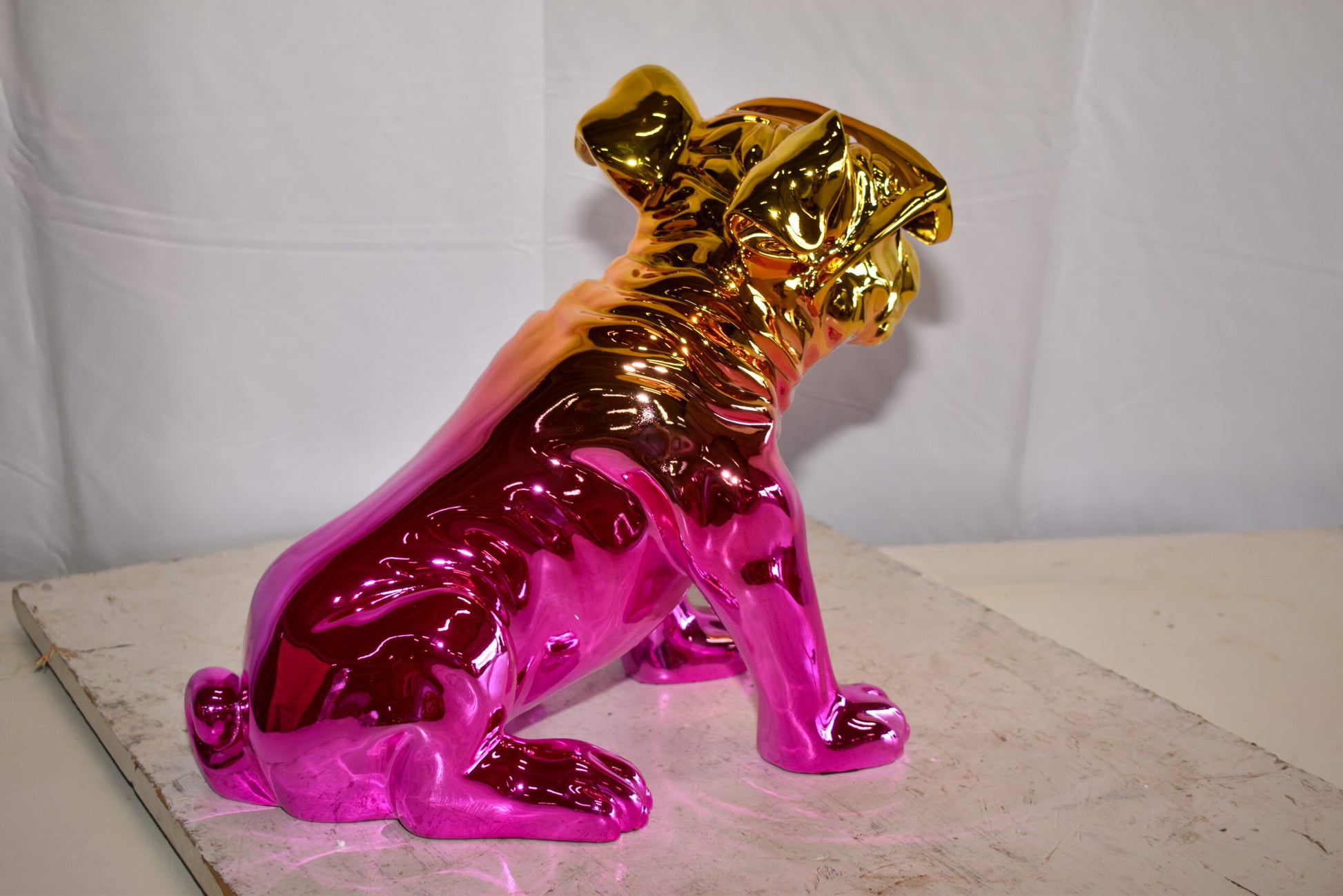 Ombre Pink Chrome Colored Bulldog Resin Statue 16" x 9" x 13"H