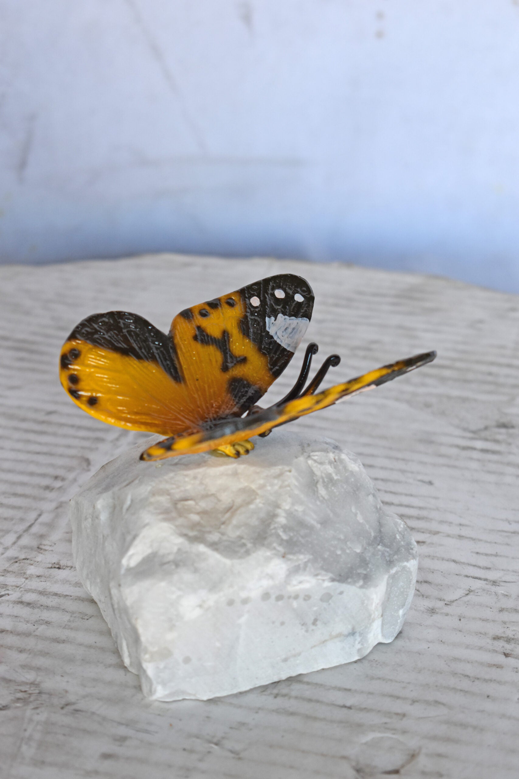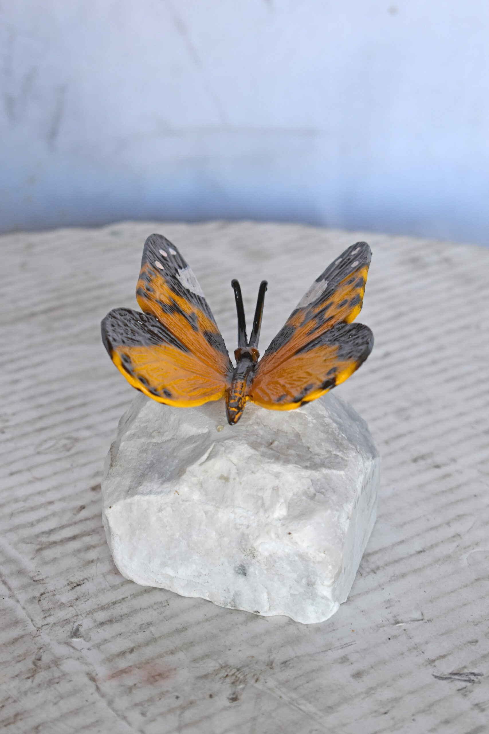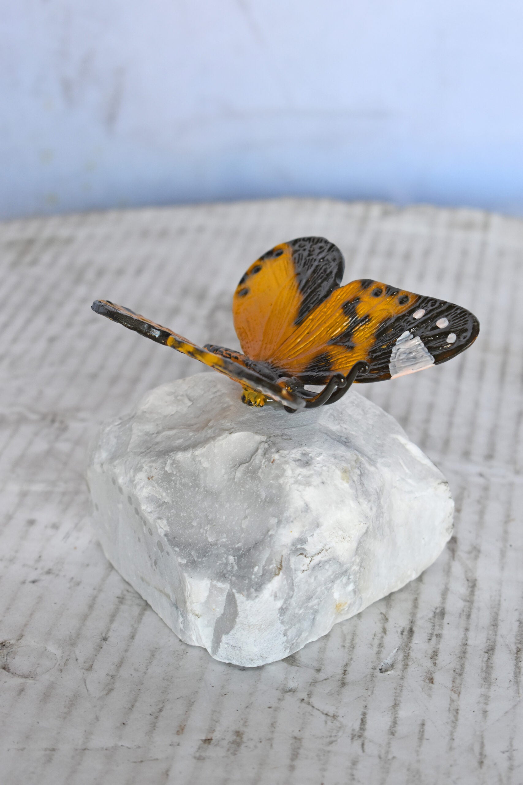 Orange Butterfly made of Bronze mounted on a rock - Size: 5"L x 5"W x 4"H.