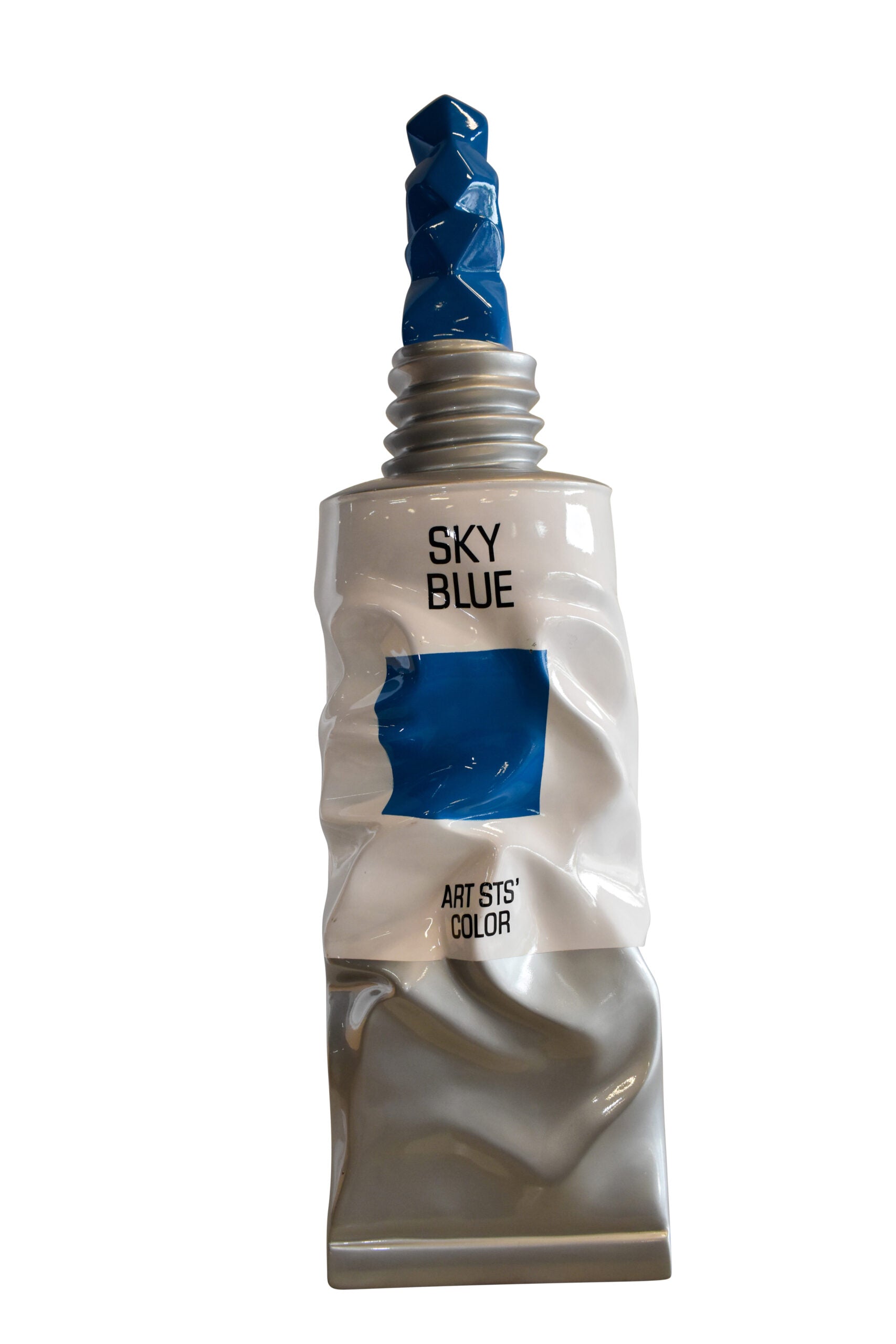 Oversized Wall Mounted Sky Blue Paint Tube Squezed Resin Statue 10" x 12" x 44"H