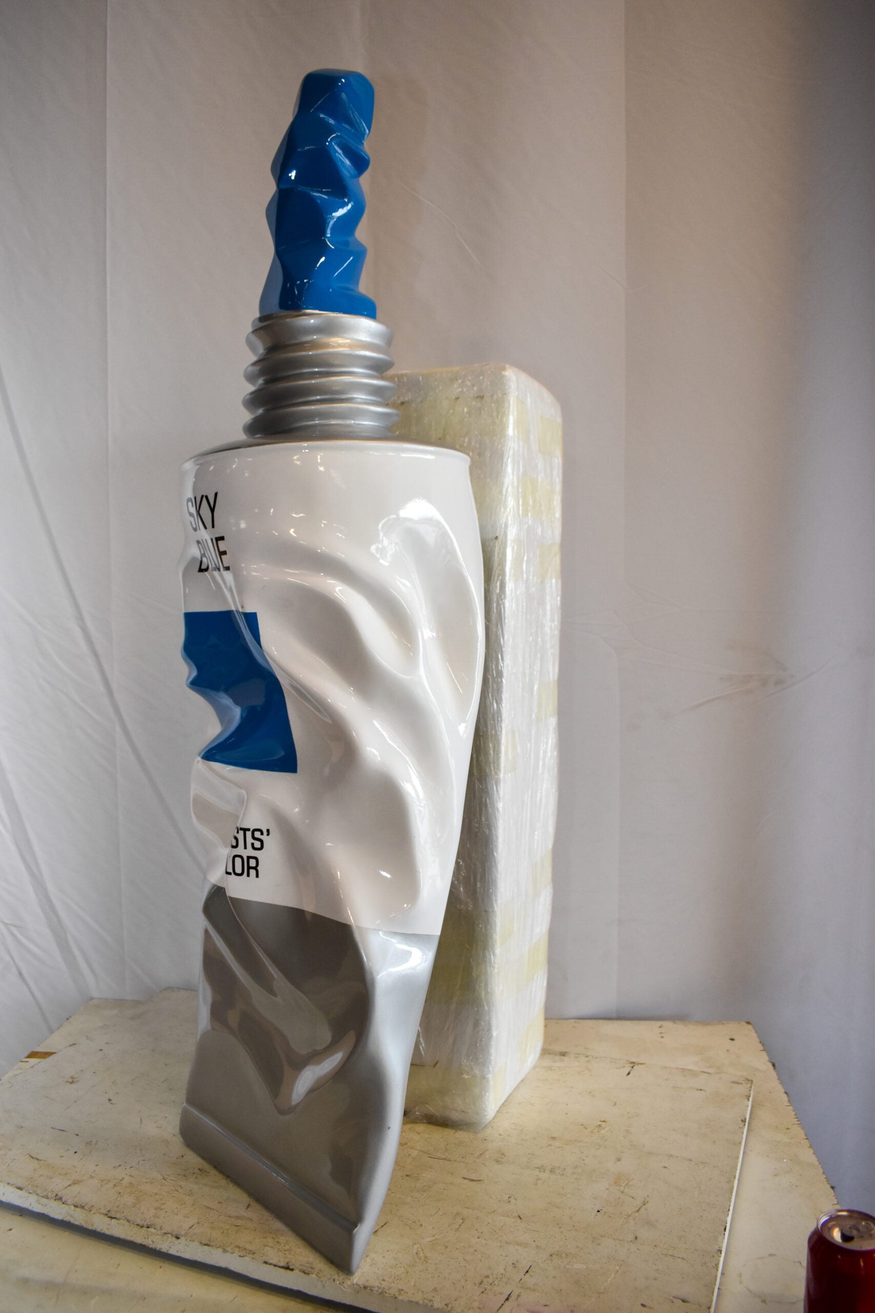 This customer favorite is modern, elegant, and unique in design. The oversized paint tube brings creativity and design to any modern room or space. The artist did a wonderful job of integrating realistic elements, such as the creases of the paint tube with color to bring a one of a kind piece. Size: 10"L x 12"W x 44"H. Weight is: 6Lb
