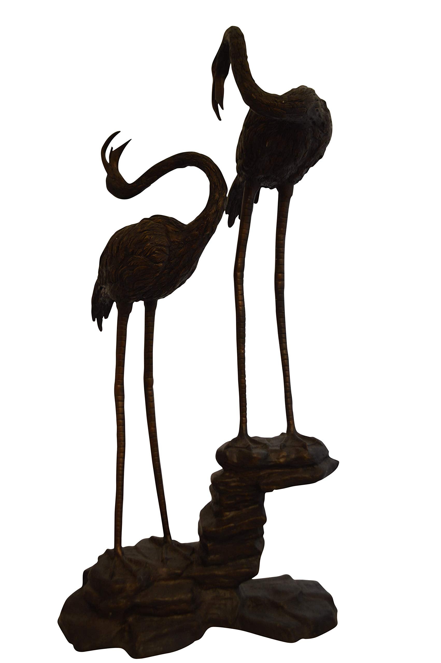A pair of flamingoes are the center of this delightful indoor/outdoor bronze fountain. The detailed Bronze casting used to construct this fountain enables you to enjoy the texture of the flamingo’s feathers. The statue is equipped with a hose that leads water out of the flamingo’s mouth, with the use of a fountain pump (pump is not included). The figures feature a bronze finish that has been crafted to create aged, weathered nuance. This sculpture would be a great addition to your patio, garden, lawn, or anywhere else. Size: 33"L x 22"W x 60"H. Weight is: 80Lb