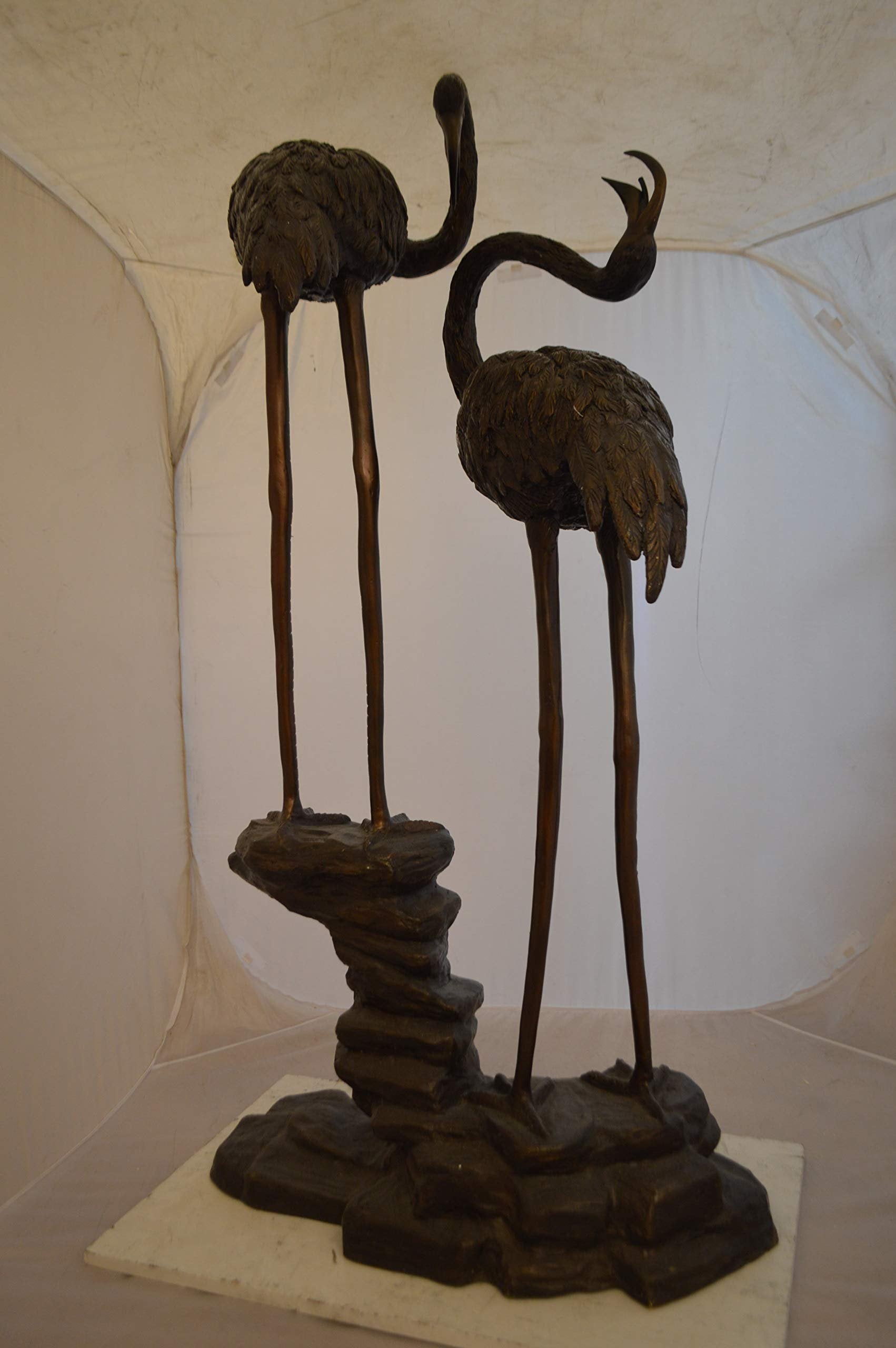 Pair of Flamingos Bronze Statue Fountain - Size: 33"L x 22"W x 60"H.