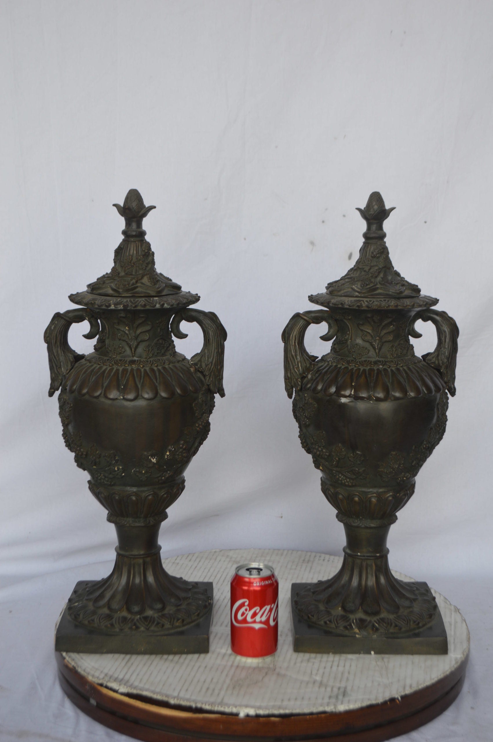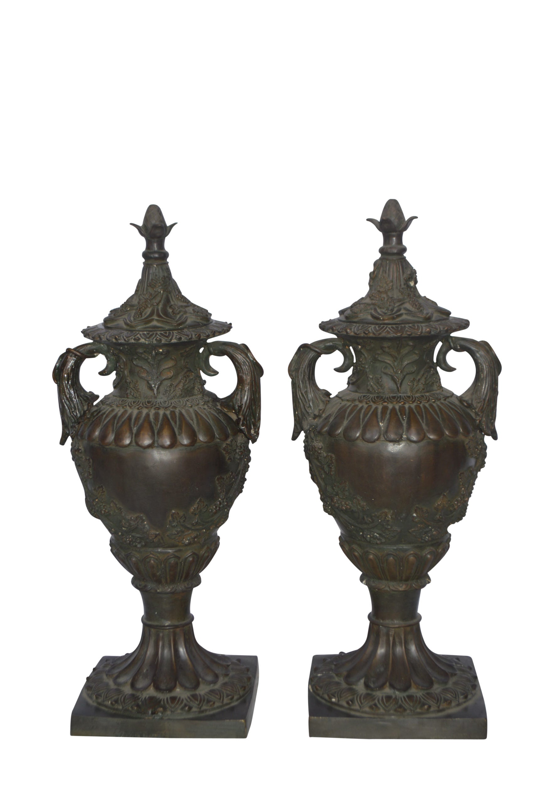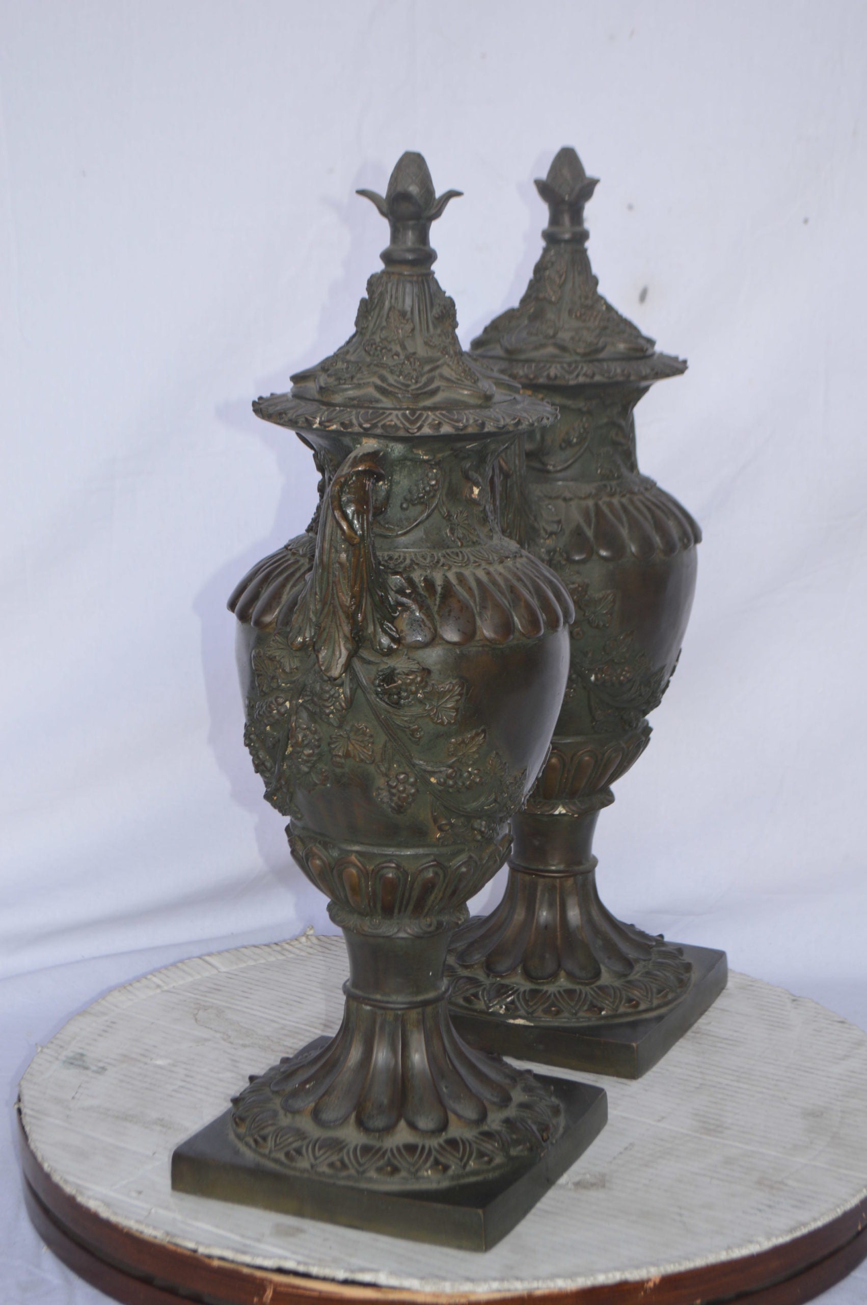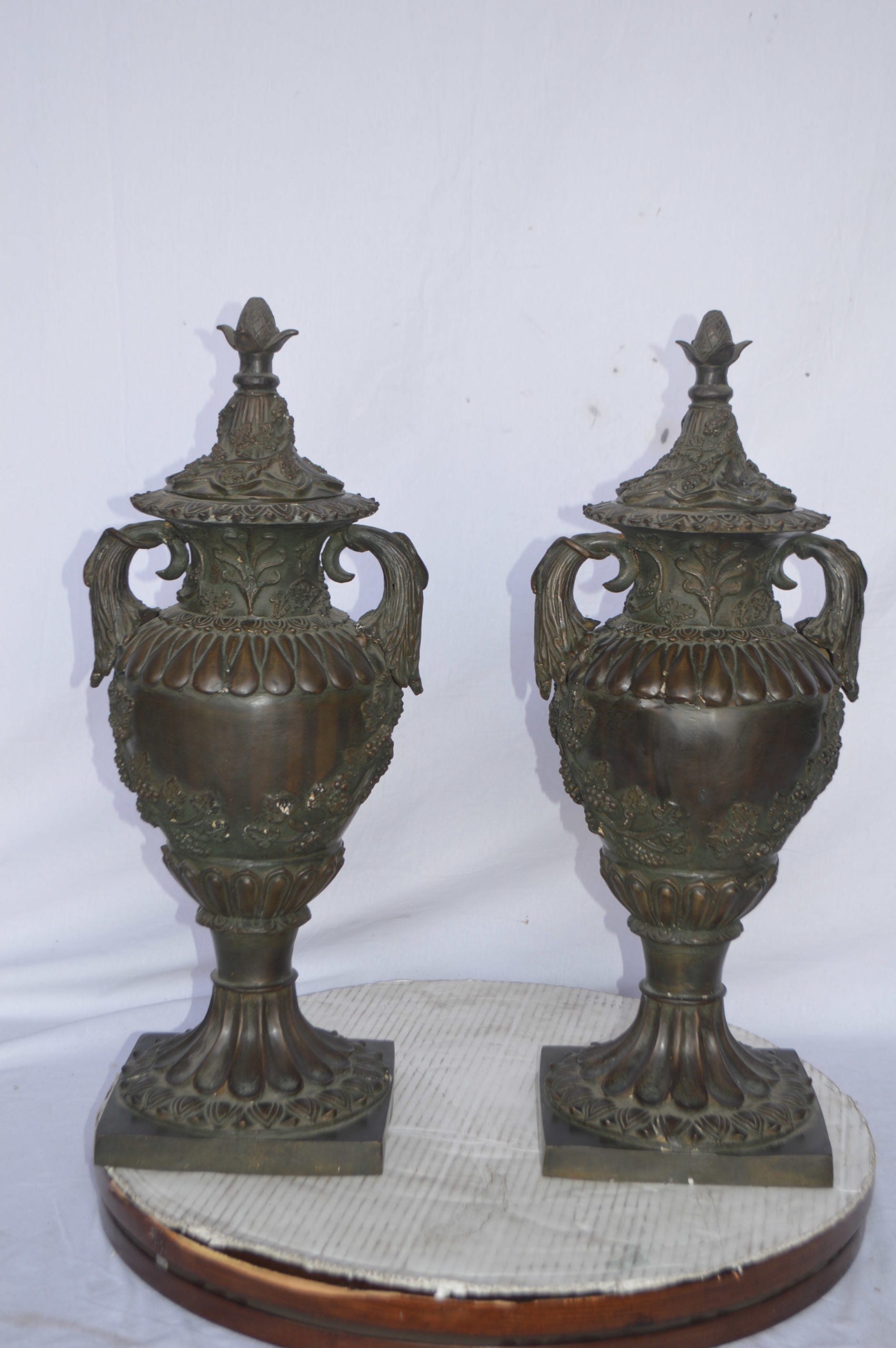 Pair of Urns bronze statue - Size: 10"L x 9"W x 25"H.